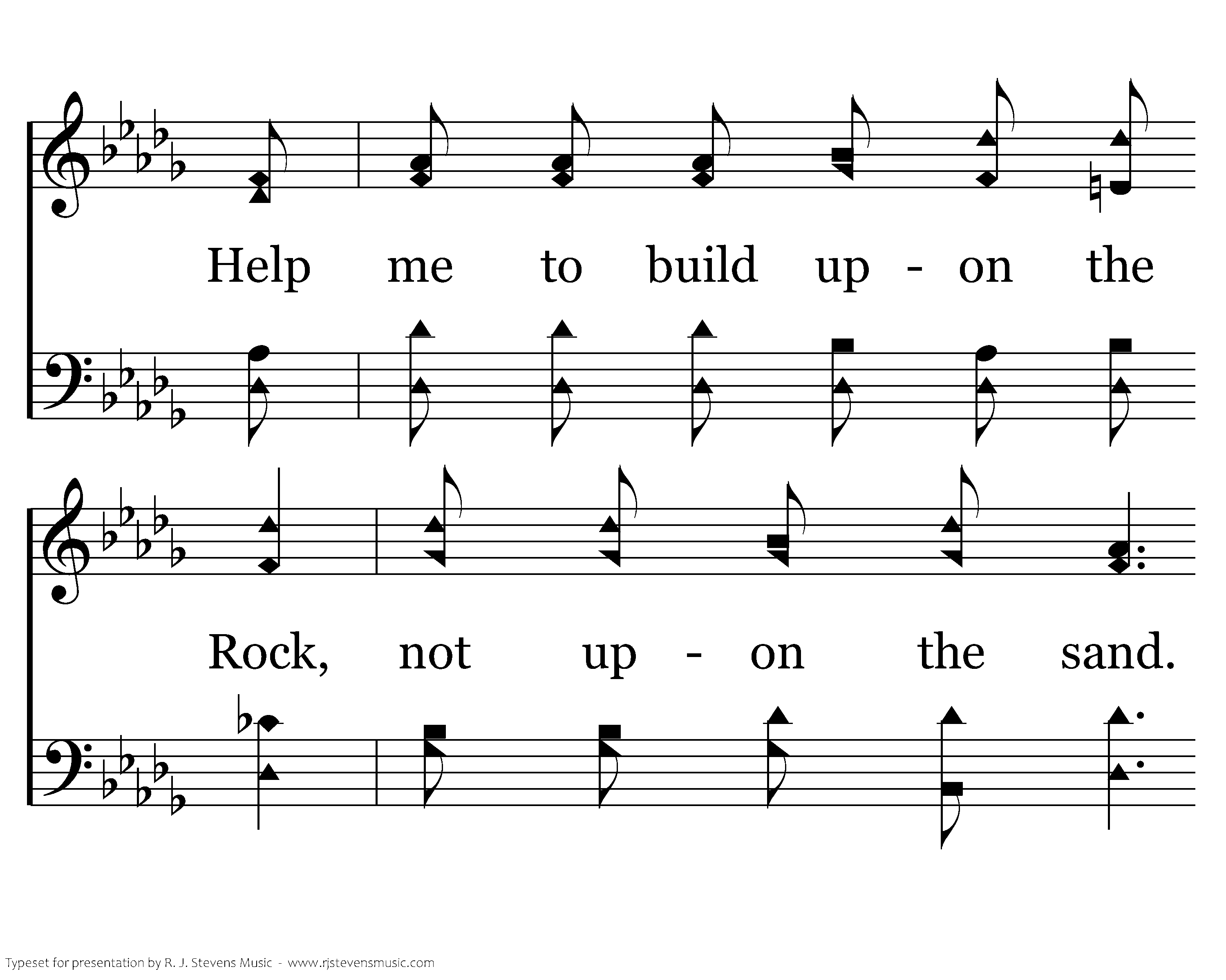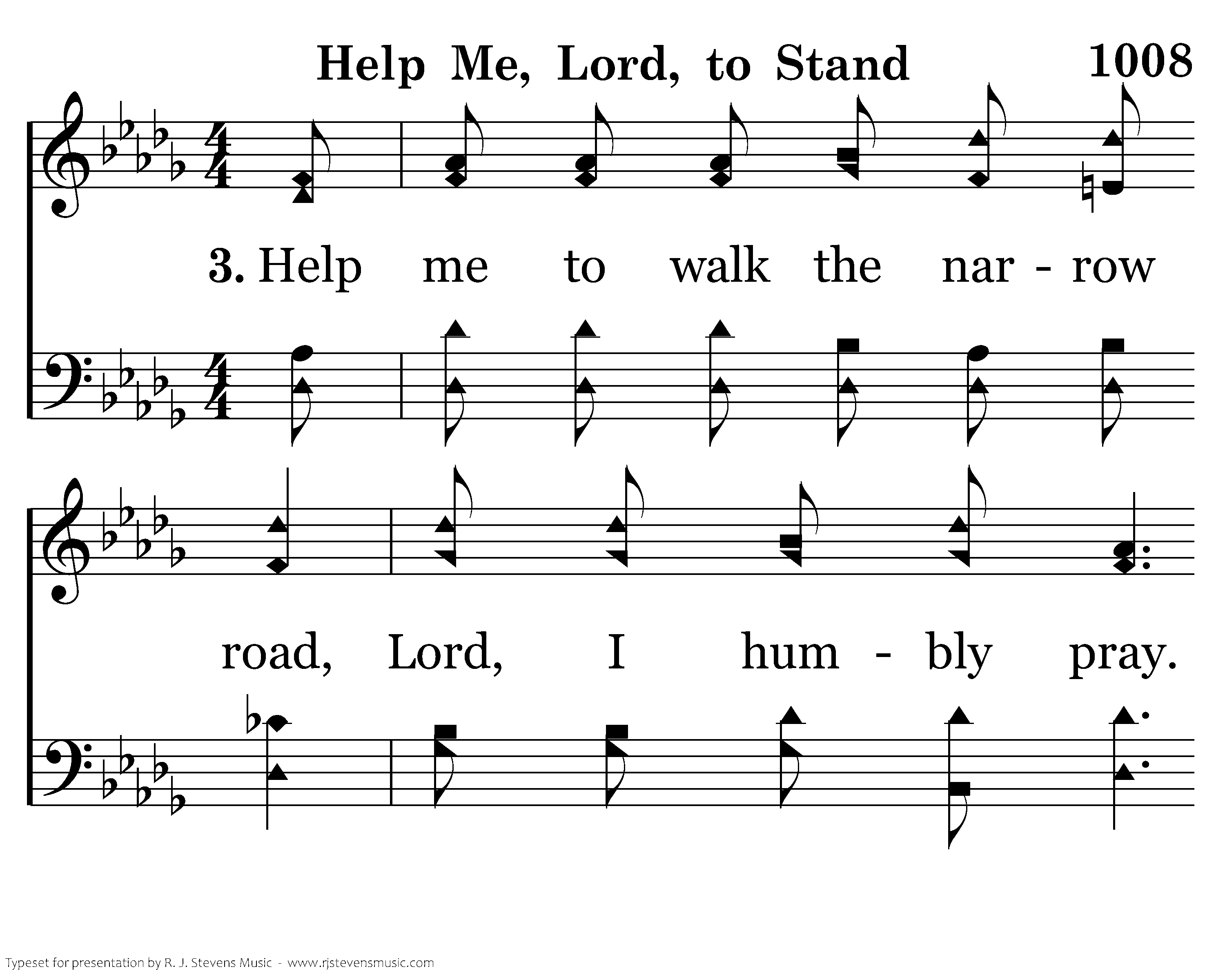 Help me to walk the narrow road, Lord, I humbly pray. Help me to bear some others' load struggling in the way; Help me to build upon the Rock, not upon the sand. And when shall come the tempest shock, Help me, Lord to stand.