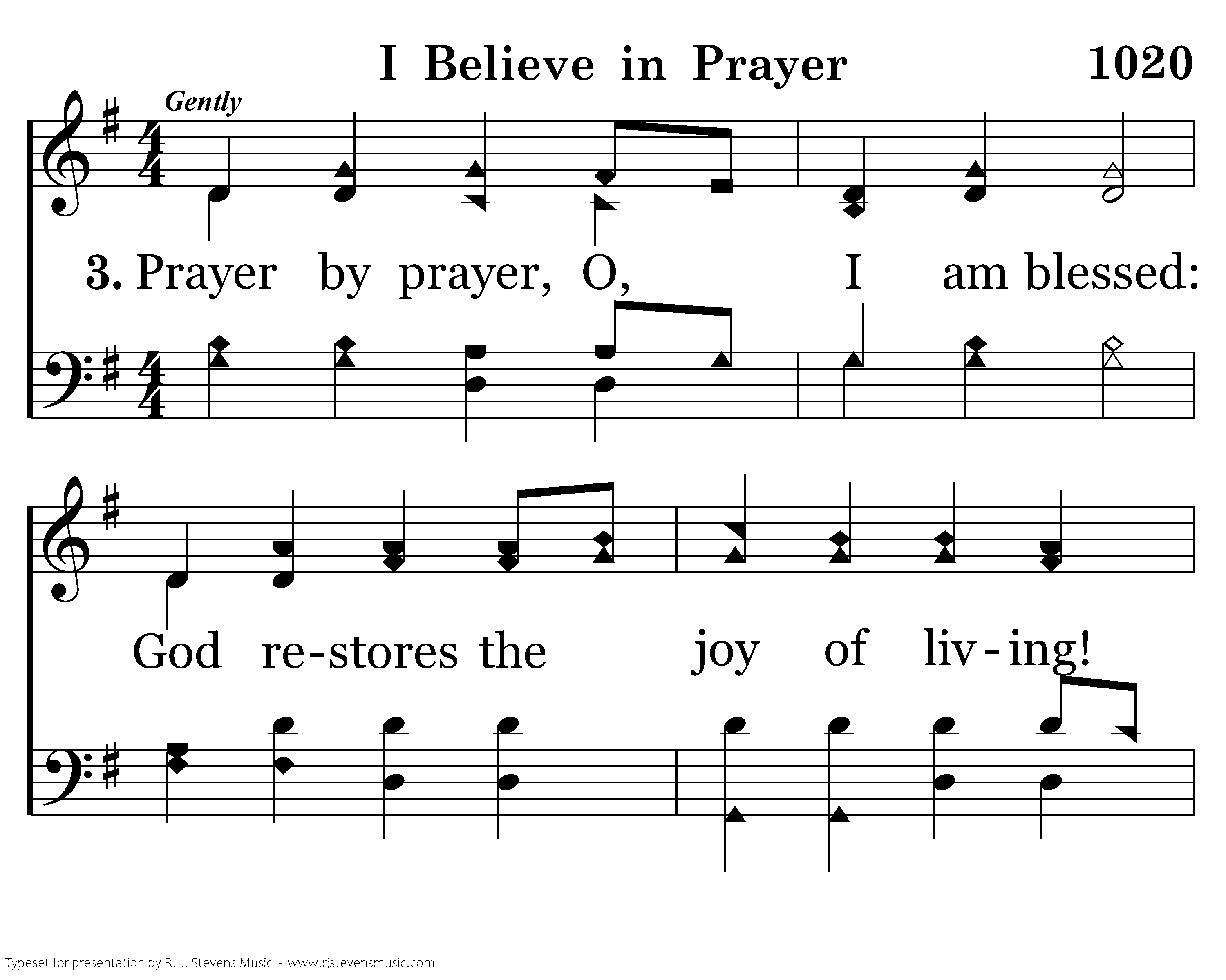 Prayer by prayer, O, I am blessed: God restores the joy of living! Each petition, each request Brings a new thanksgiving.