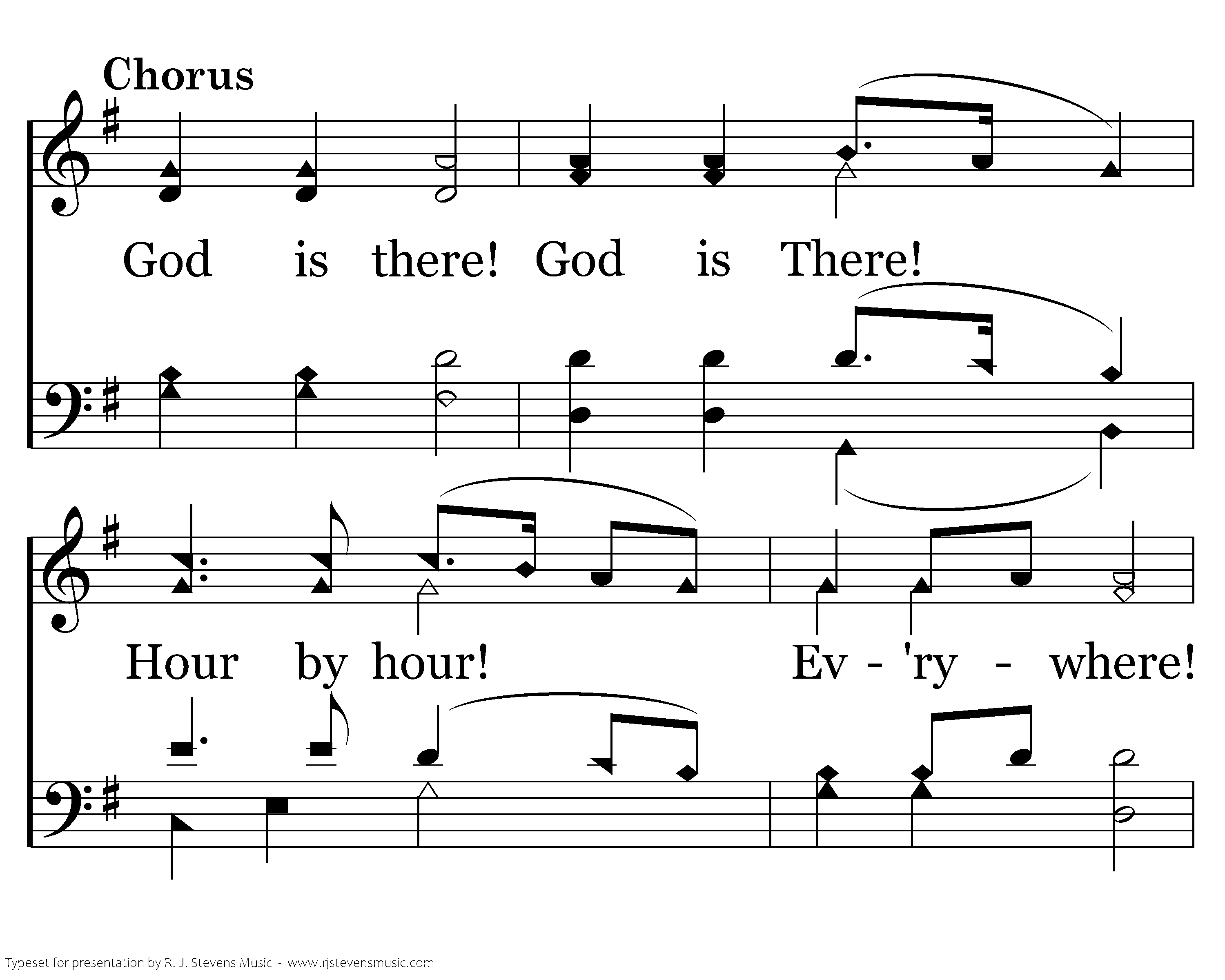 God is there! God is There! Hour by hour! Ev'rywhere! I believe! O, I believe! I believe in prayer.