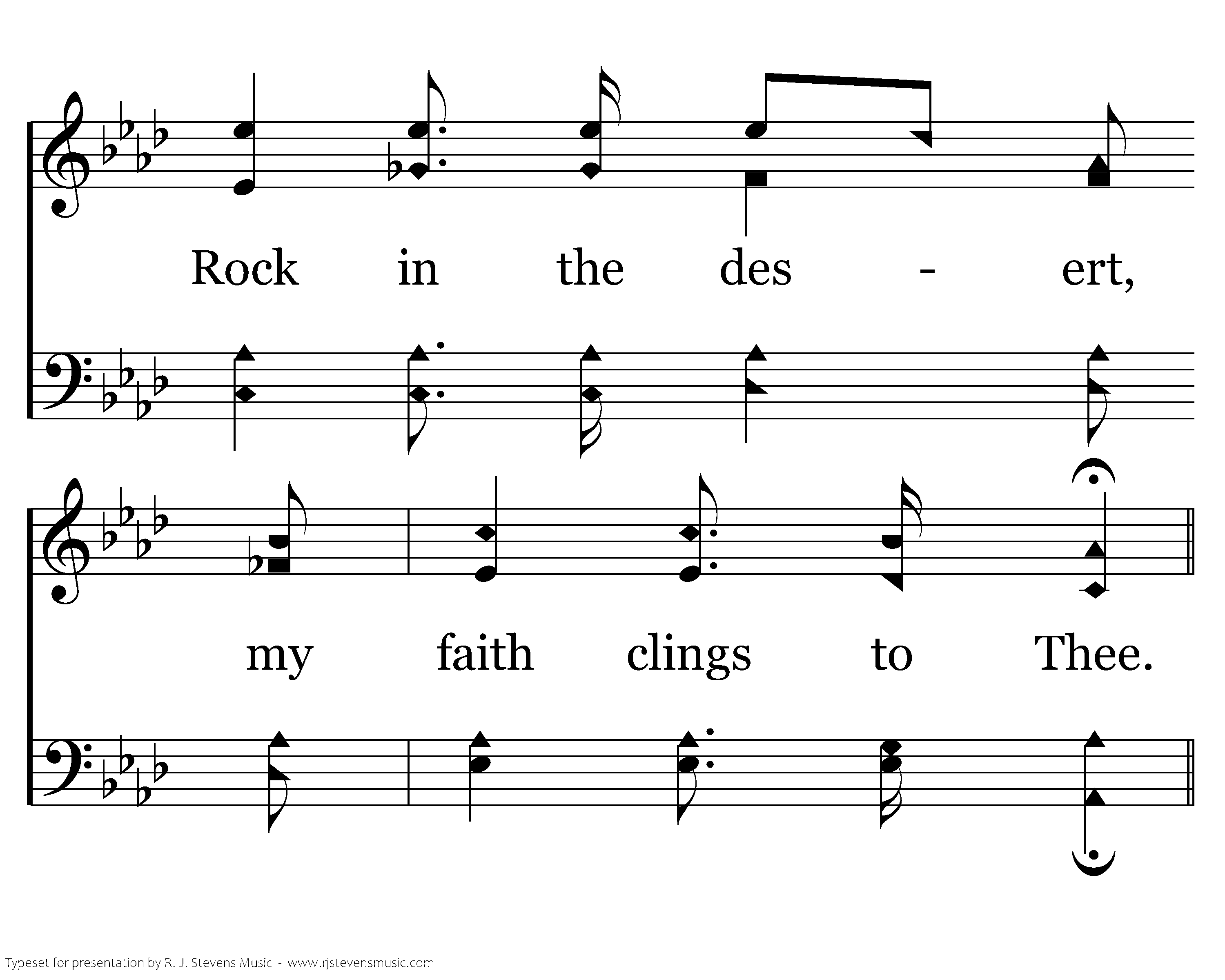 Rock in the desert, how lovely the star, Guiding my footsteps from wand'ring afar; Now I am happy, Thy shelter I see; Rock in the desert, my faith clings to Thee.