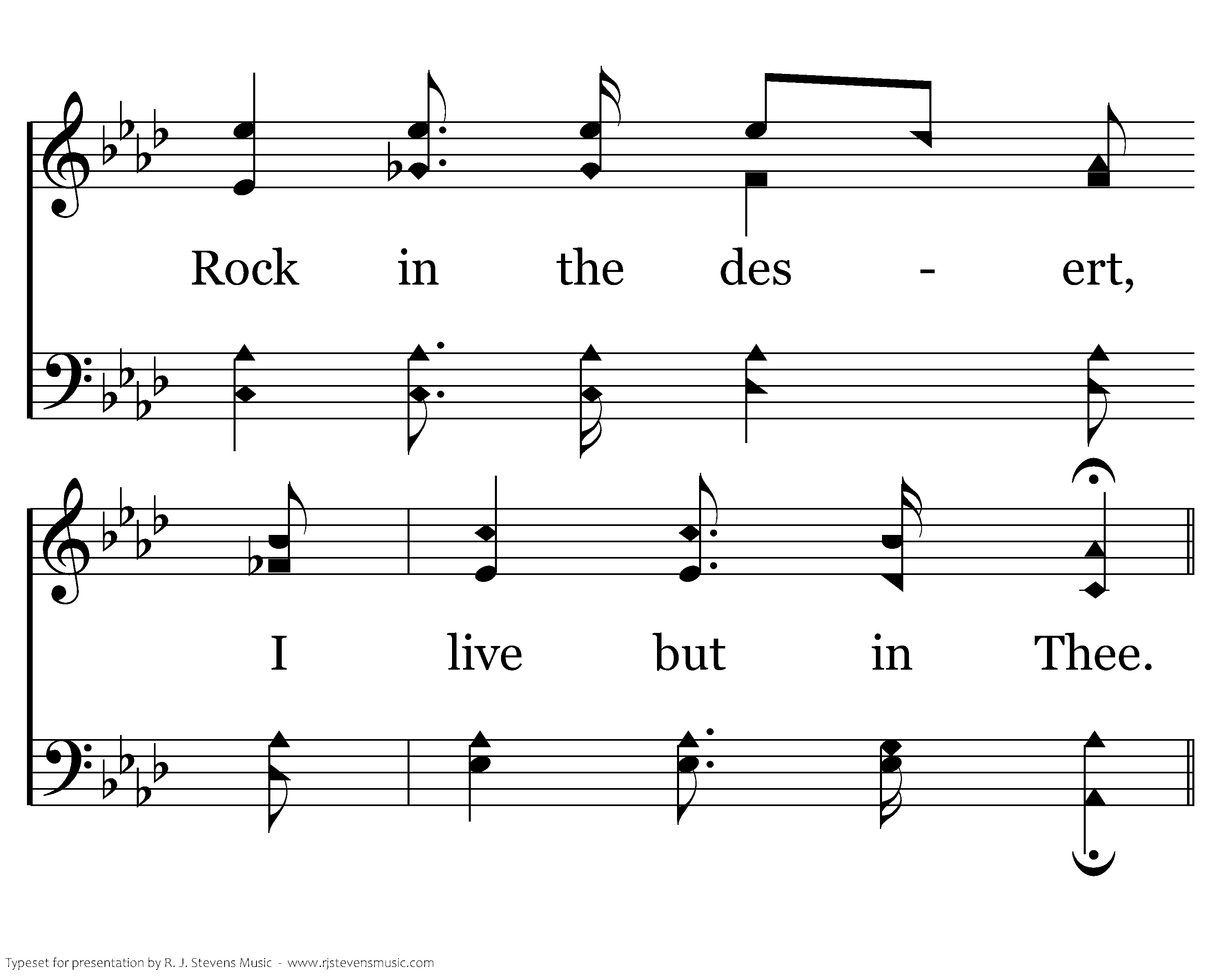 Rock in the desert, O Savior divine, Thou art my refuge, no love is like Thine; Thou my Redeemer art gracious to me; Rock in the desert, I live but in Thee.