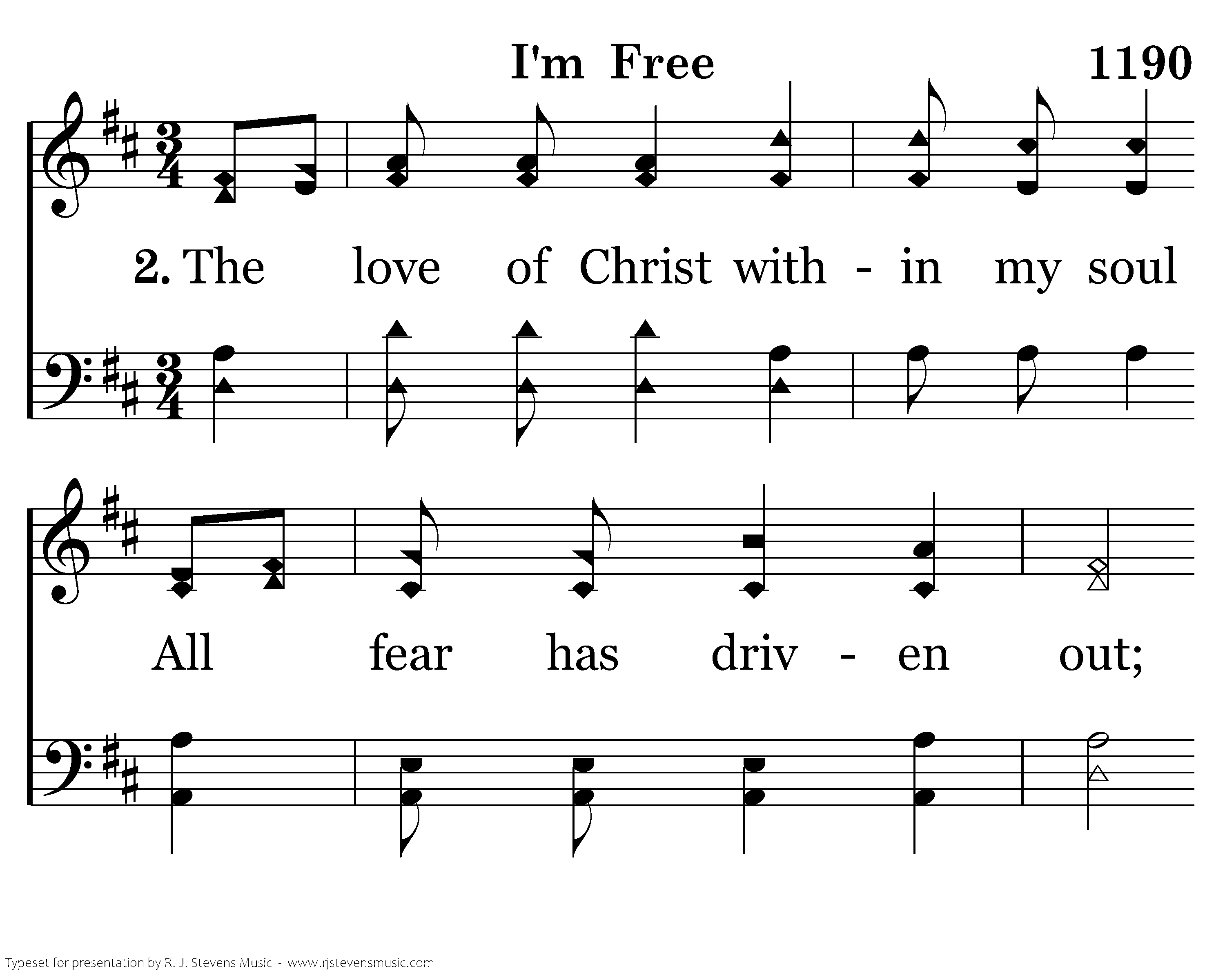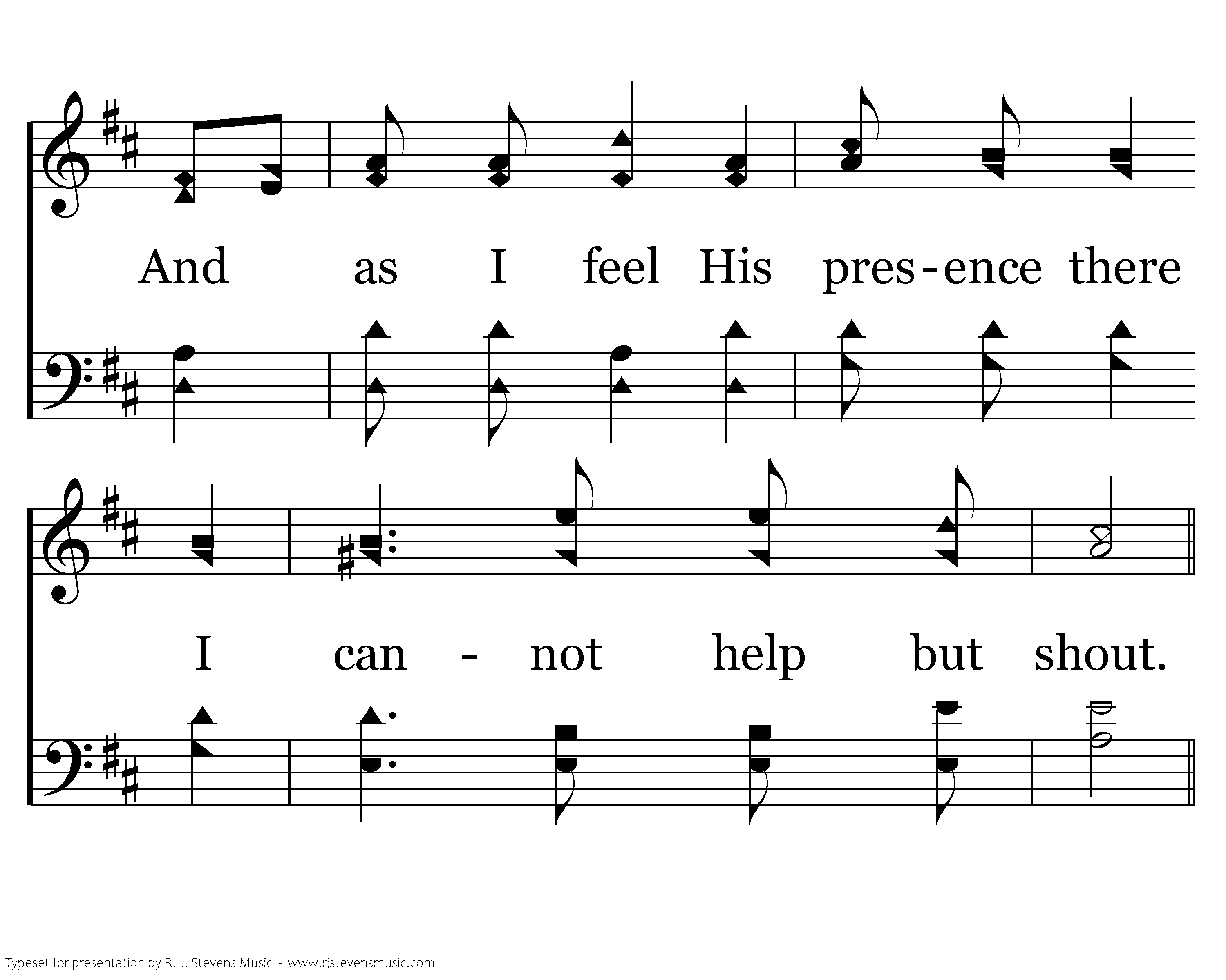 The love of Christ within my soul All fear has driven out; And as I feel His presence there I cannot help but shout.