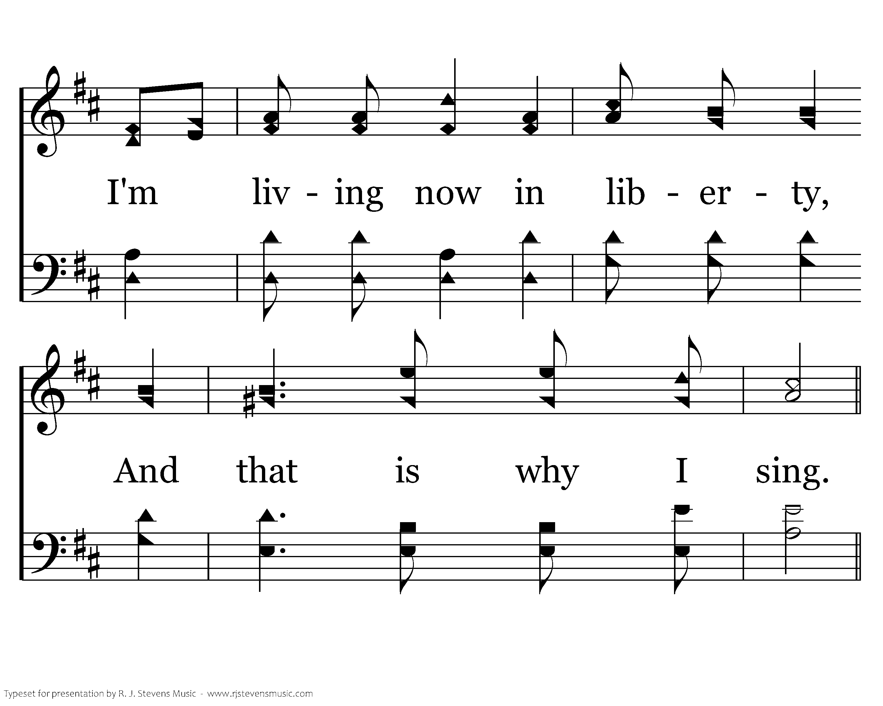 My soul today is mounting up, Like birds upon the wing; I'm living now in liberty, And that is why I sing.