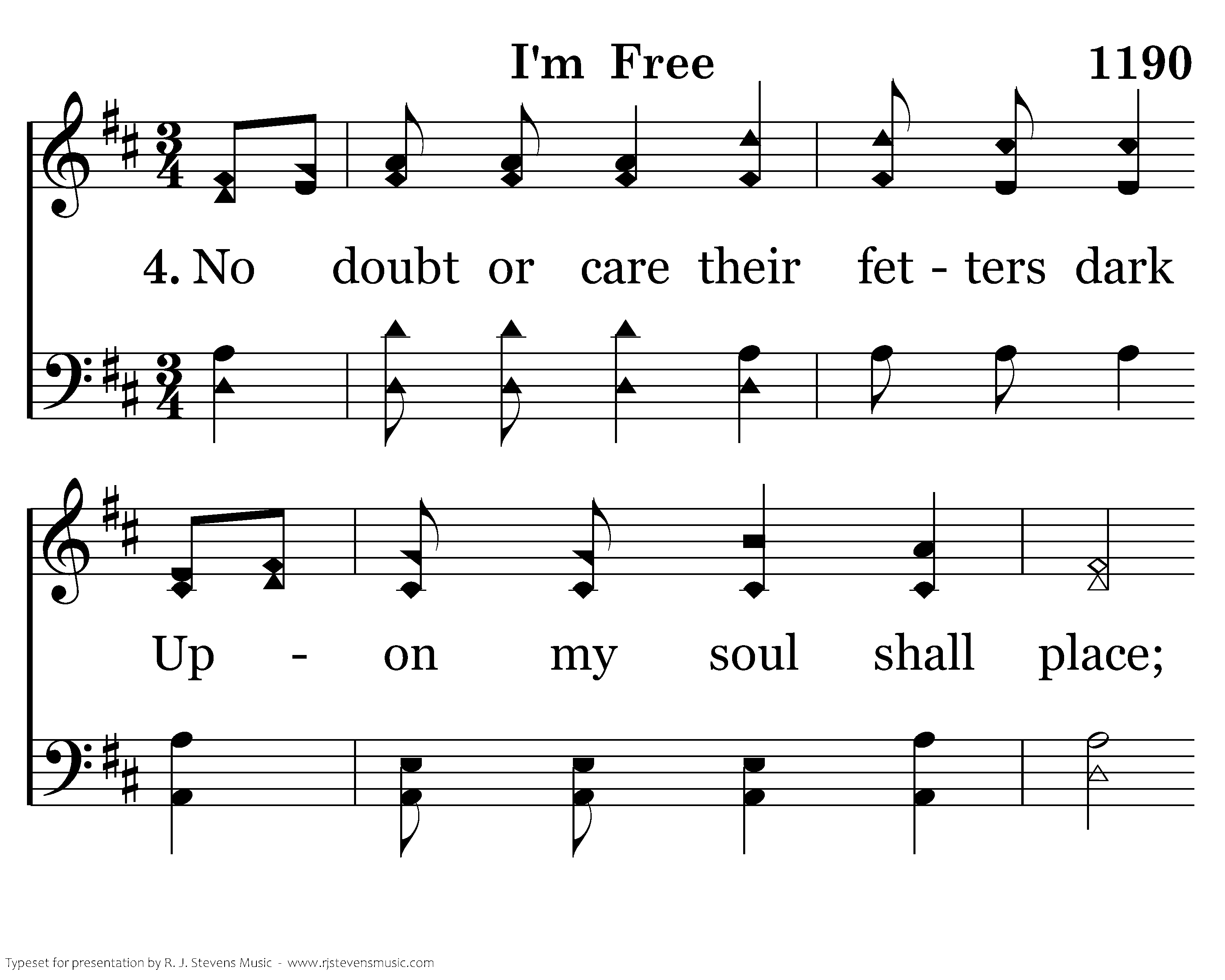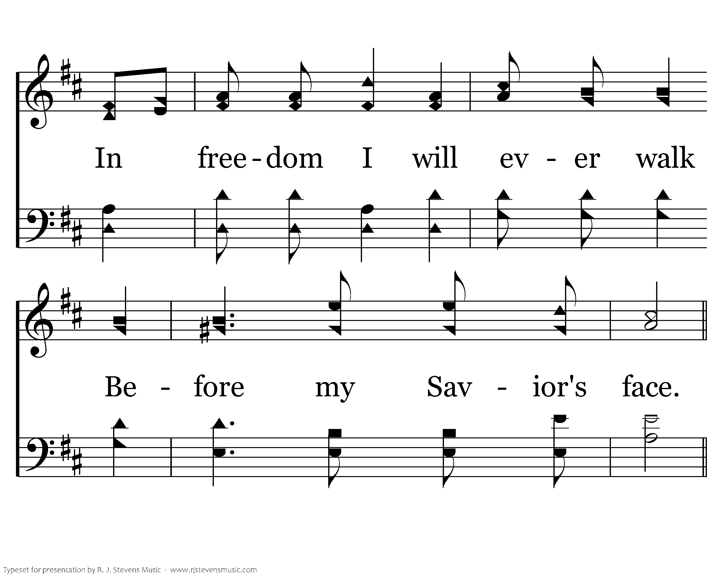 No doubt or care their fetters dark Upon my soul shall place; In freedom I will ever walk Before my Savior's face.