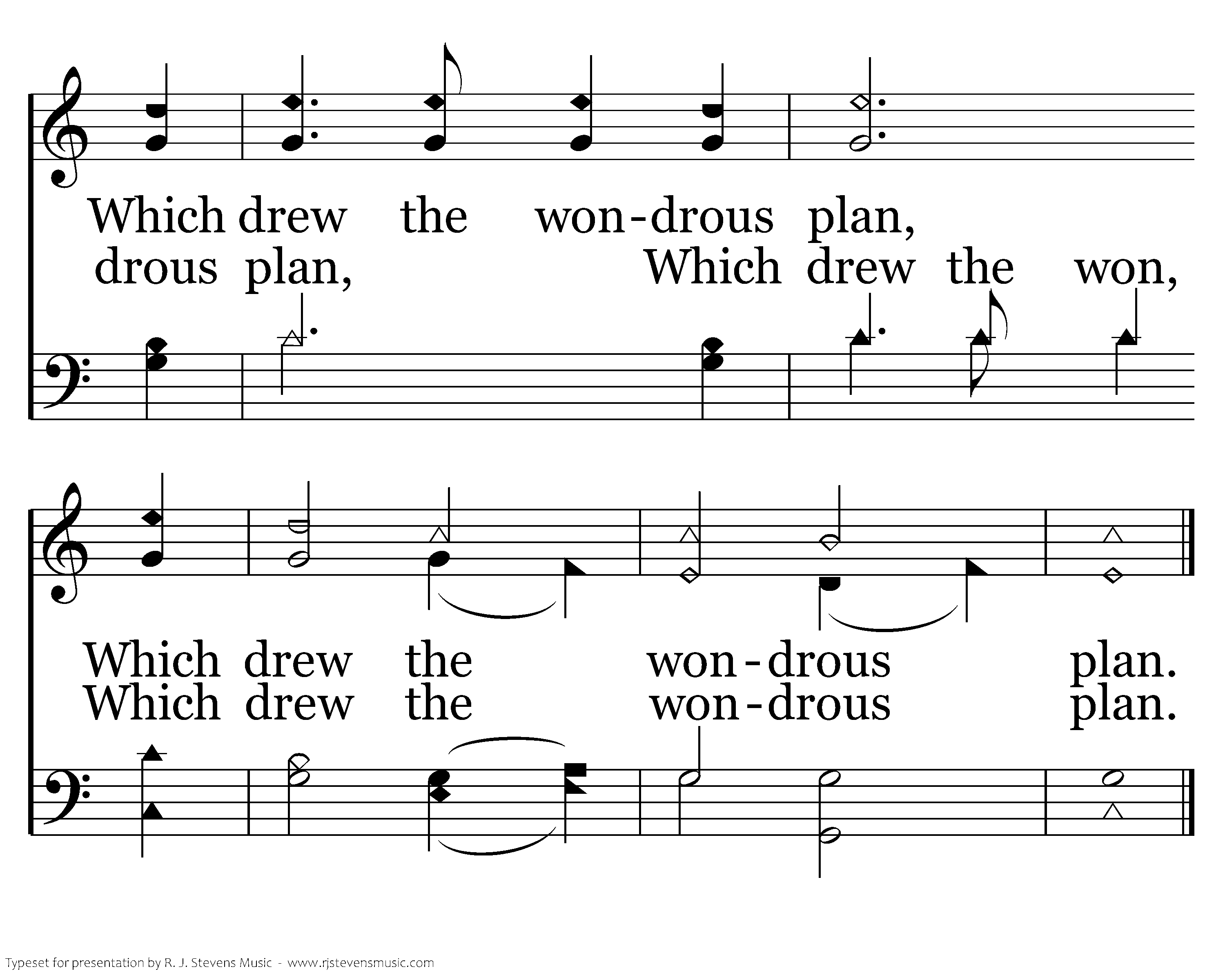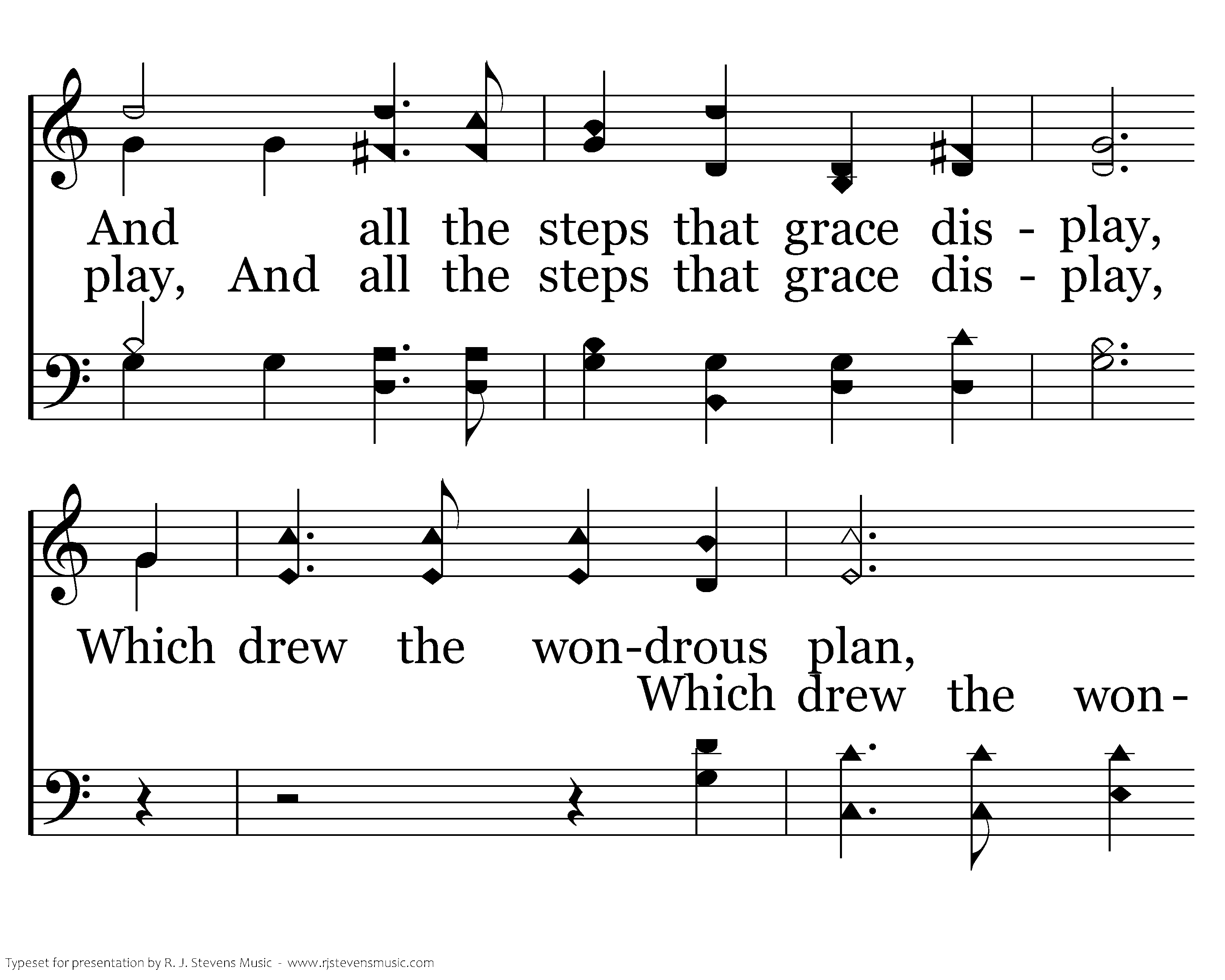 Grace first contrived a way To save rebellious man; And all the steps that grace display, And all the steps that grace display, Which drew the wondrous plan, Which drew the wondrous plan, Which drew the wondrous plan.