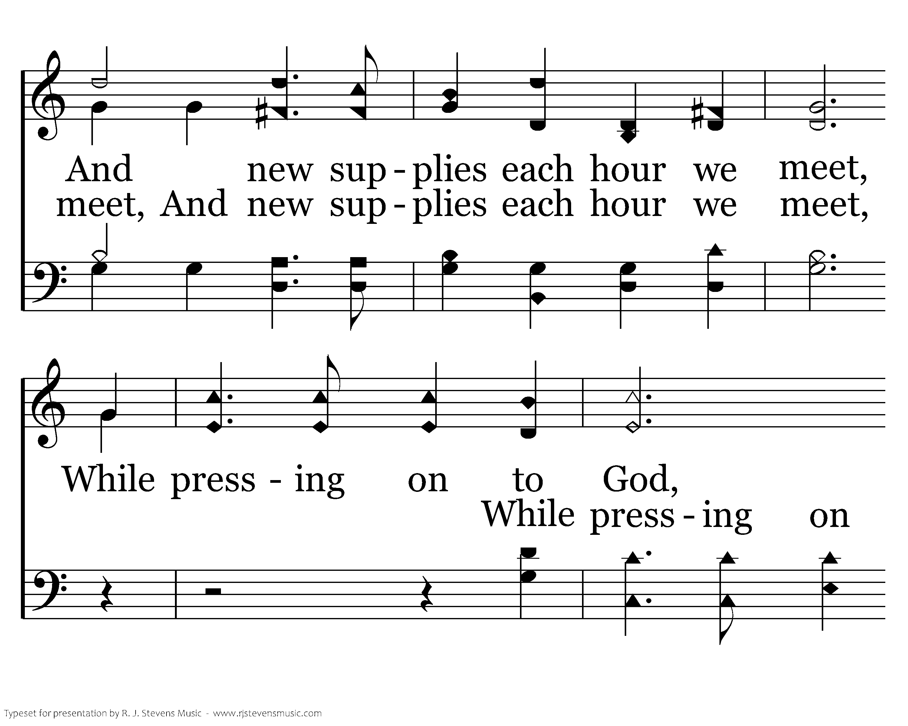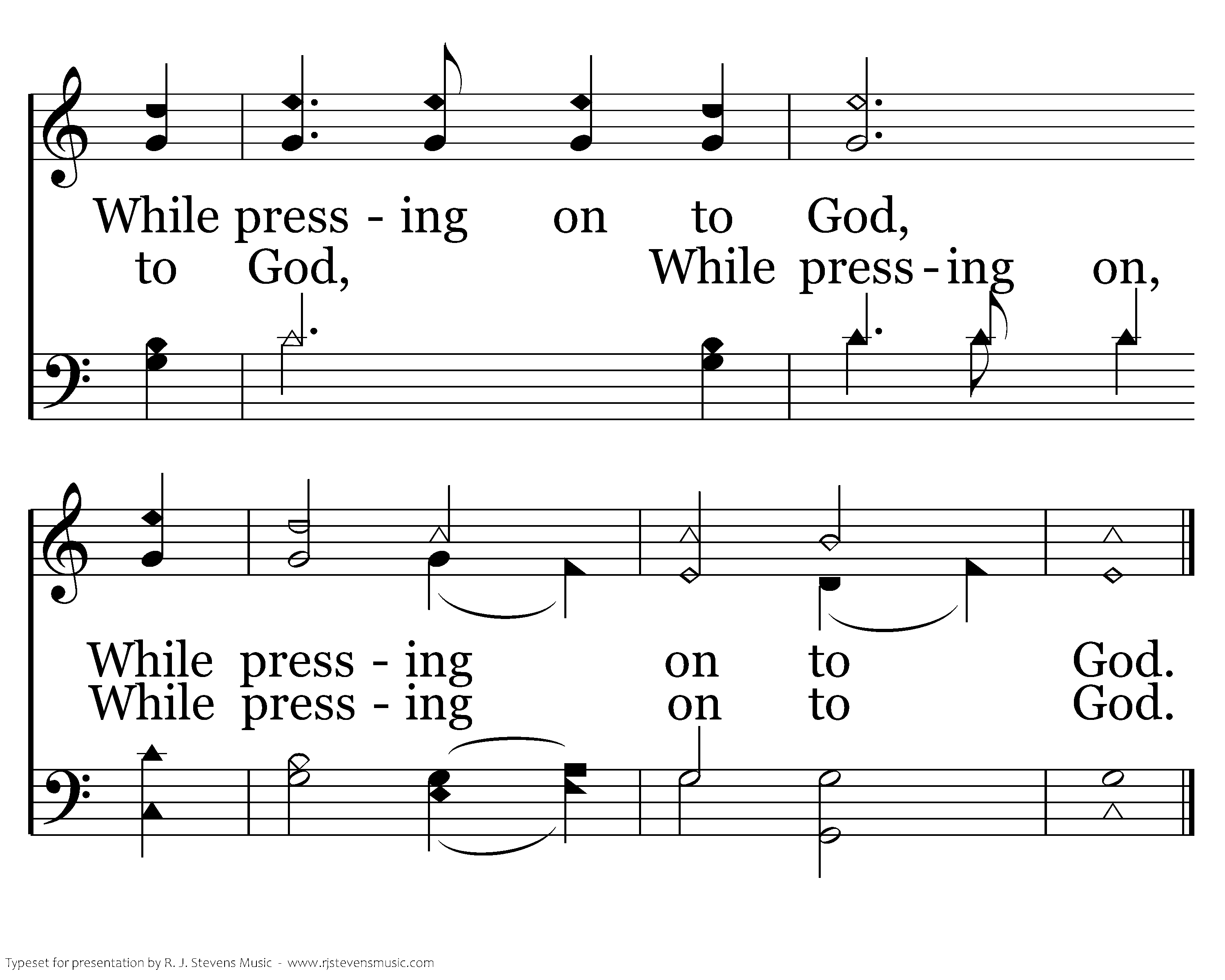 Grace led our wand'ring feet To tread the heav'nly road; And new supplies each hour we meet, And new supplies each hour we meet, While pressing on to God, While pressing on to God, While pressing on to God.