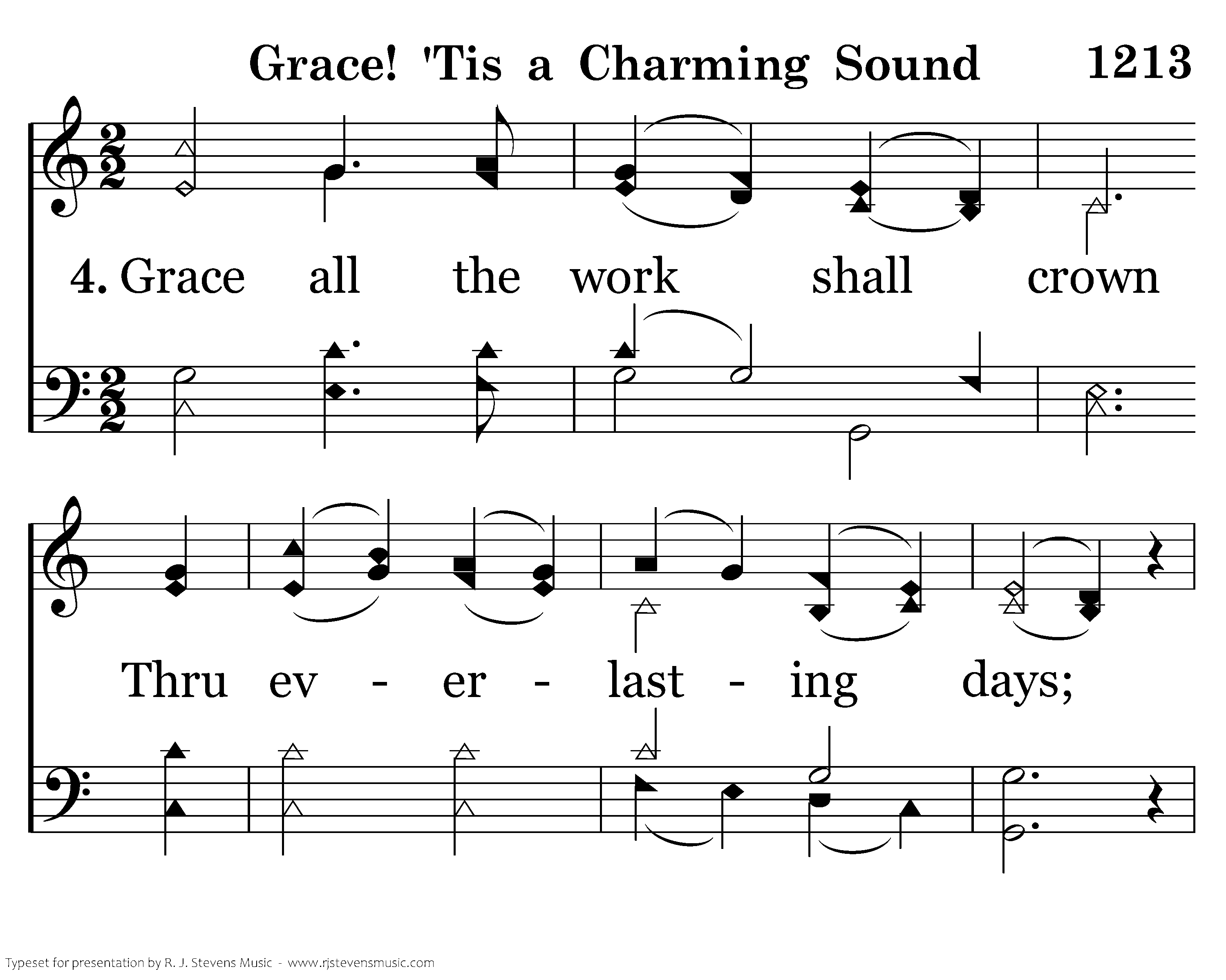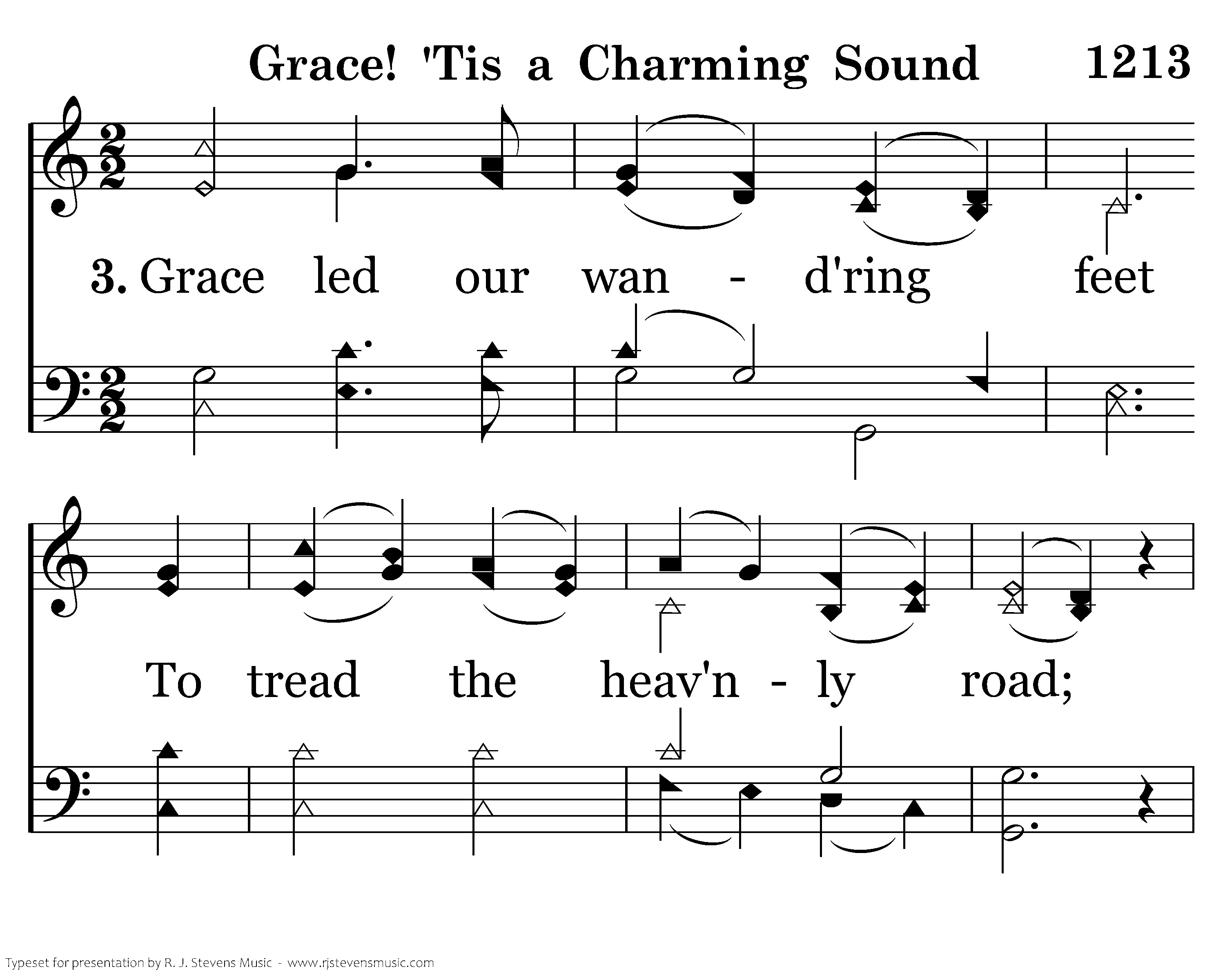 Grace! 'Tis a charming sound, Harmonious to the ear; Heav'n with the echo shall resound, Heav'n with the echo shall resound, And all the earth shall hear, And all the earth shall hear, And all the earth shall hear.