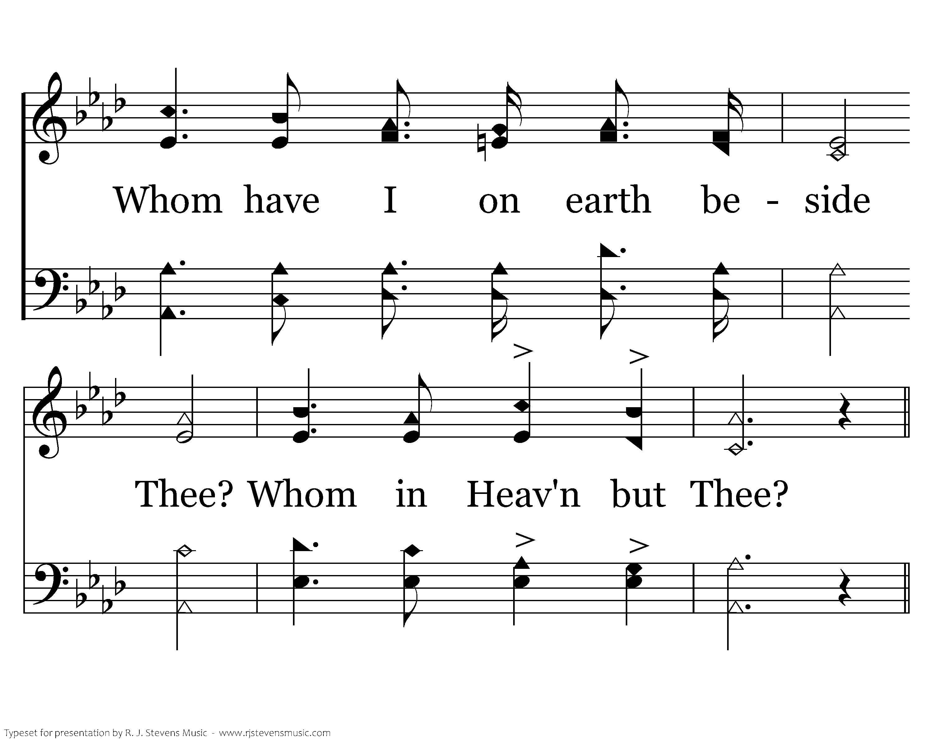 Thou, the Spring of all my comfort, More than life to me, Whom have I on earth beside Thee? Whom in Heav'n but Thee?