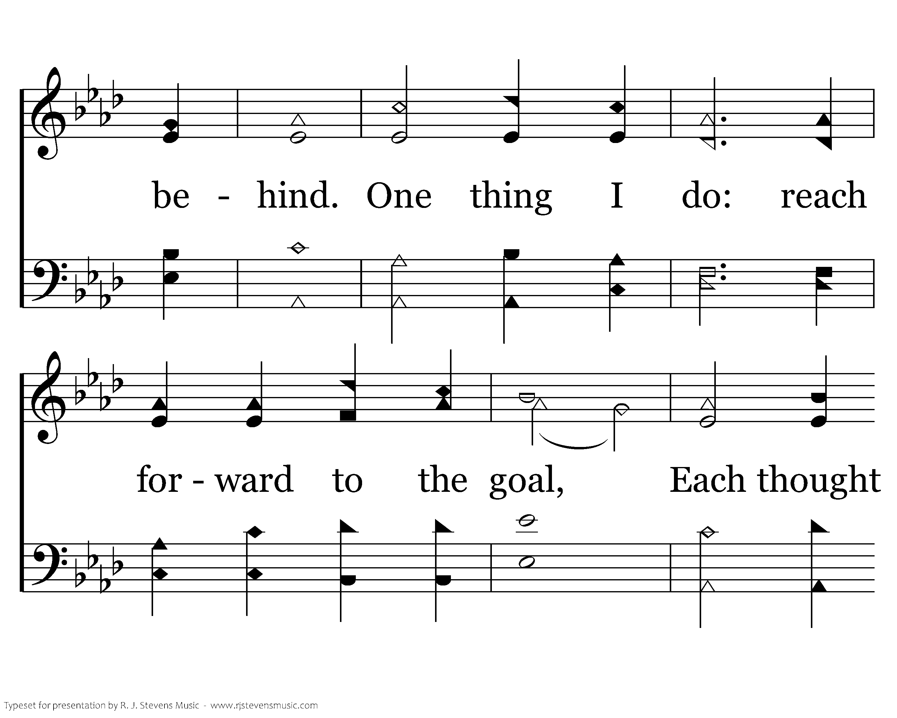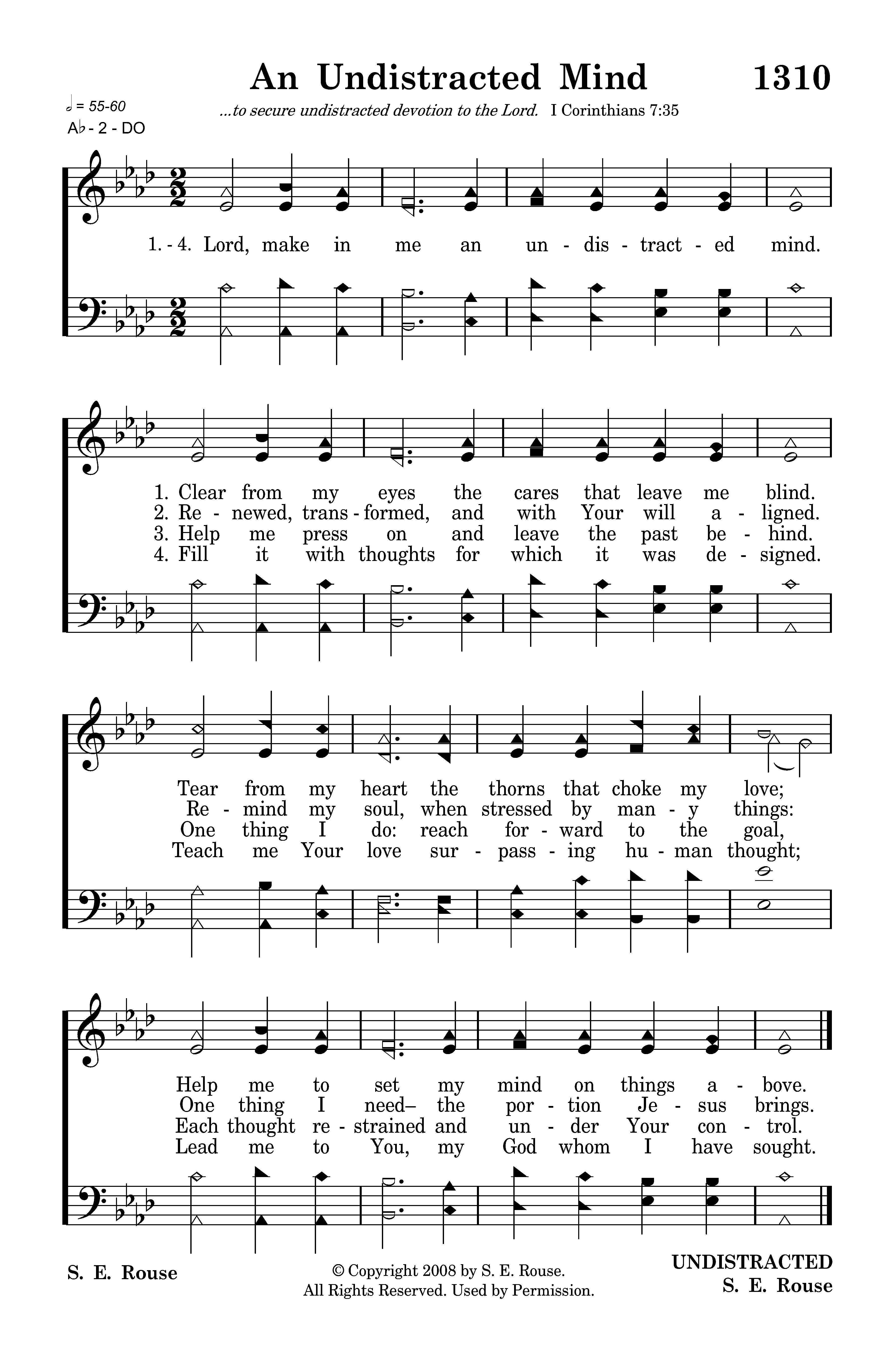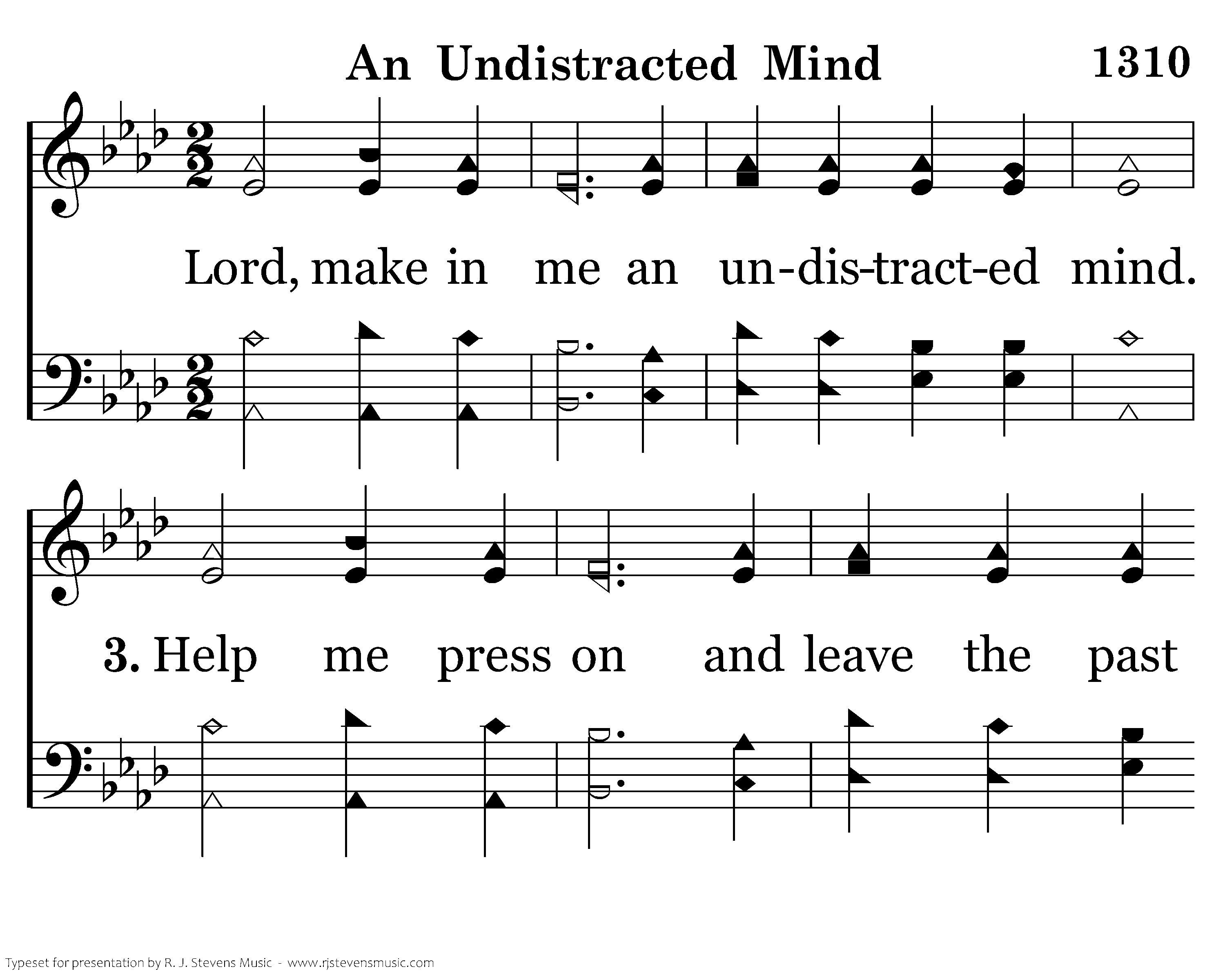 Lord, make in me an undistracted mind. Help me press on and leave the past behind. One thing I do: reach forward to the goal, Each thought restrained and under Your control.