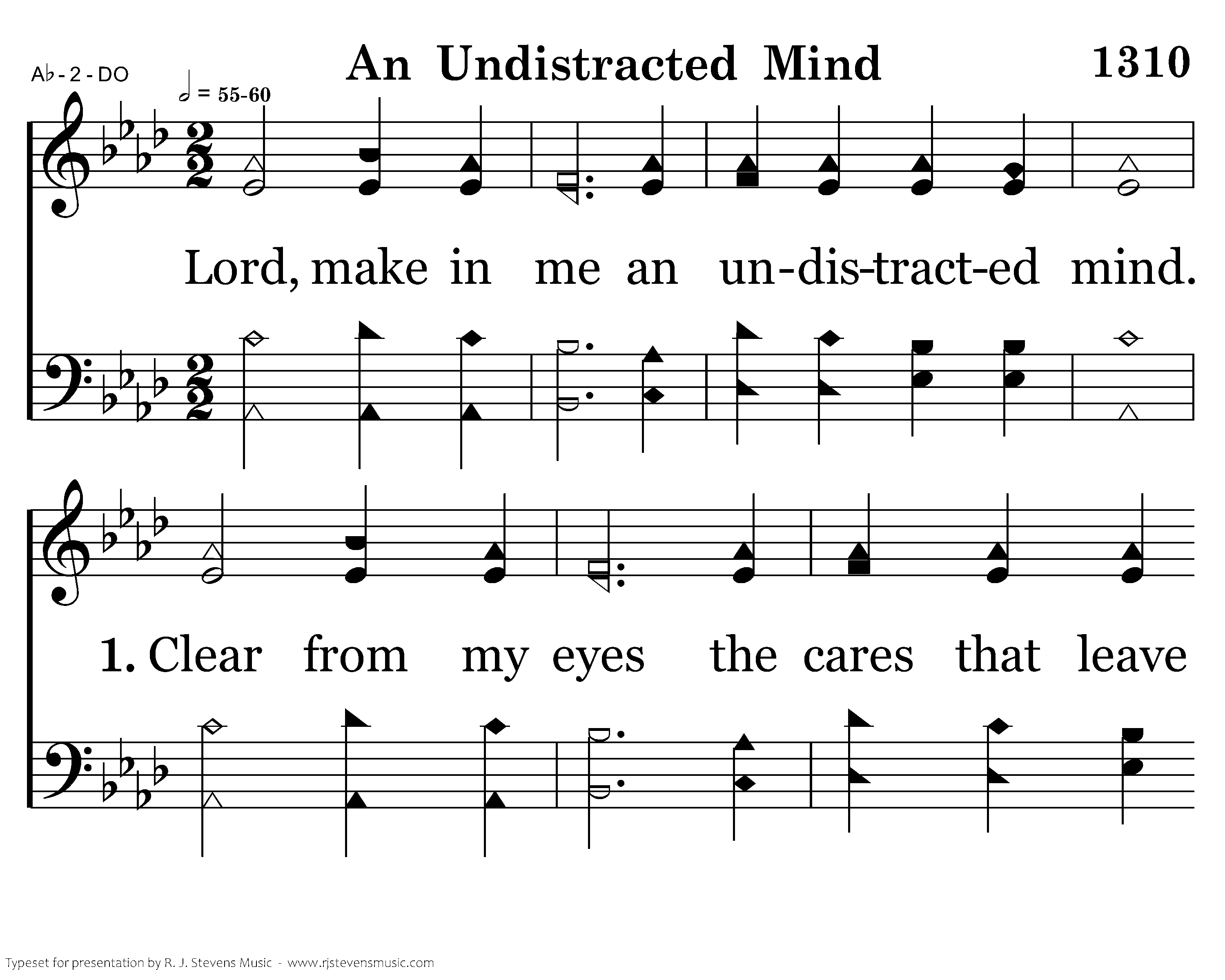 Lord, make in me an undistracted mind. Clear from my eyes the cares that leave me blind. Tear from my heart the thorns that choke my love; Help me to set my mind on things above.