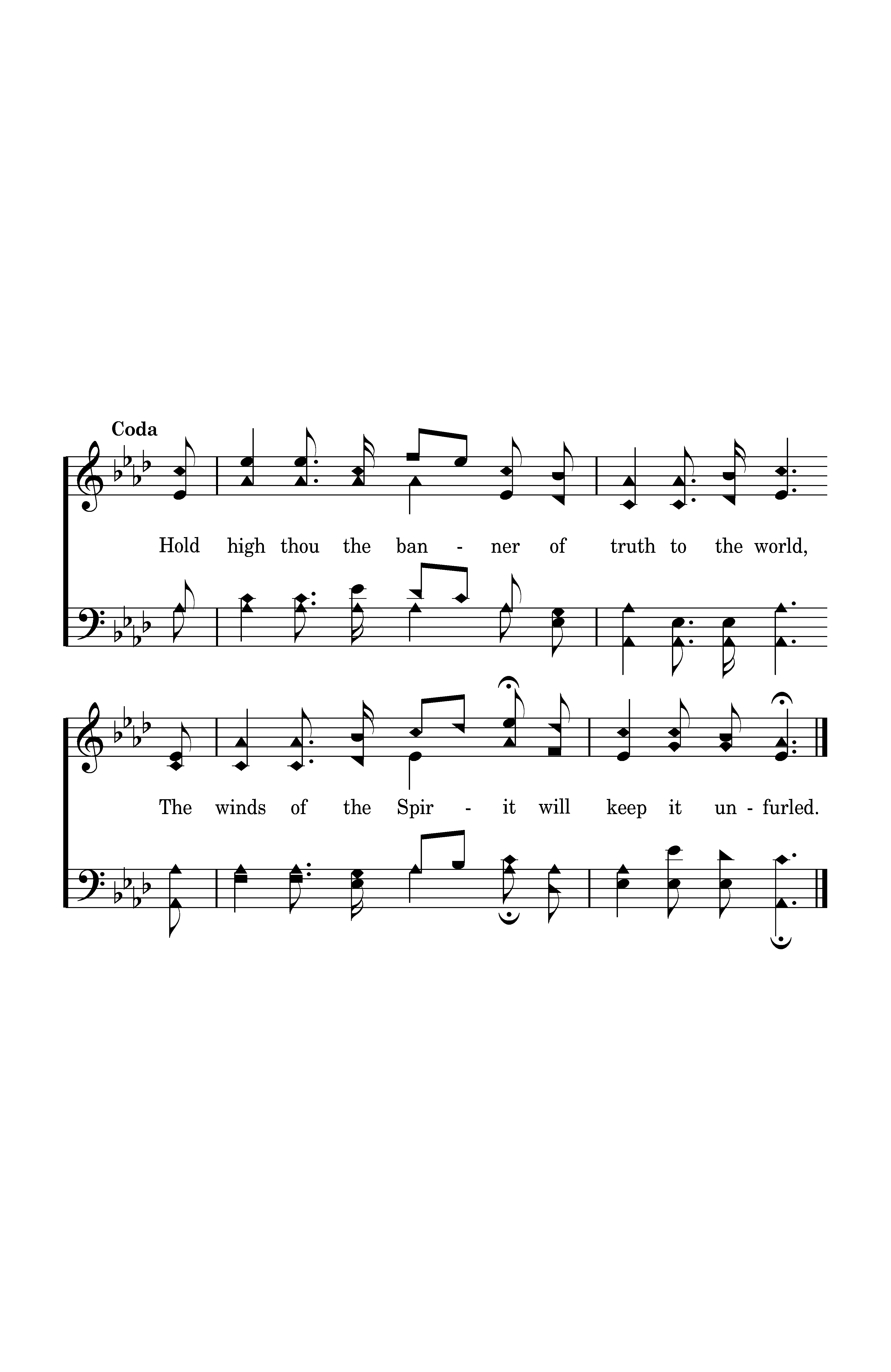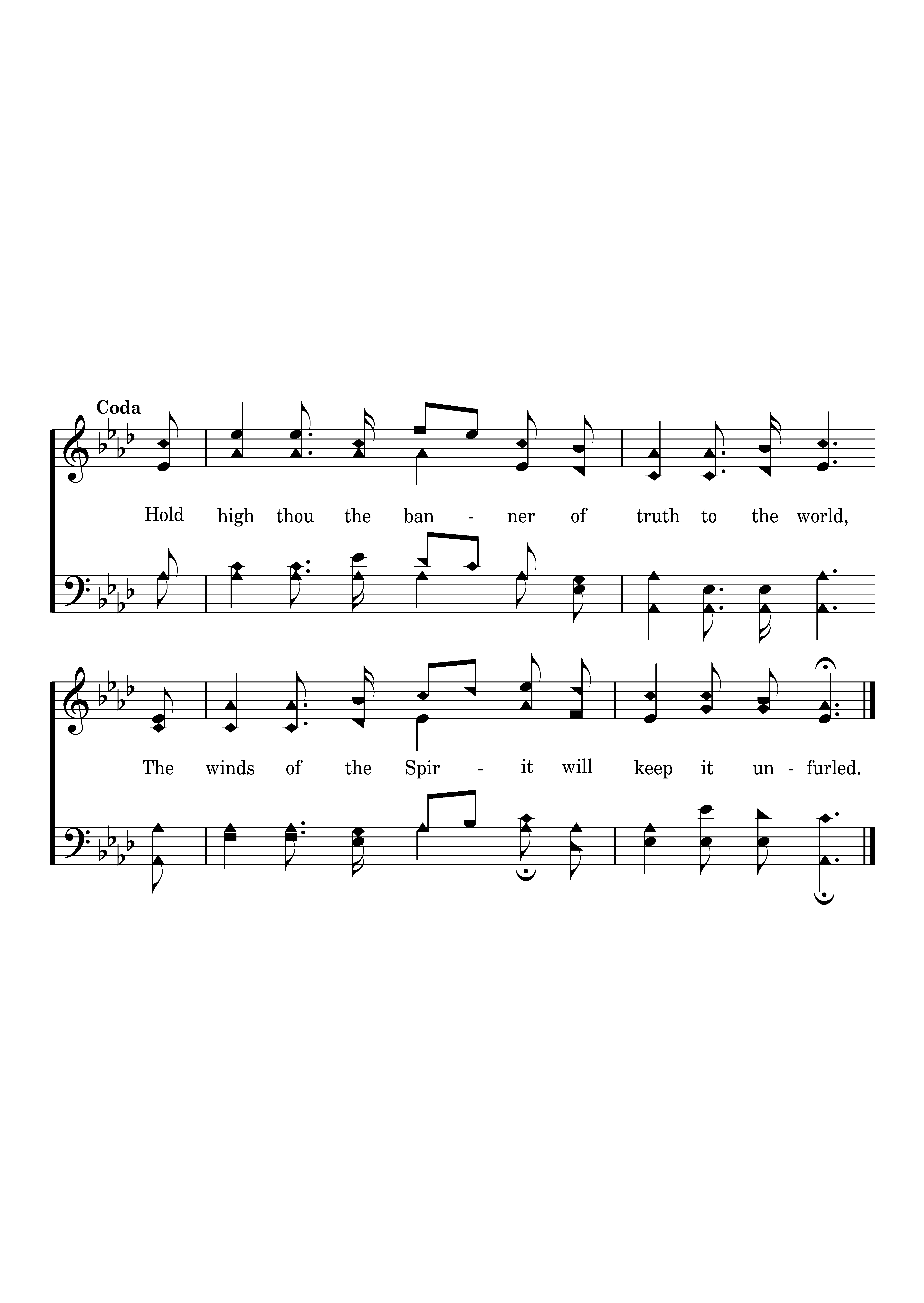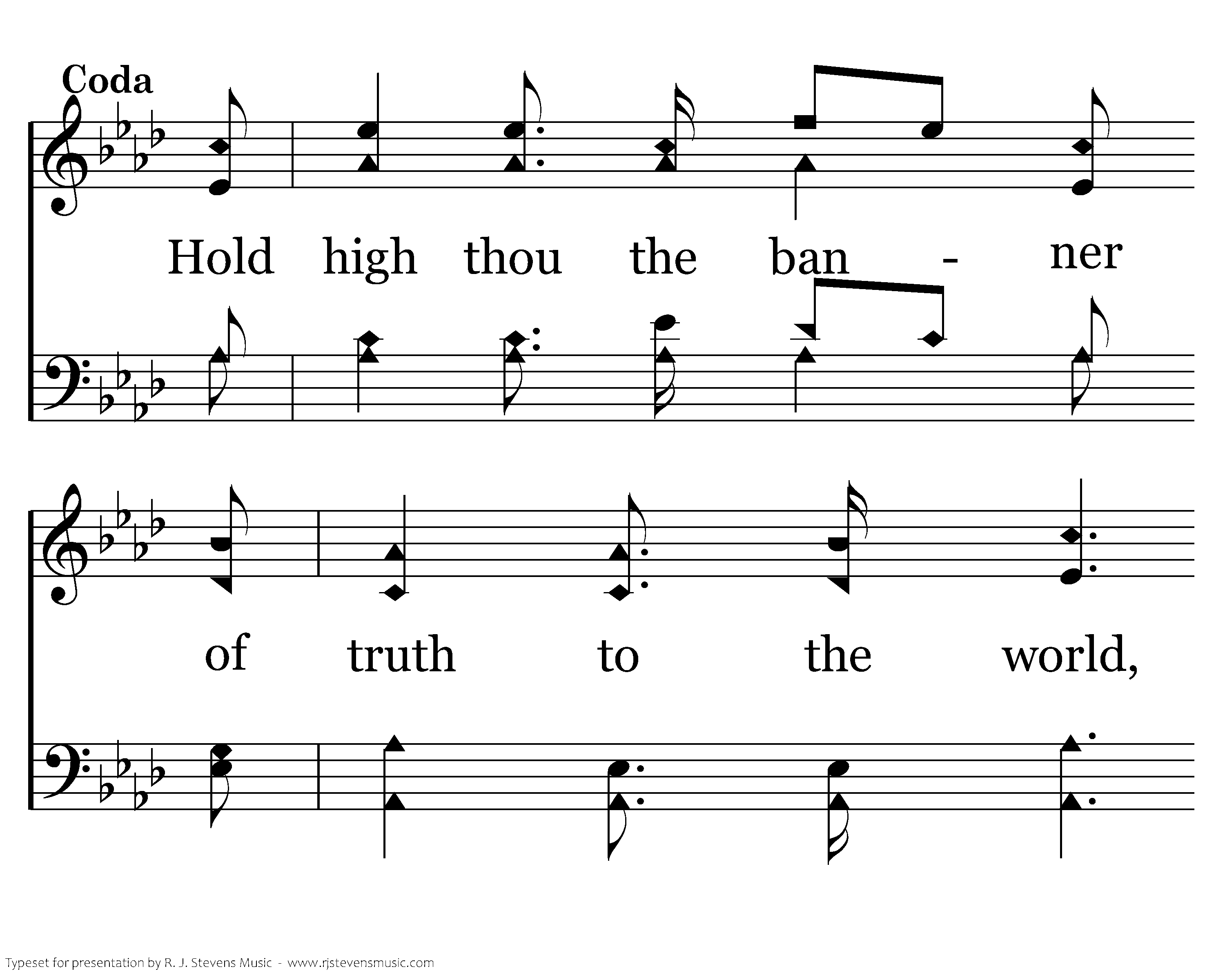 Hold high thou the banner of truth to the world, The winds of the Spirit will keep it unfurled.