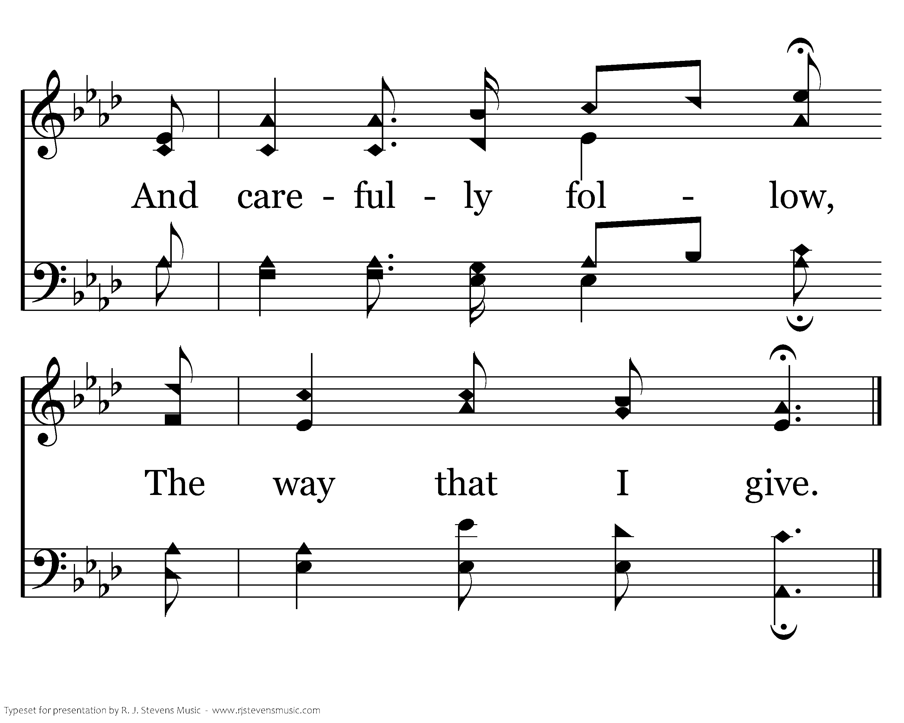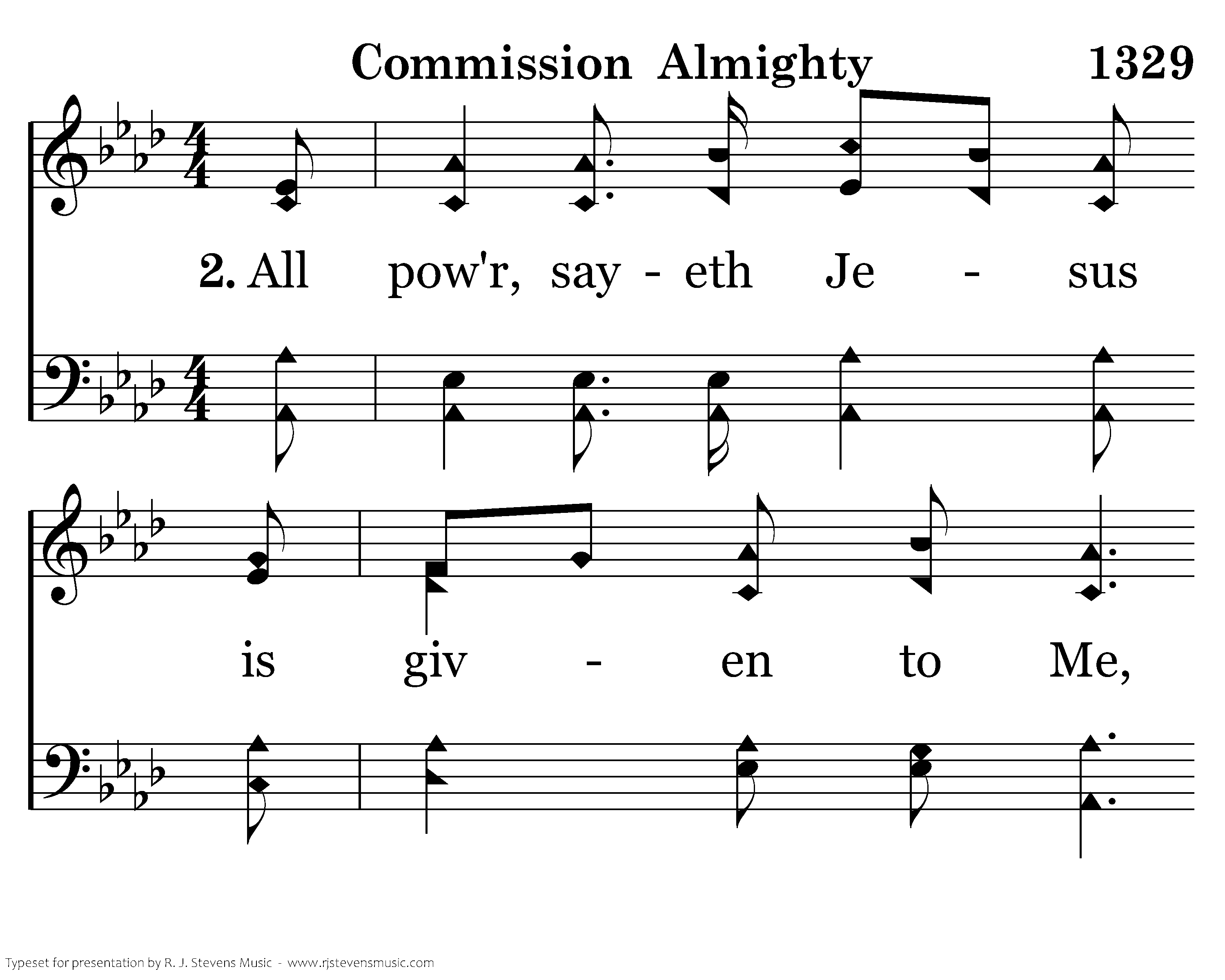 All pow'r, sayeth Jesus is given to Me, In heaven, on earth and beyond ev'ry sea, Go tell ev'ry people, For me they should live, And carefully follow, The way that I give.