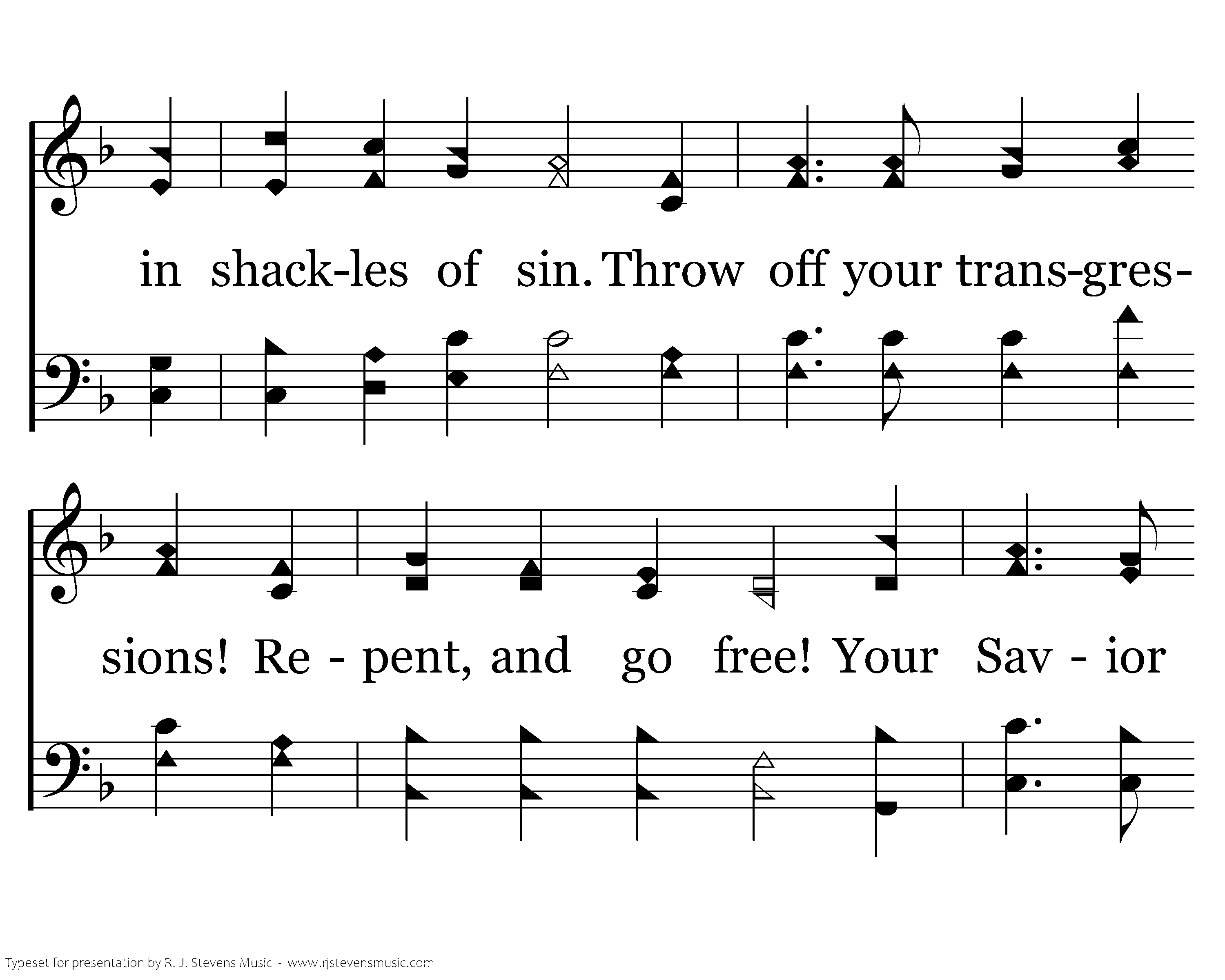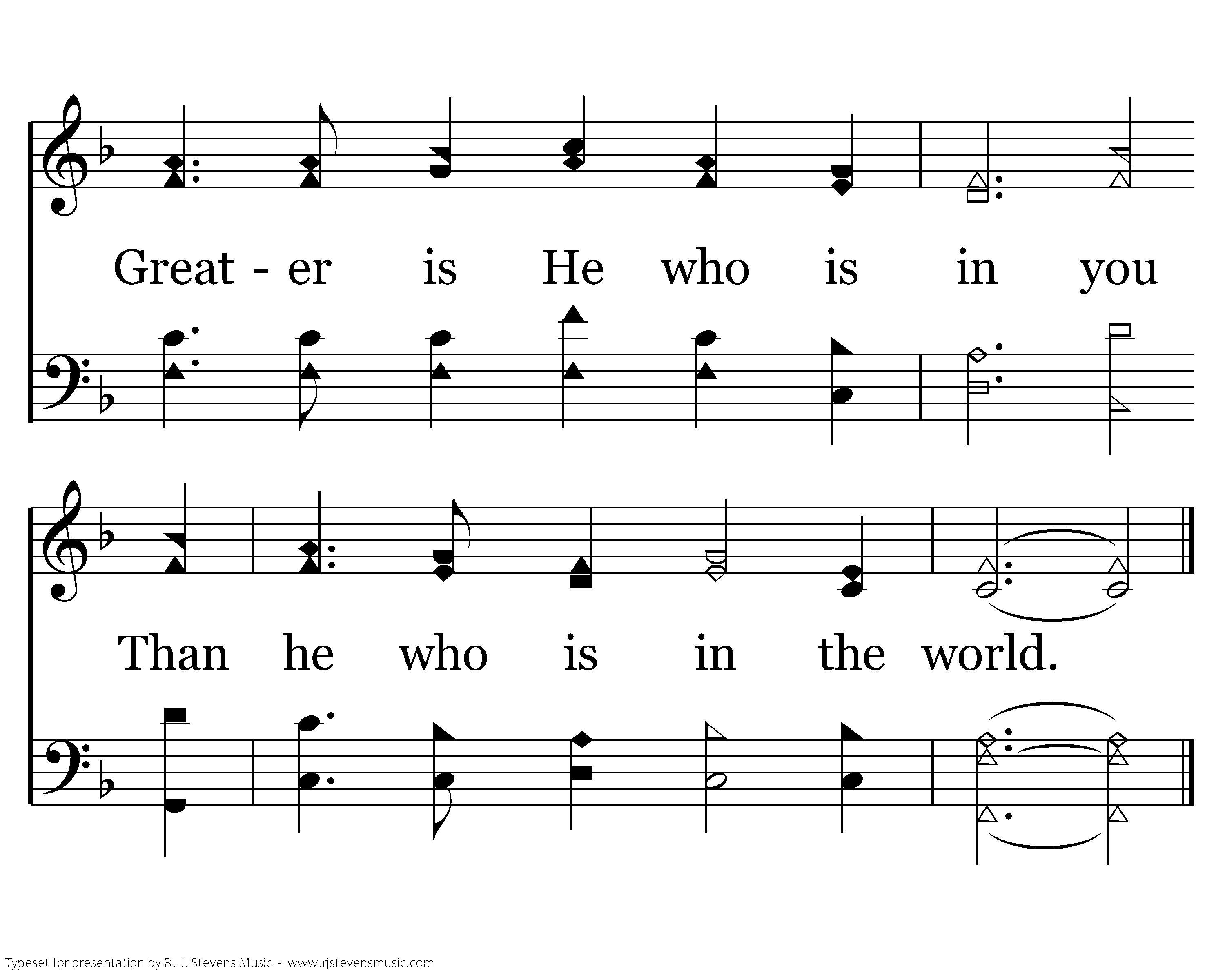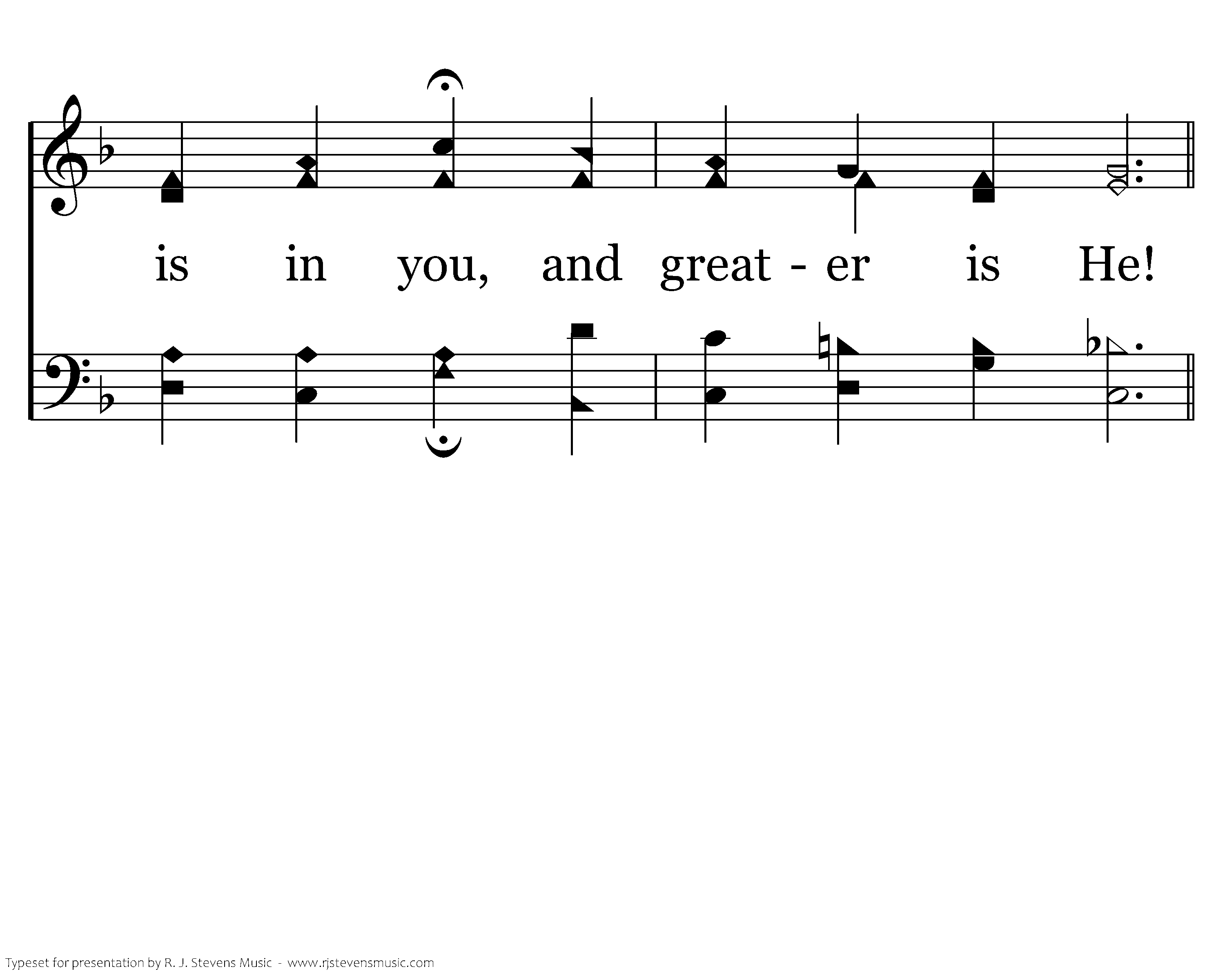 Consider His power when prisoned within, When Satan has bound you in shackles of sin. Throw off your transgressions! Repent, and go free! Your Savior will aid you, and greater is He!