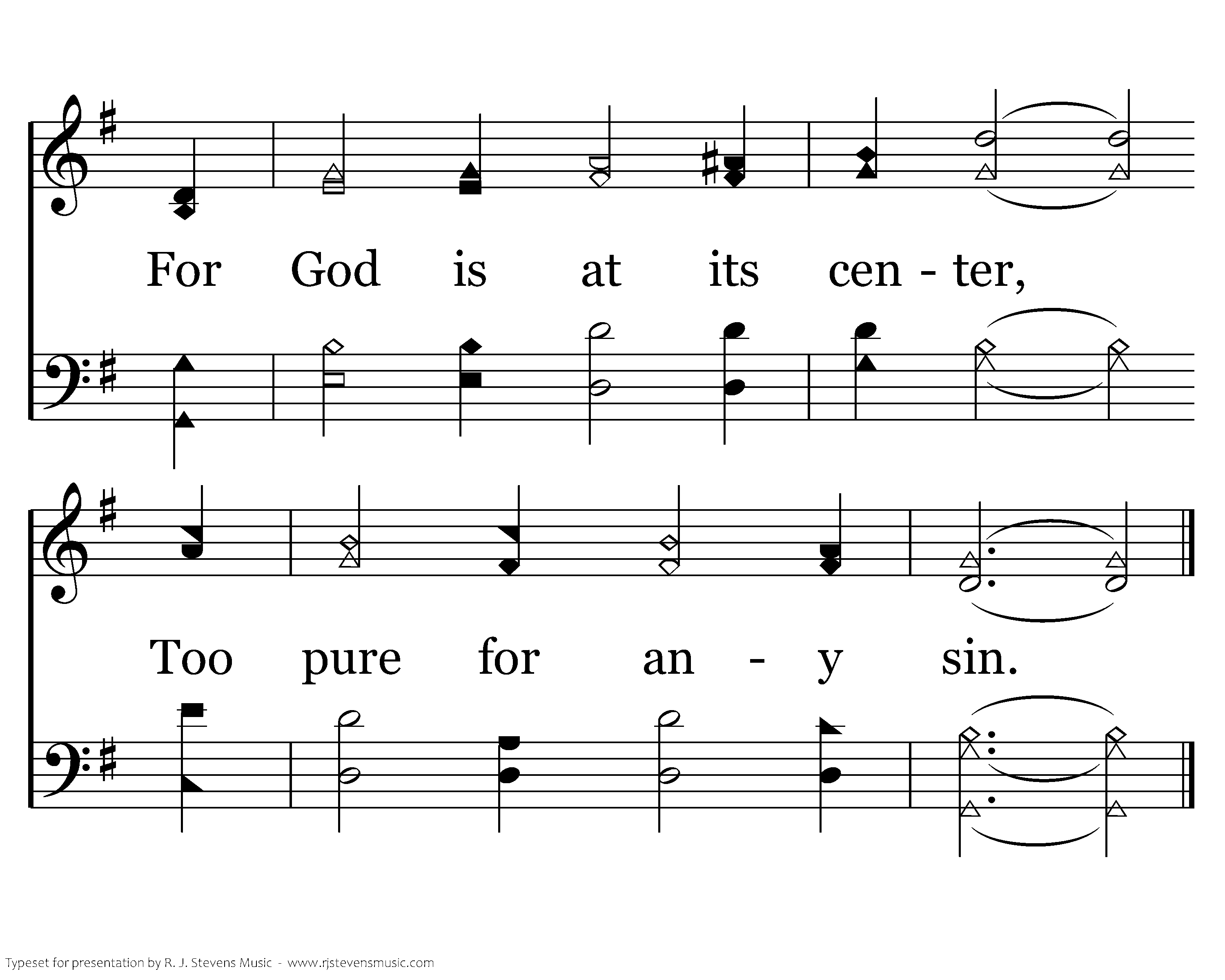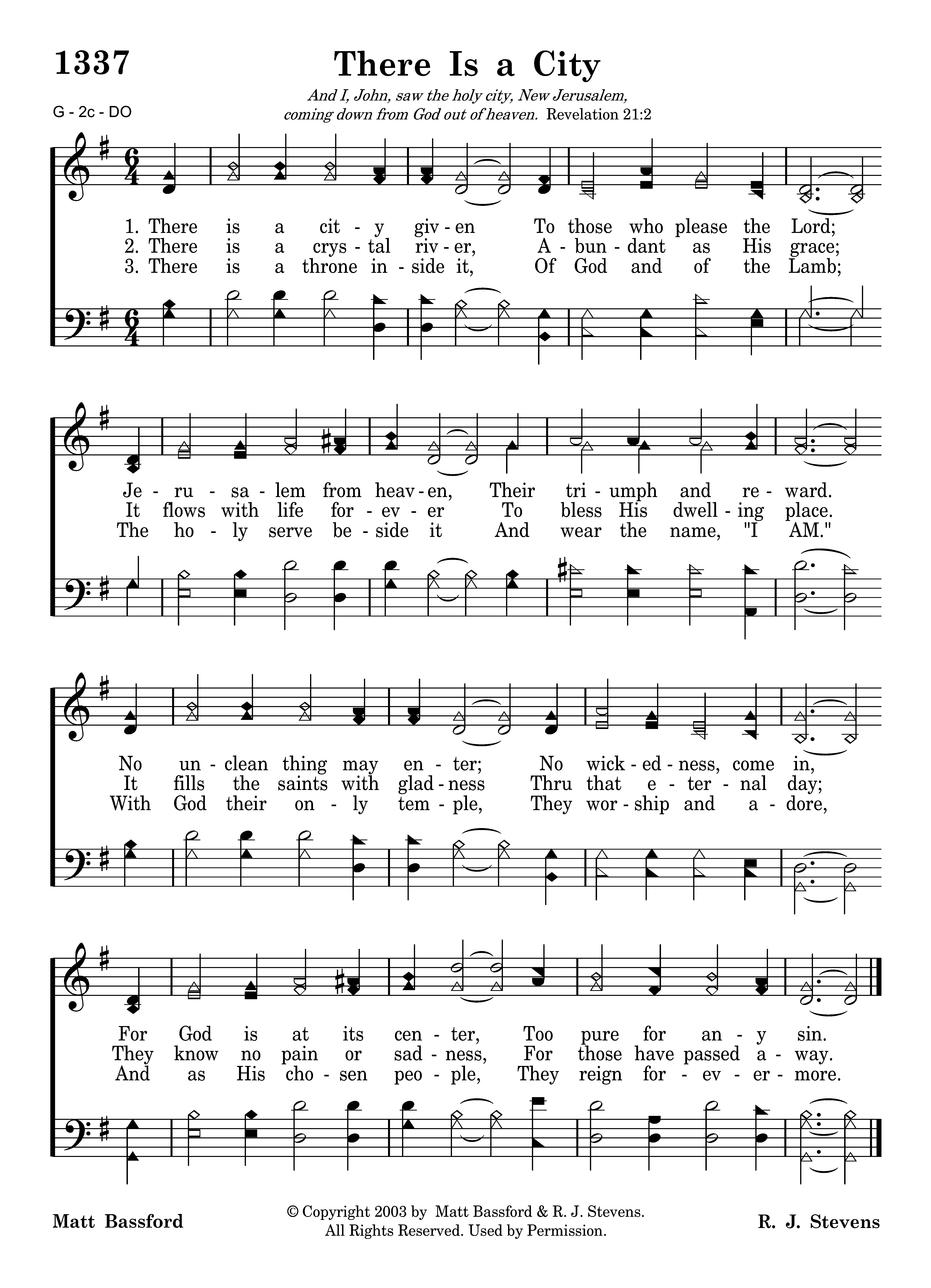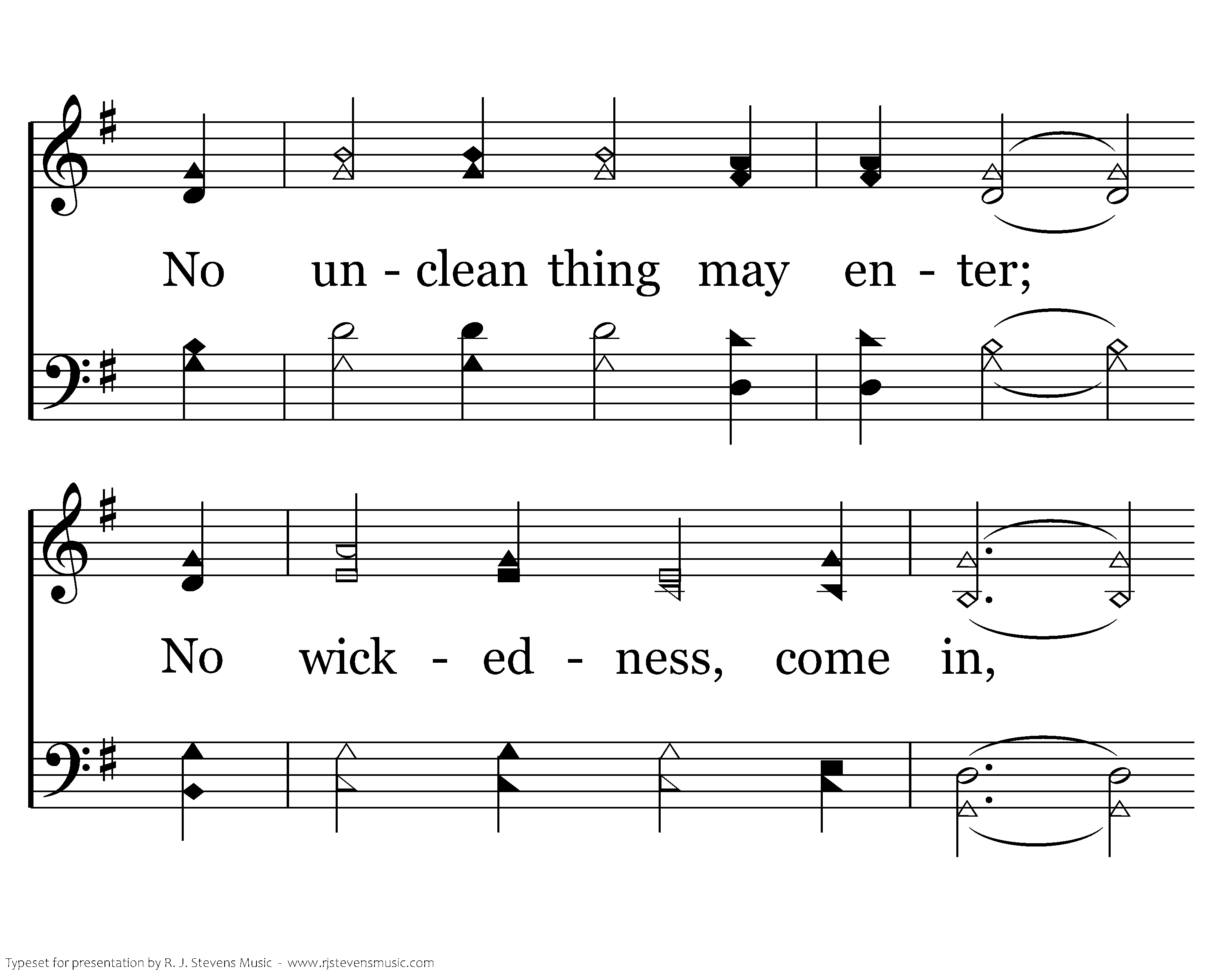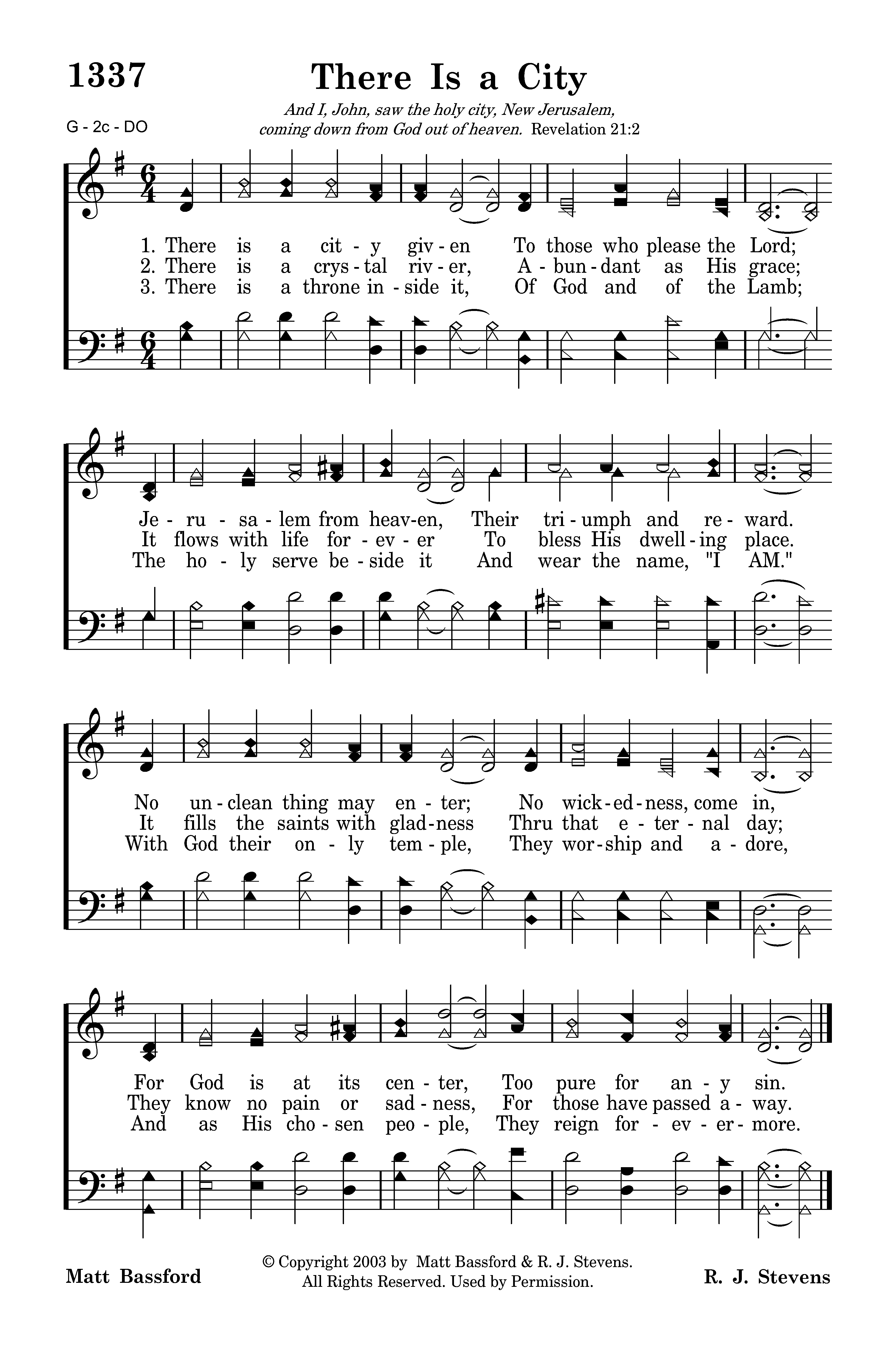 There is a city given To those who please the Lord; Jerusalem from heaven, Their triumph and reward. No unclean thing may enter; No wickedness, come in, For God is at its center, Too pure for any sin.