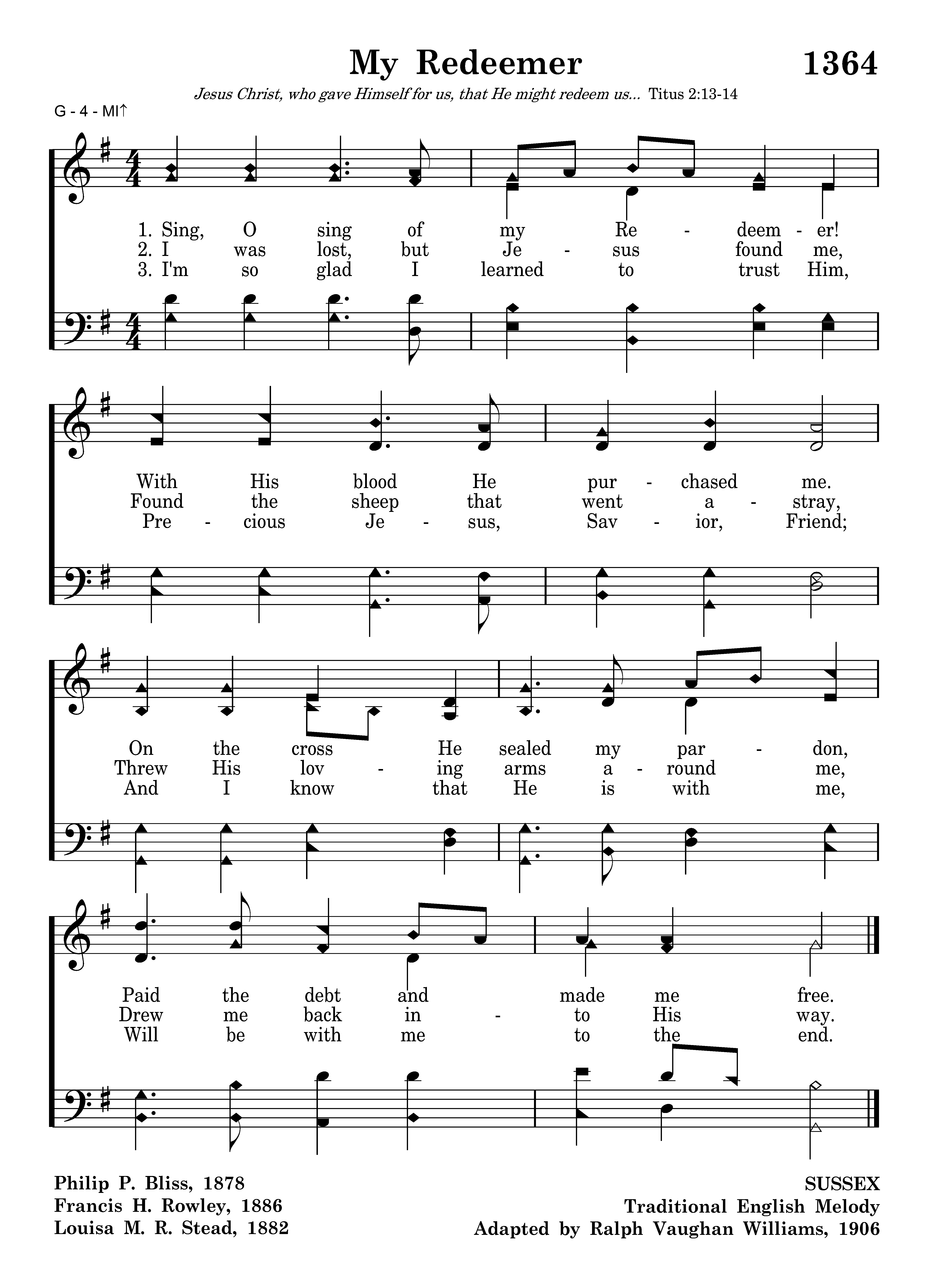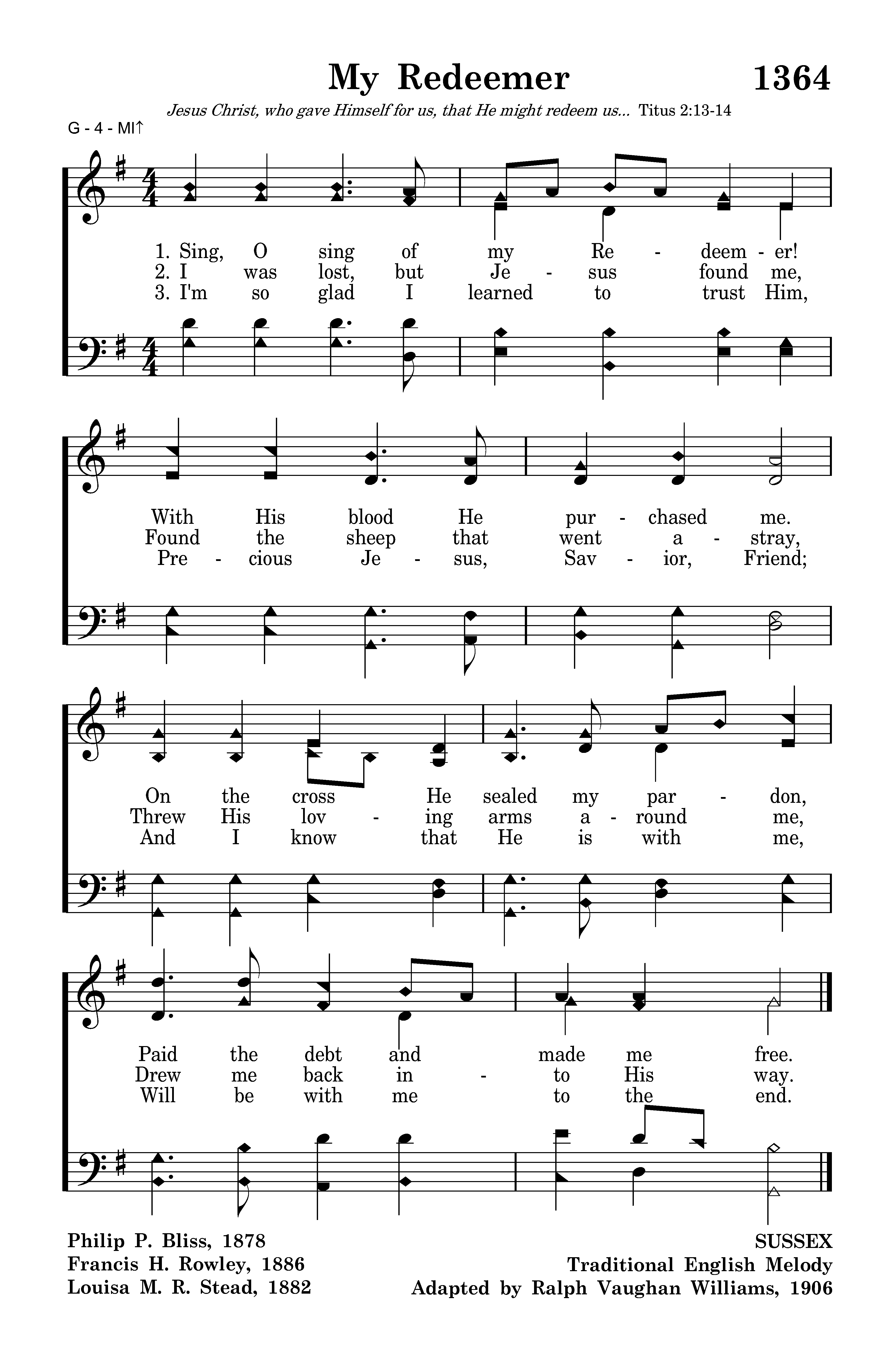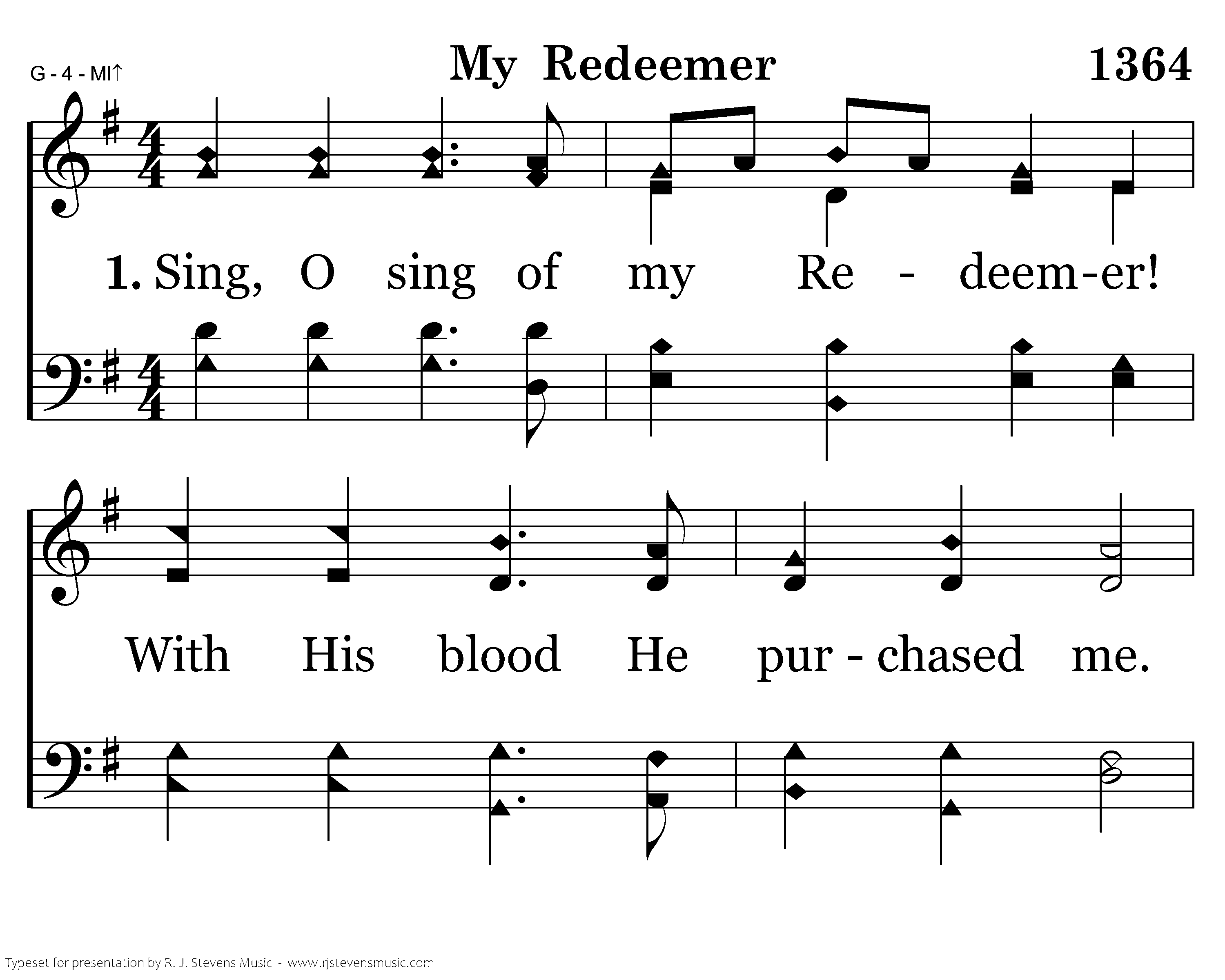 Sing, O sing of my Redeemer! With His blood He purchased me. On the cross He sealed my pardon, Paid the debt and made me free.