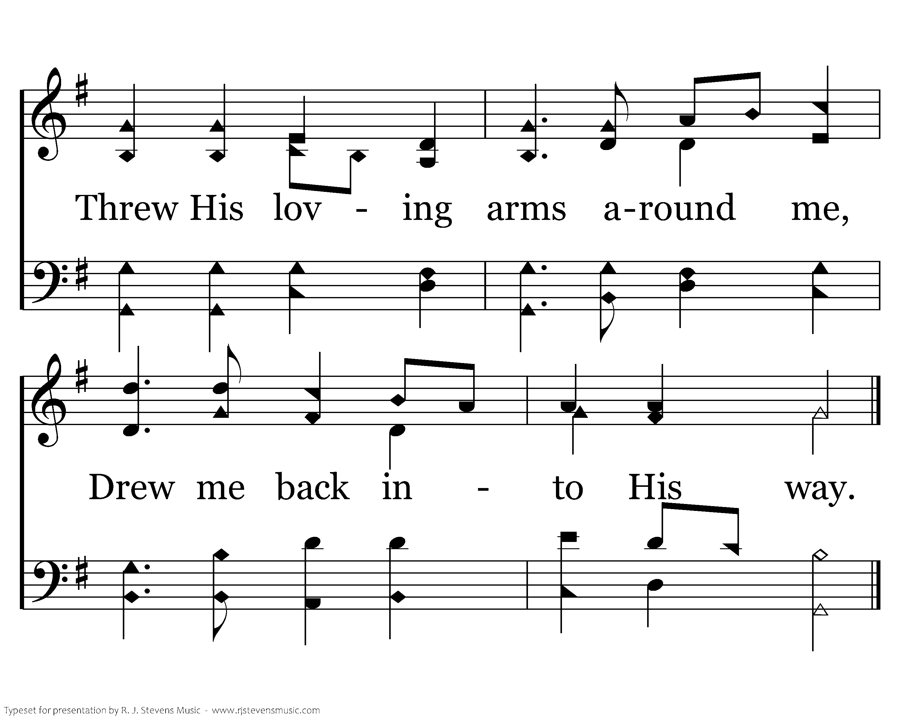 I was lost, but Jesus found me, Found the sheep that went astray, Threw His loving arms around me, Drew me back into His way.