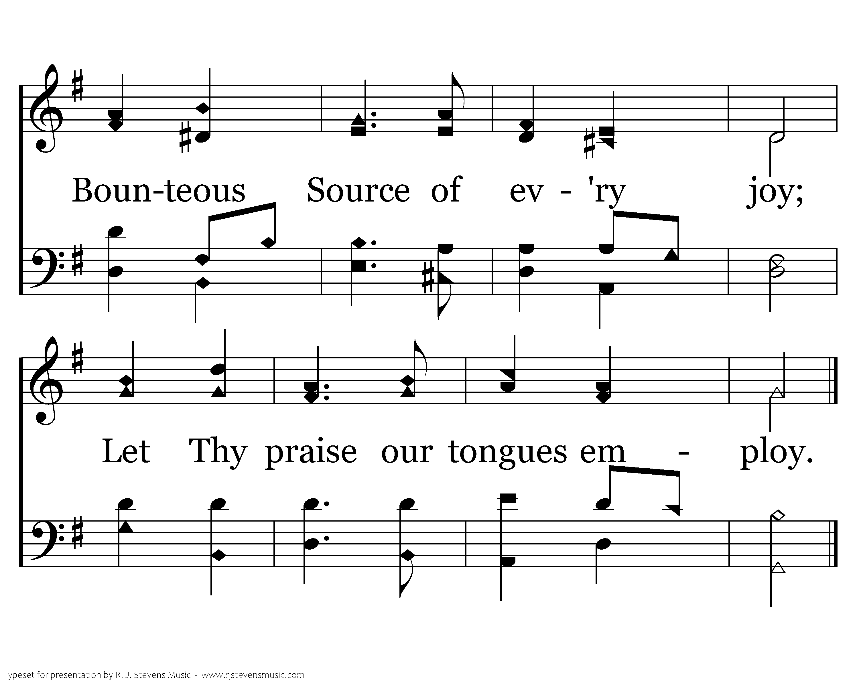 Praise to God, immortal praise, For the love that crowns our days; Bounteous Source of ev'ry joy; Let Thy praise our tongues employ.