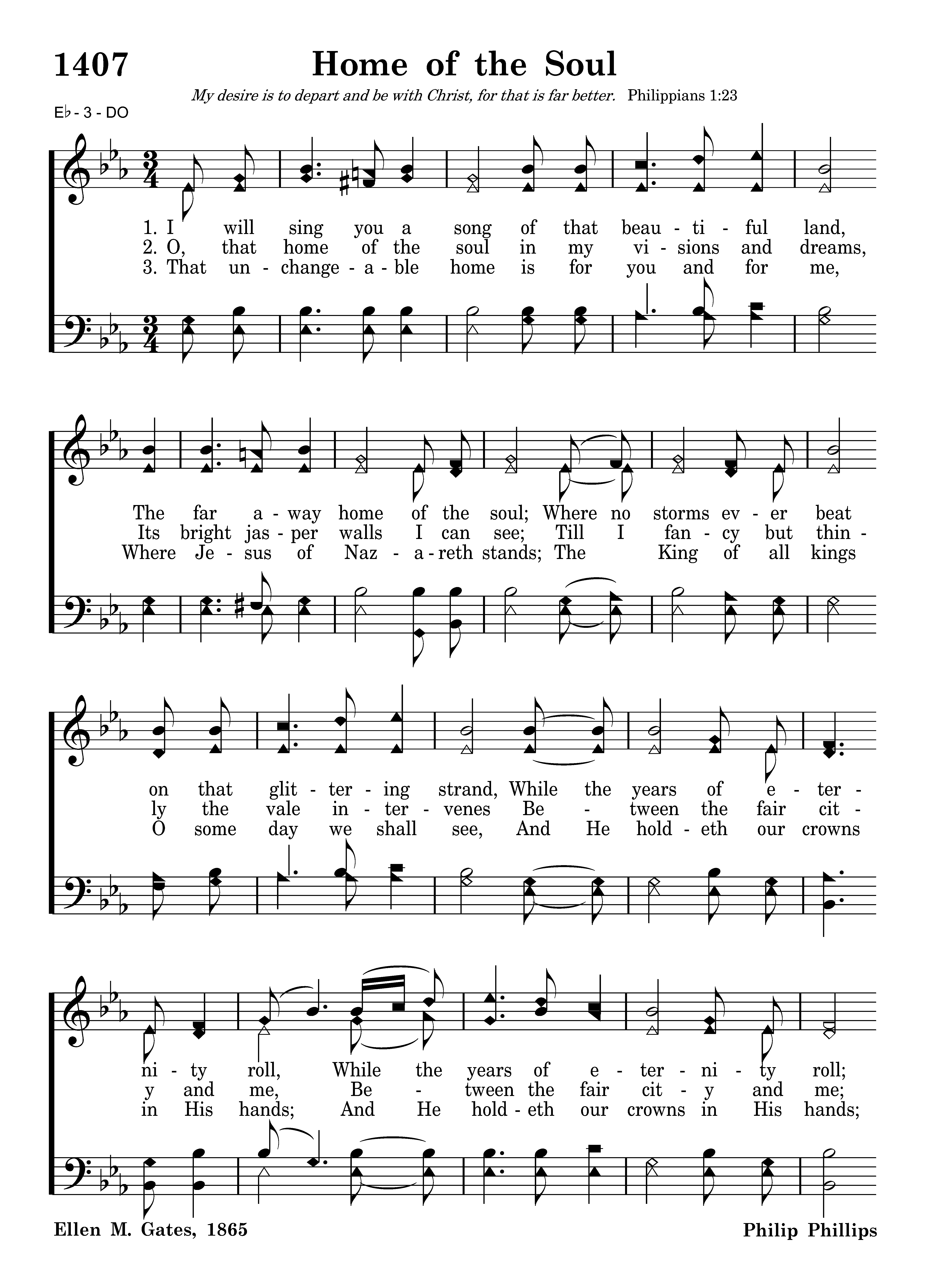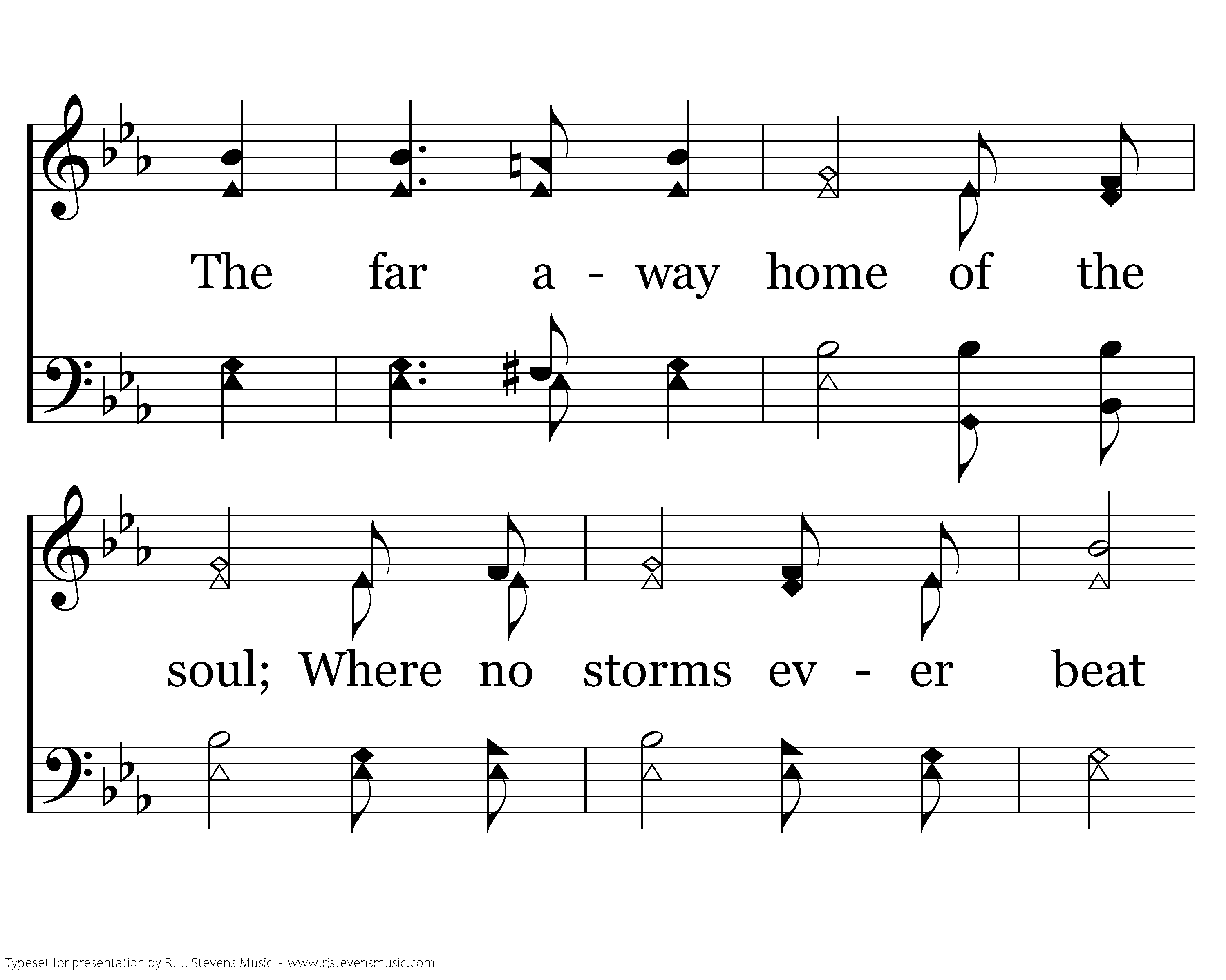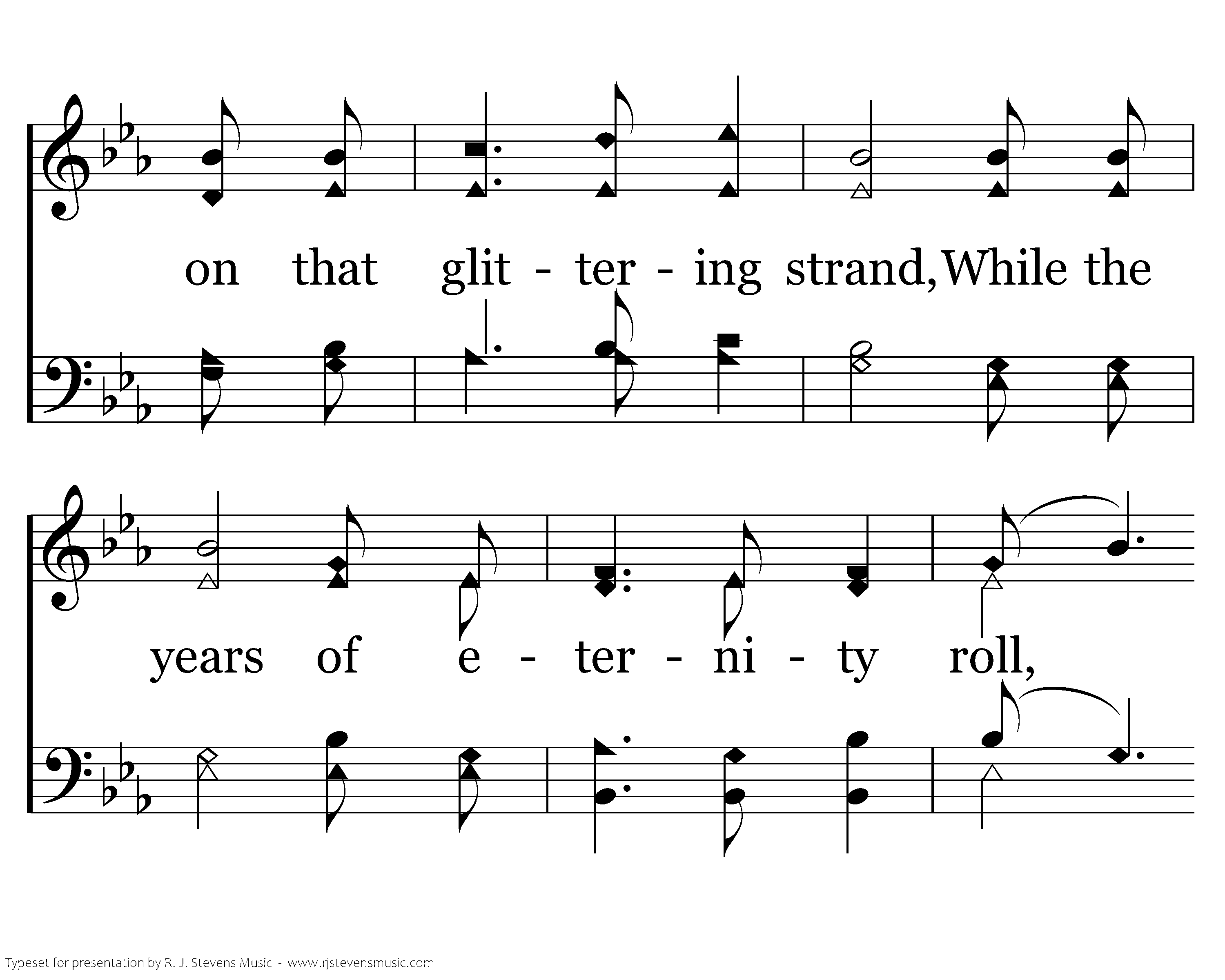 I will sing you a song of that beautiful land, The far away home of the soul; Where no storms ever beat on that glittering strand, While the years of eternity roll, While the years of eternity roll; Where no storms ever beat on that glittering strand, While the years of eternity roll.