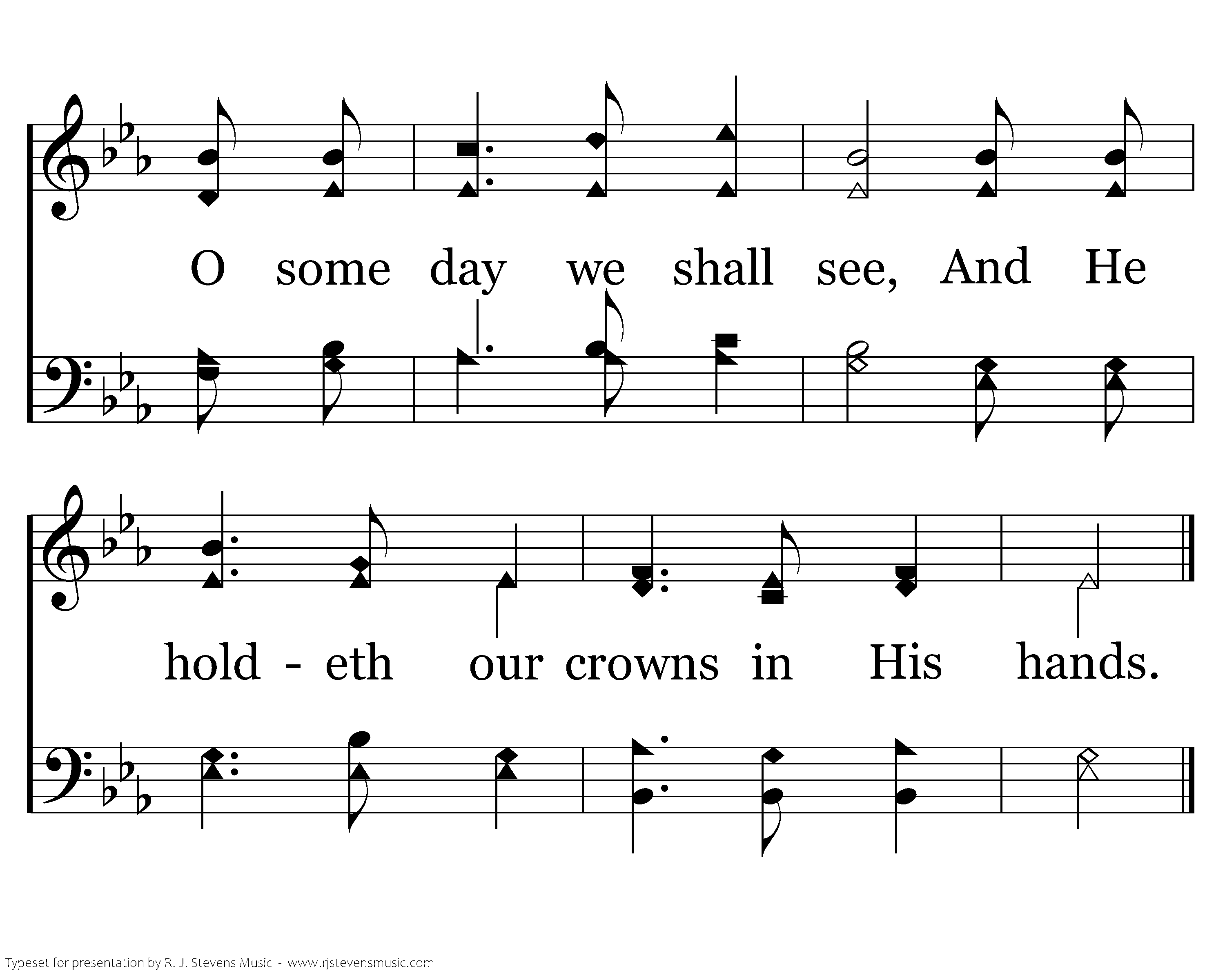 That unchangeable home is for you and for me, Where Jesus of Nazareth stands; The King of all kings O some day we shall see, And He holdeth our crowns in His hands; And He holdeth our crowns in His hands; The King of all kings O some day we shall see, And He holdeth our crowns in His hands.