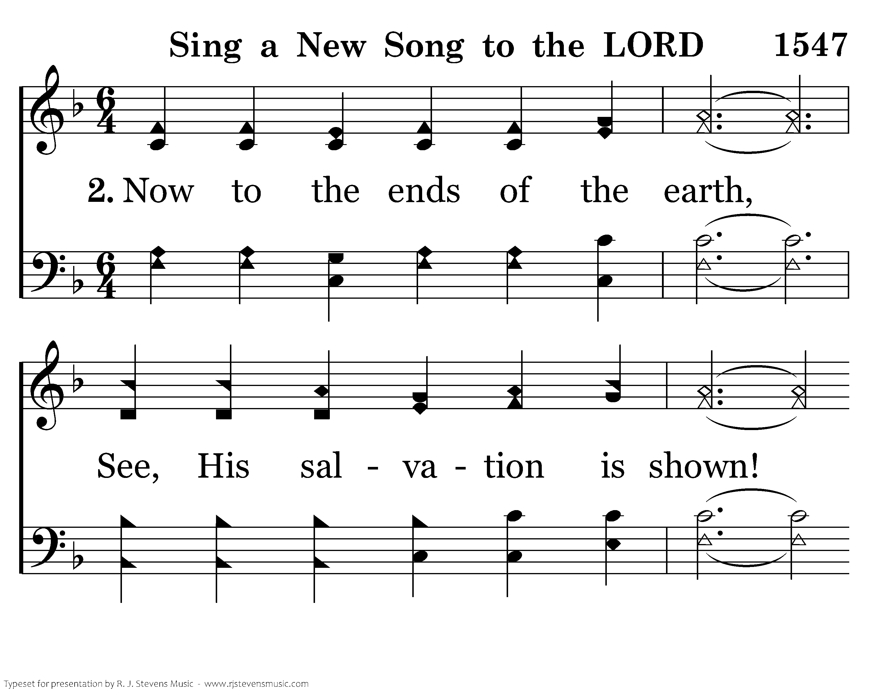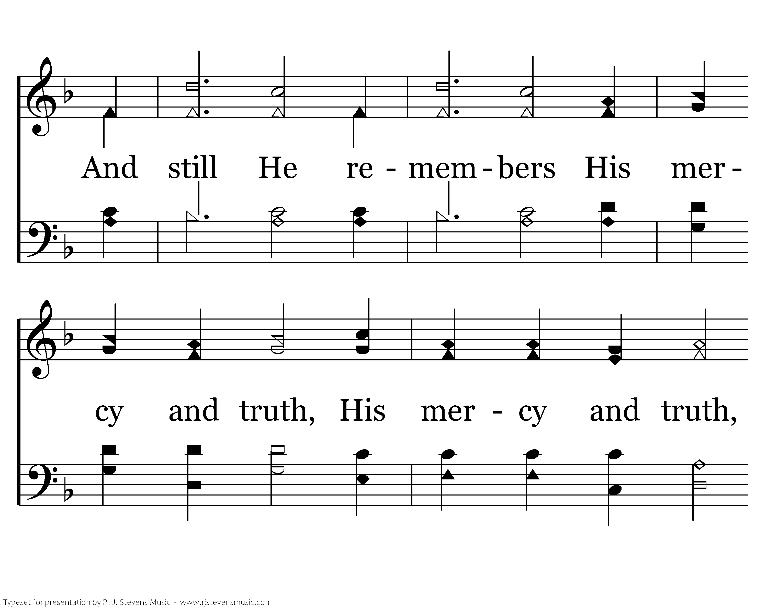 Now to the ends of the earth, See, His salvation is shown! And still He remembers His mercy and truth, His mercy and truth, Unchanging in love to His own!