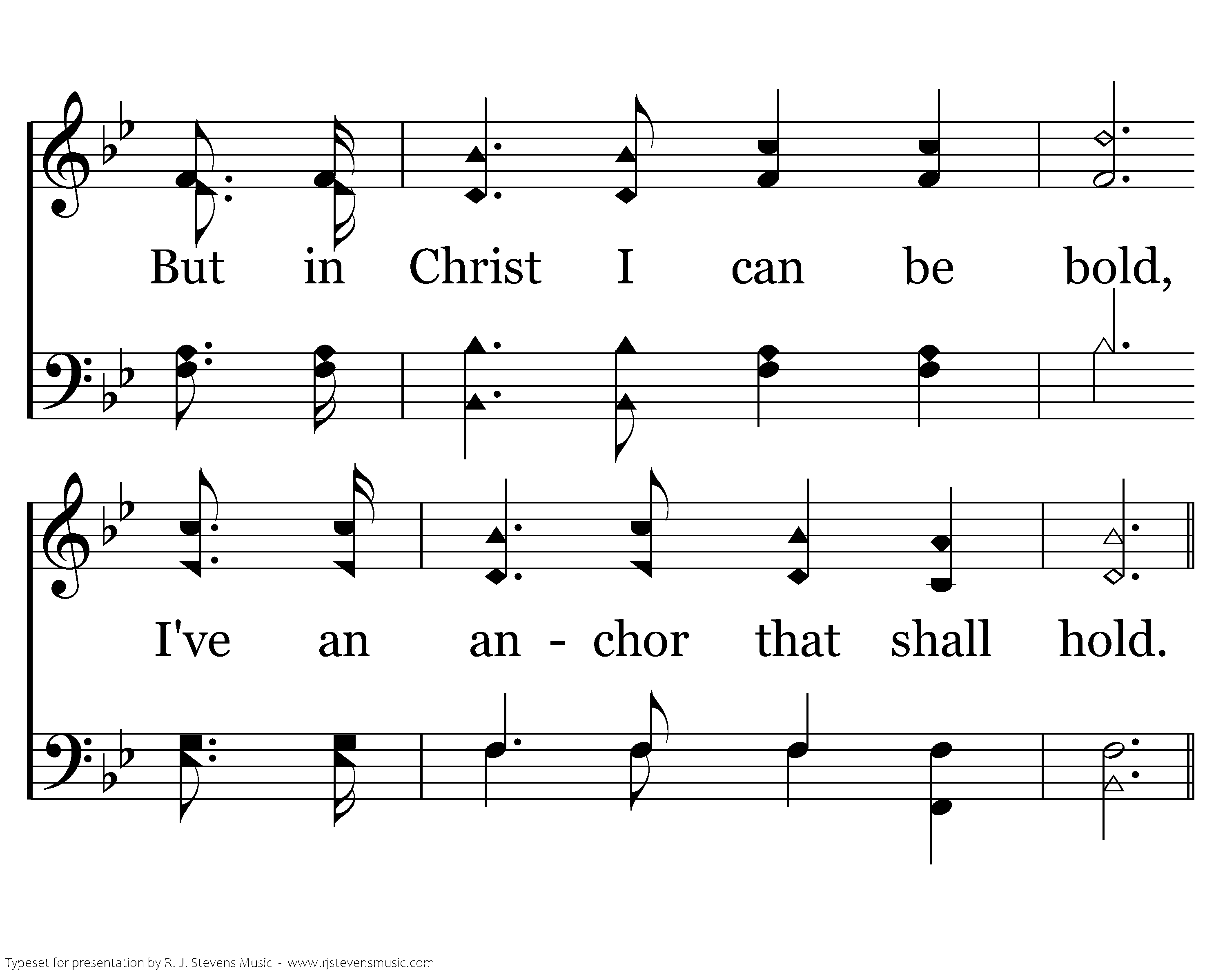 Tho' the angry surges roll On my tempestdriven soul, I am peaceful, for I know, Wildly tho' the winds may blow, I've an anchor safe and sure, That can evermore endure.