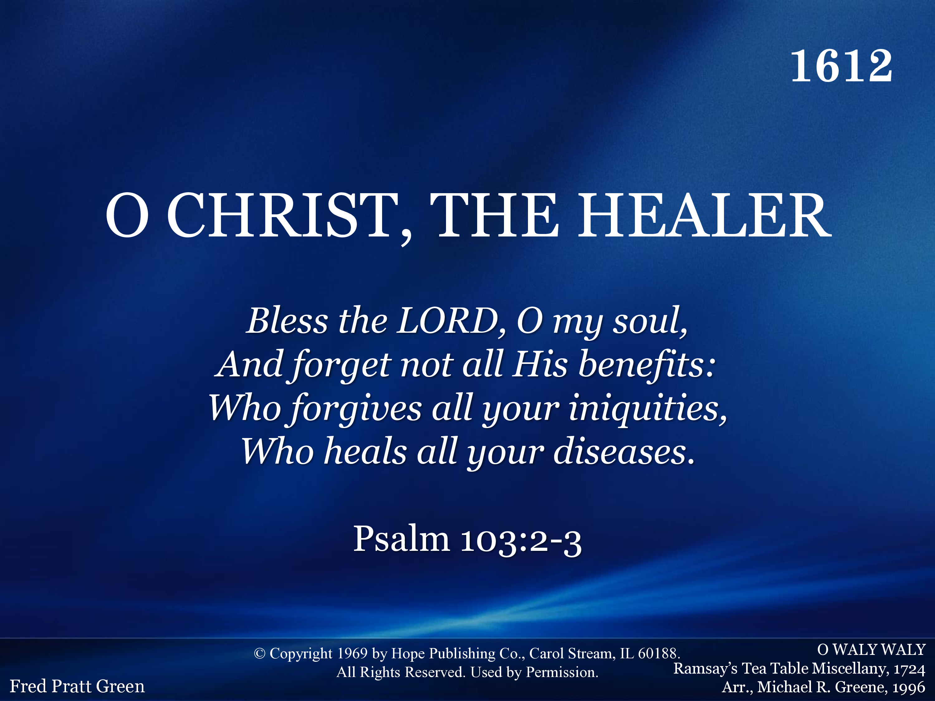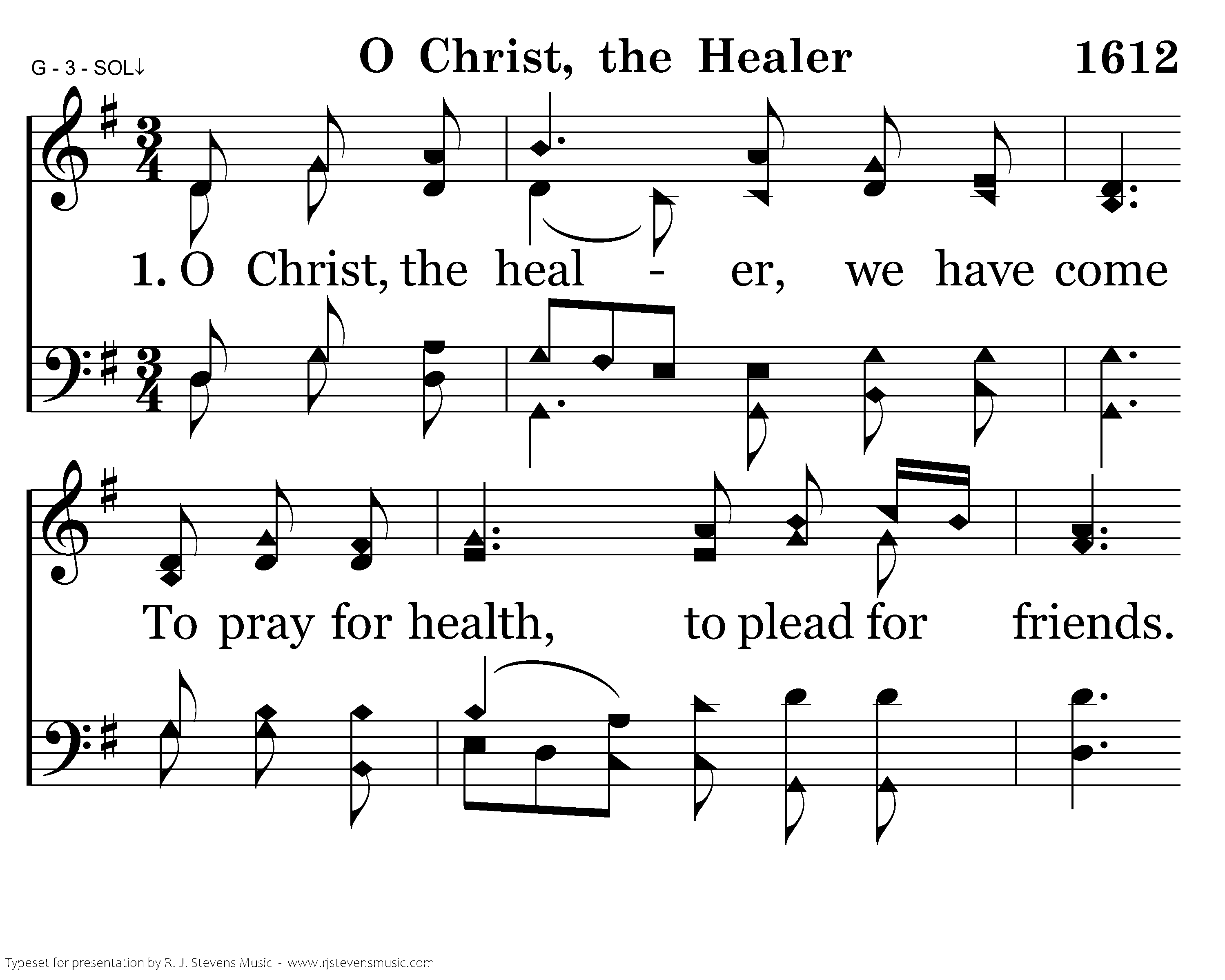 O Christ, the healer, we have come To pray for health, to plead for friends. How can we fail to be restored When reached by love that never ends?