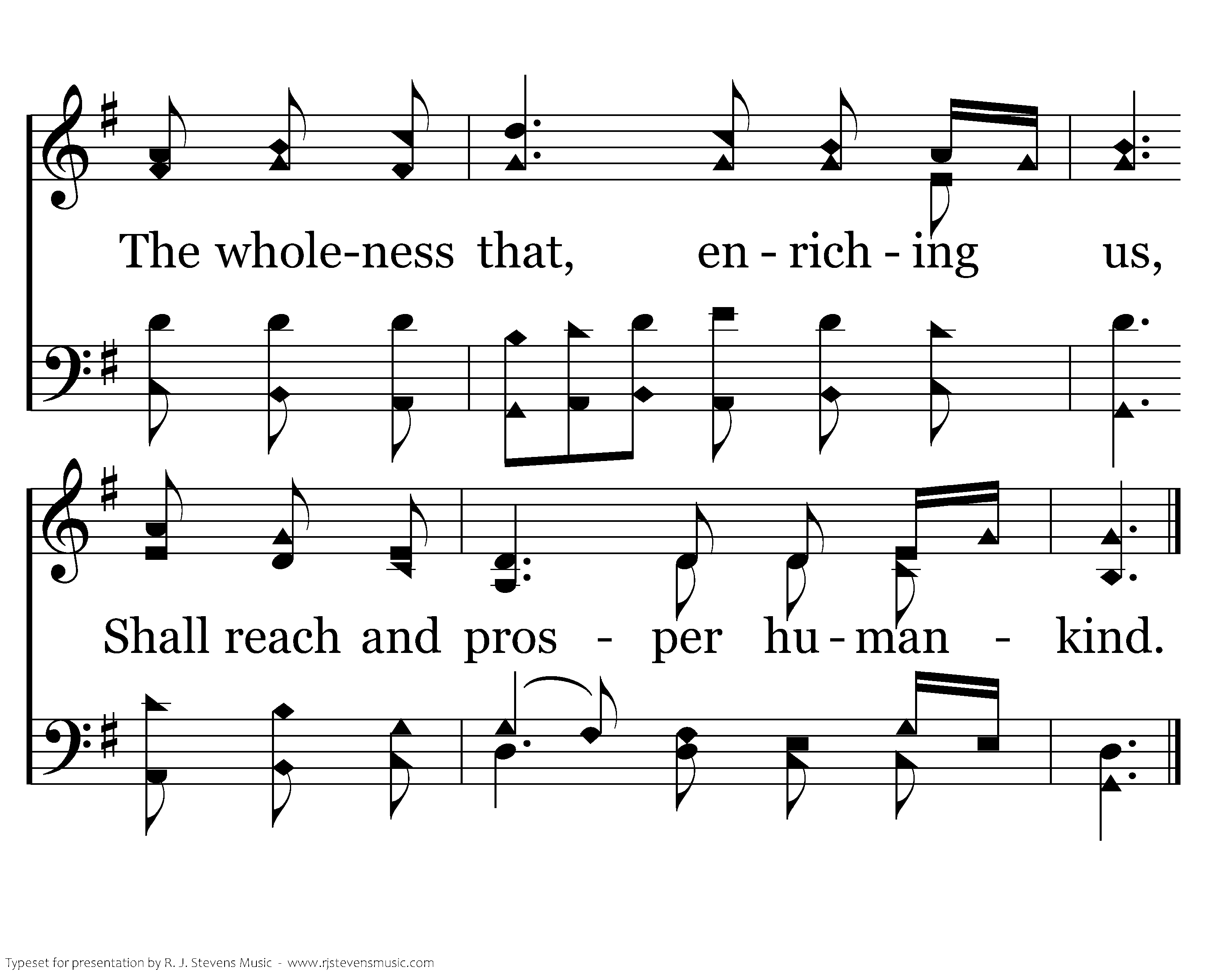 Grant that we all, made one in faith, In Your community may find The wholeness that, enriching us, Shall reach and prosper humankind.