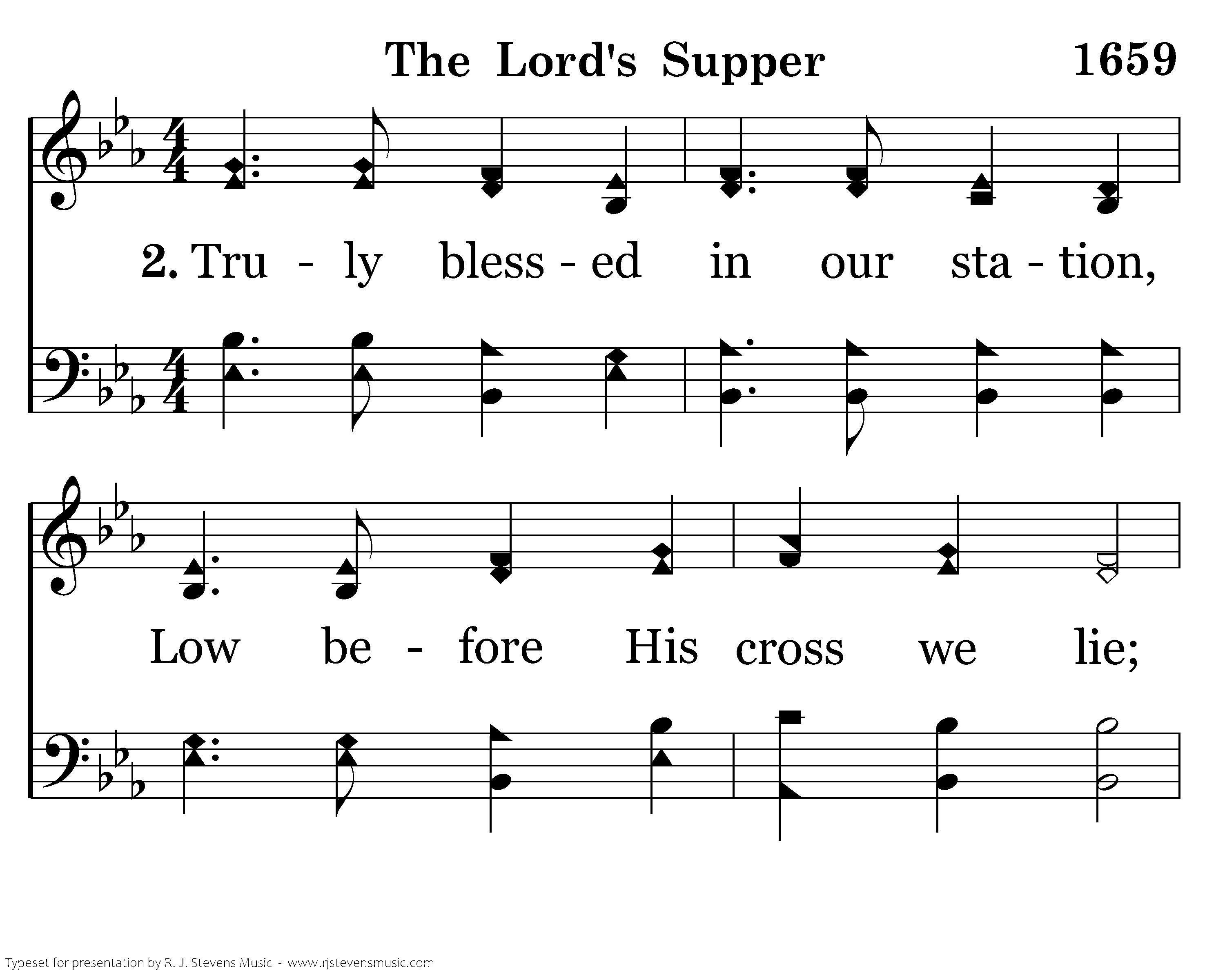 Truly blessed in our station, Low before His cross we lie; While we see divine compassion, Beaming in His gracious eye. Hallelujah! Hallelujah! Beaming in His gracious eye.