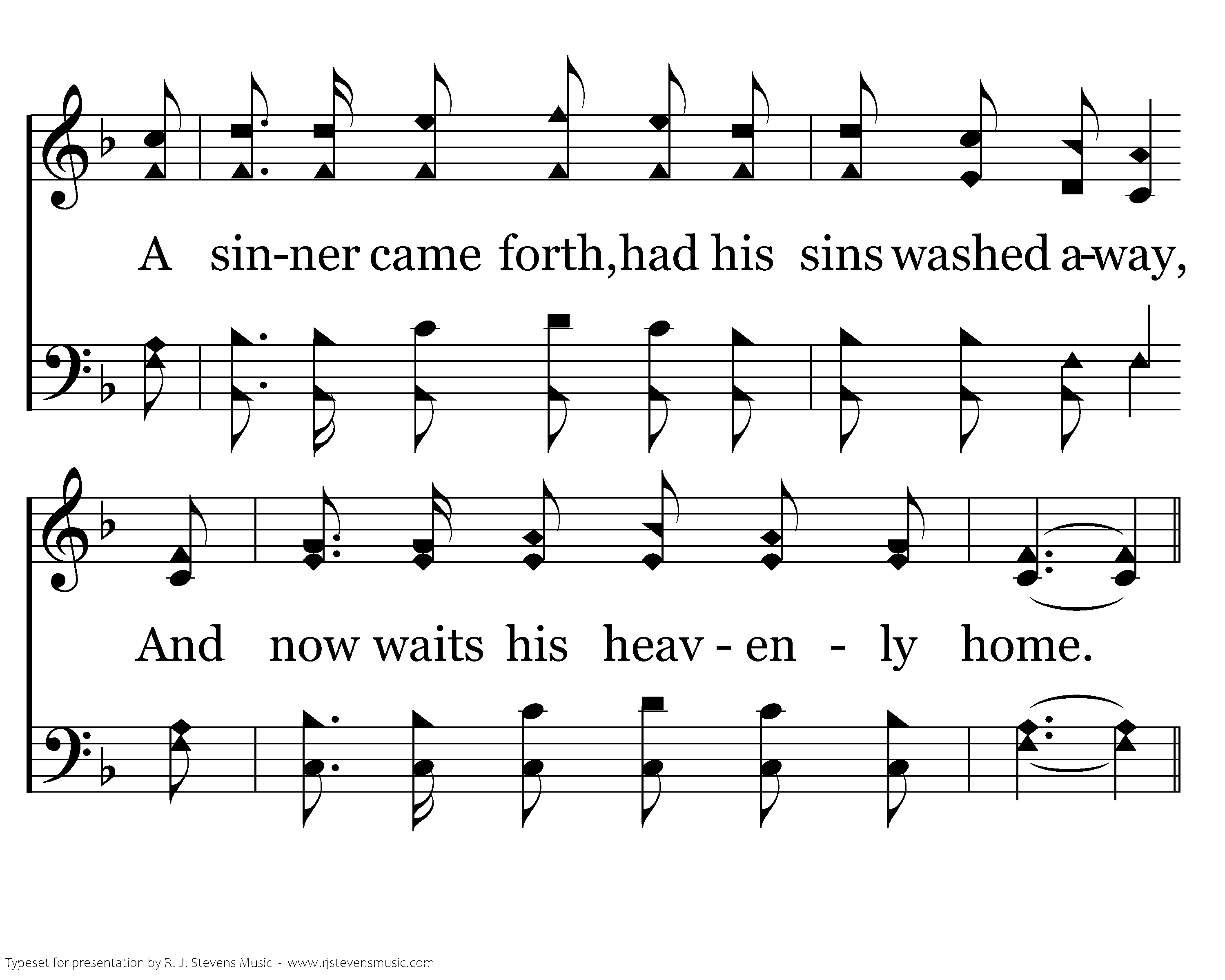 The angels are singing in heaven today, Rejoicing 'round God's holy throne; A sinner came forth, had his sins washed away, And now waits his heavenly home.