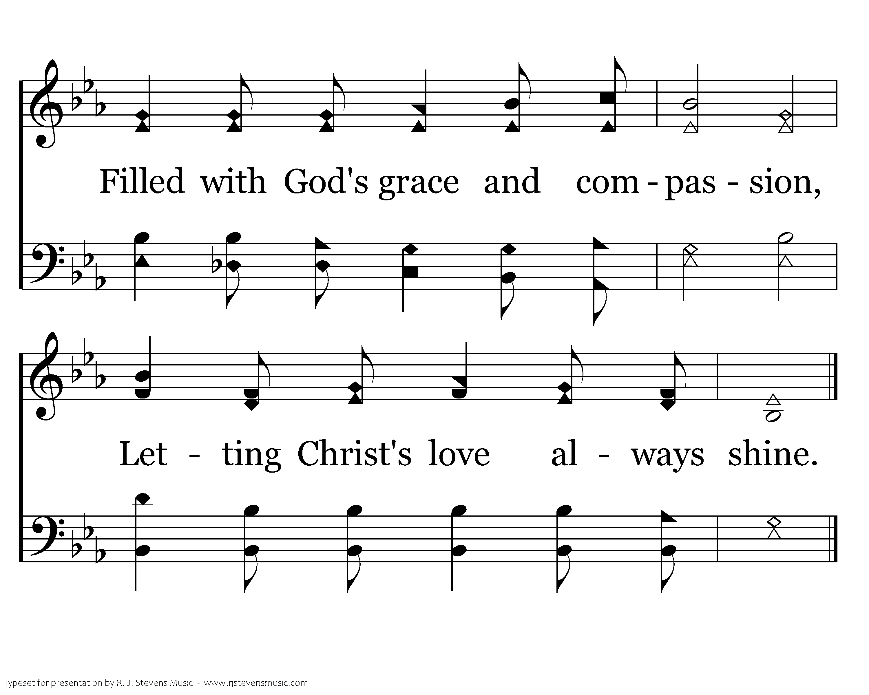 You are the salt of the nations; You are the seas'ning divine, Filled with God's grace and compassion, Letting Christ's love always shine.