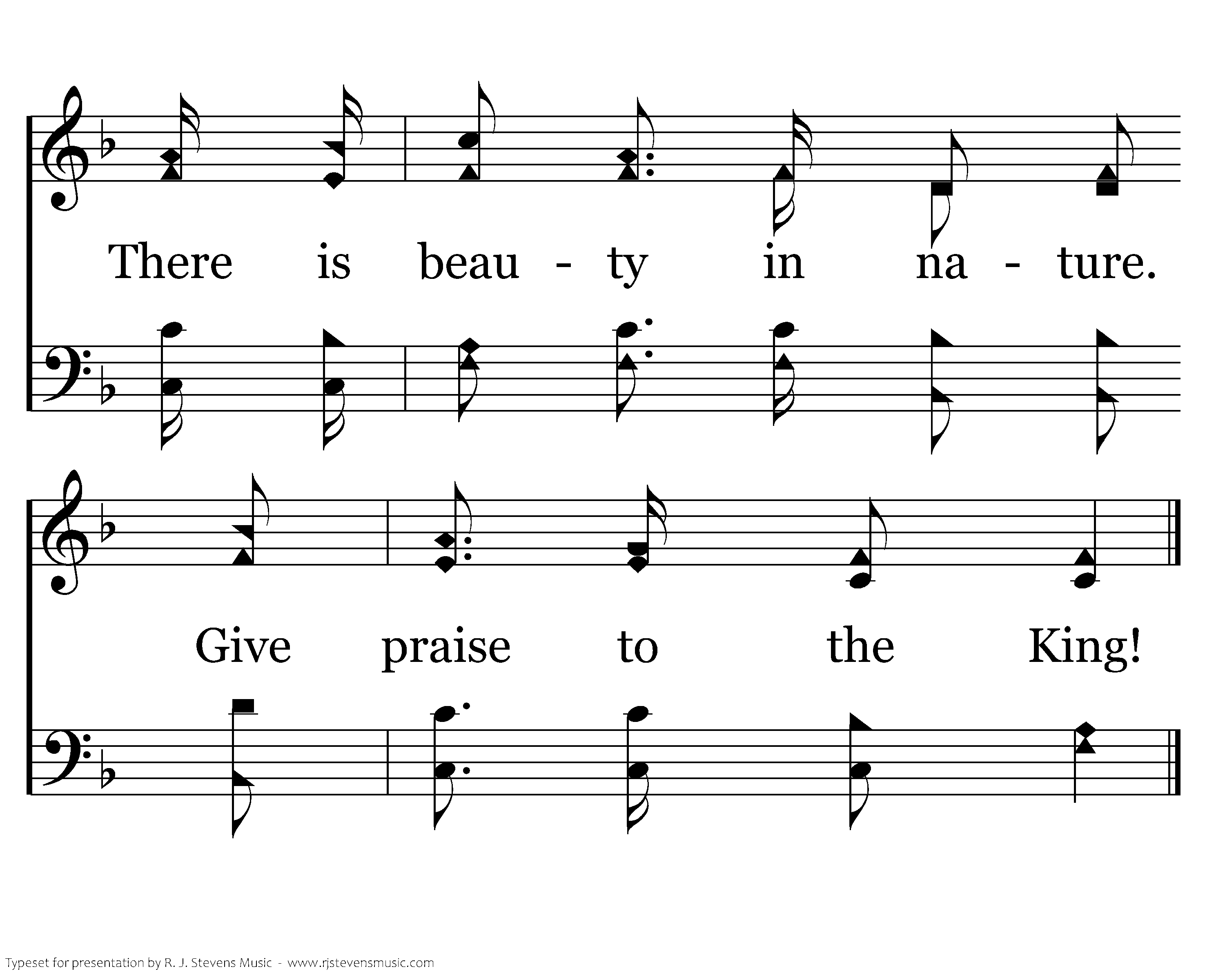 We see His creation. We hear the birds sing. There is beauty in nature. Give praise to the King!