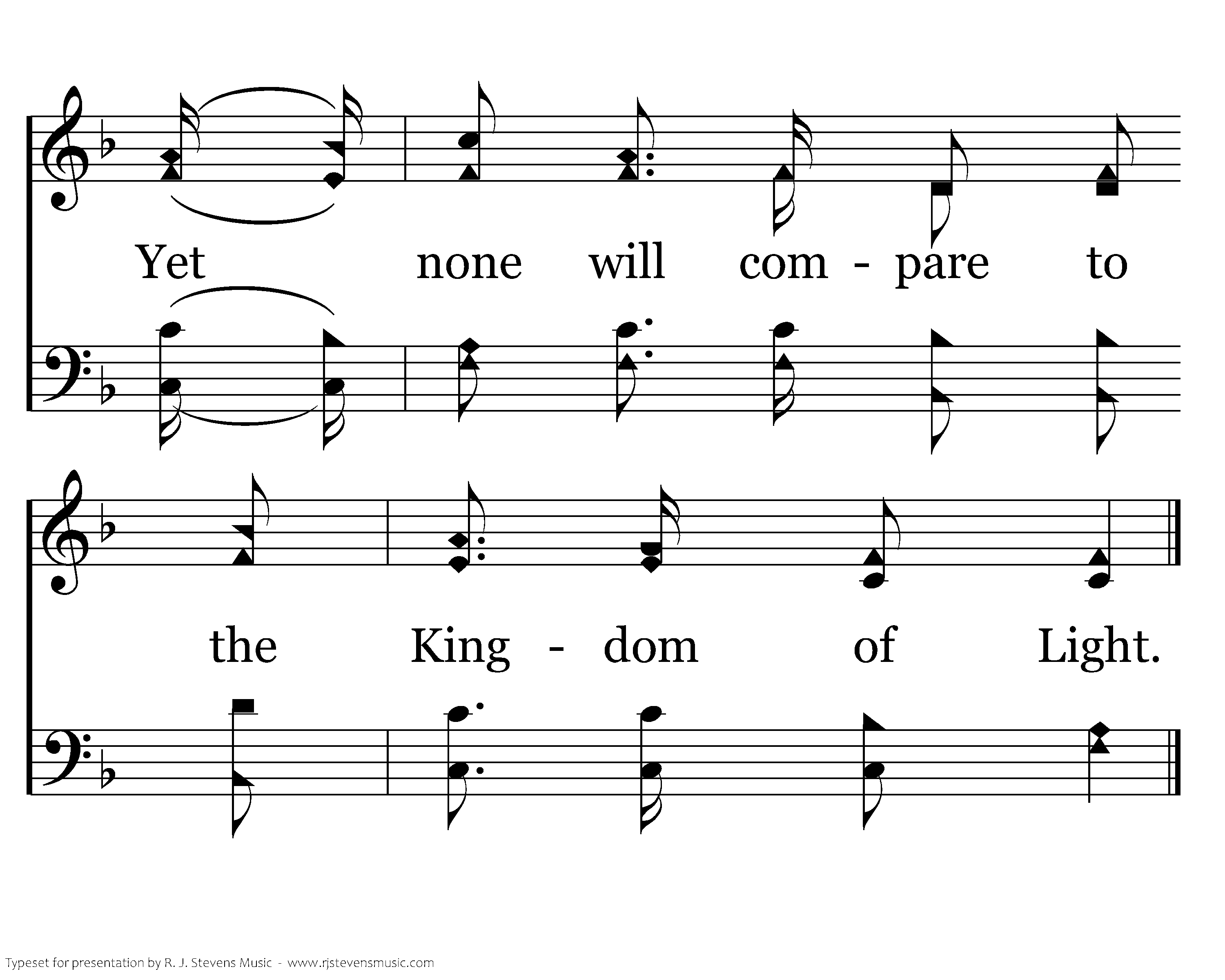 The start of a new day, The end of the night, Yet none will compare to the Kingdom of Light.