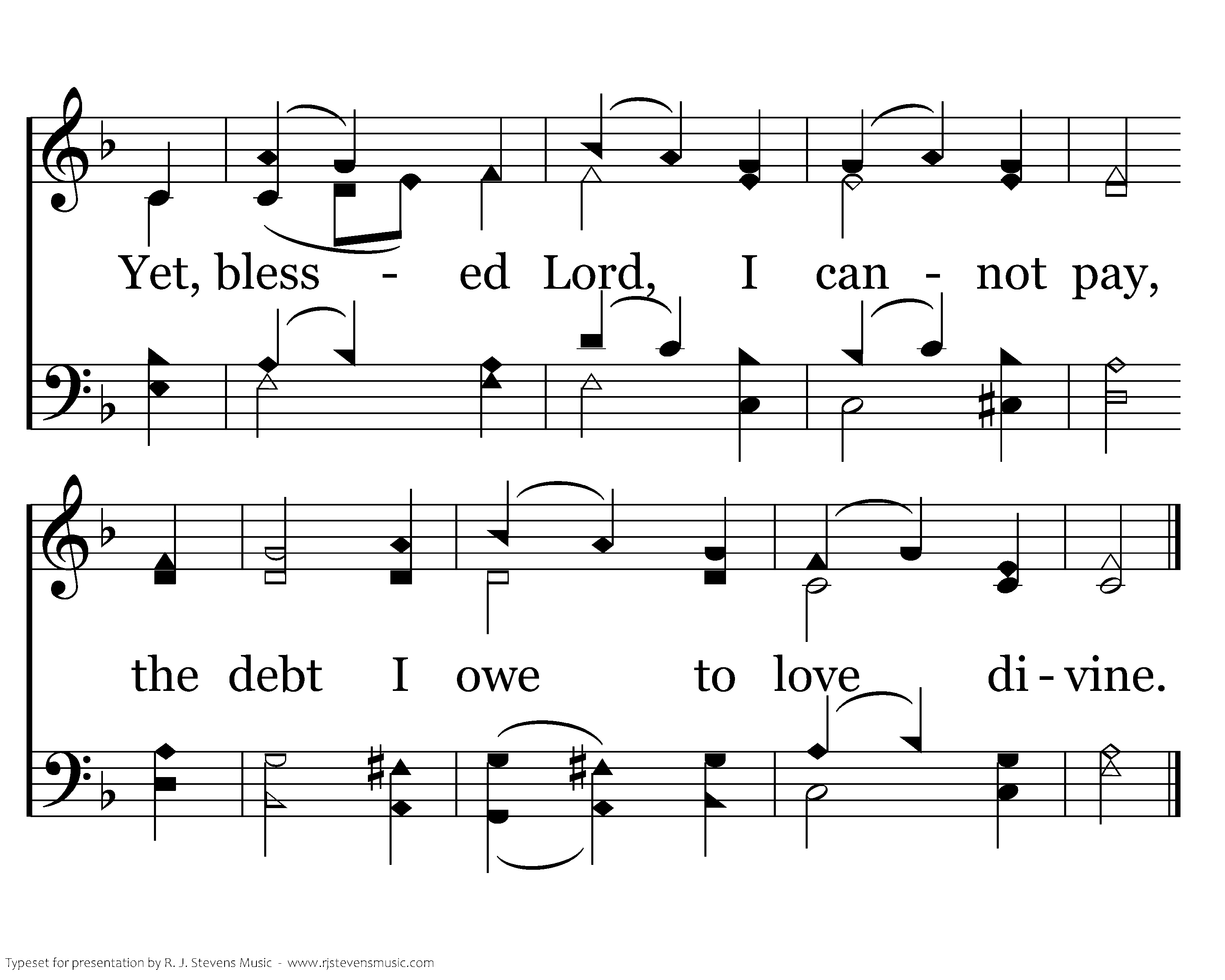 Lord, I would now Thy voice obey; Body and spirit, both are Thine: Yet, blessed Lord, I cannot pay, the debt I owe to love divine.