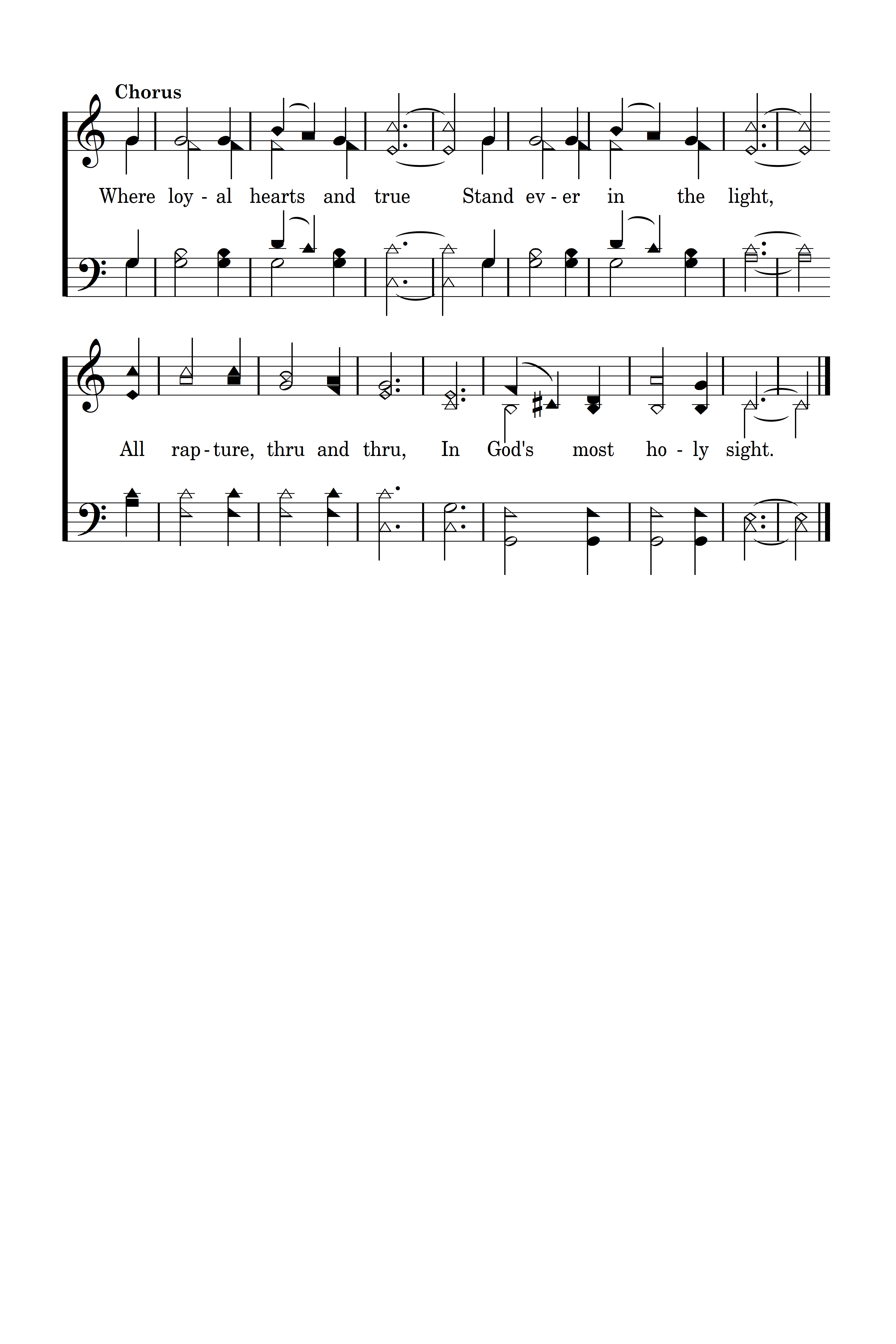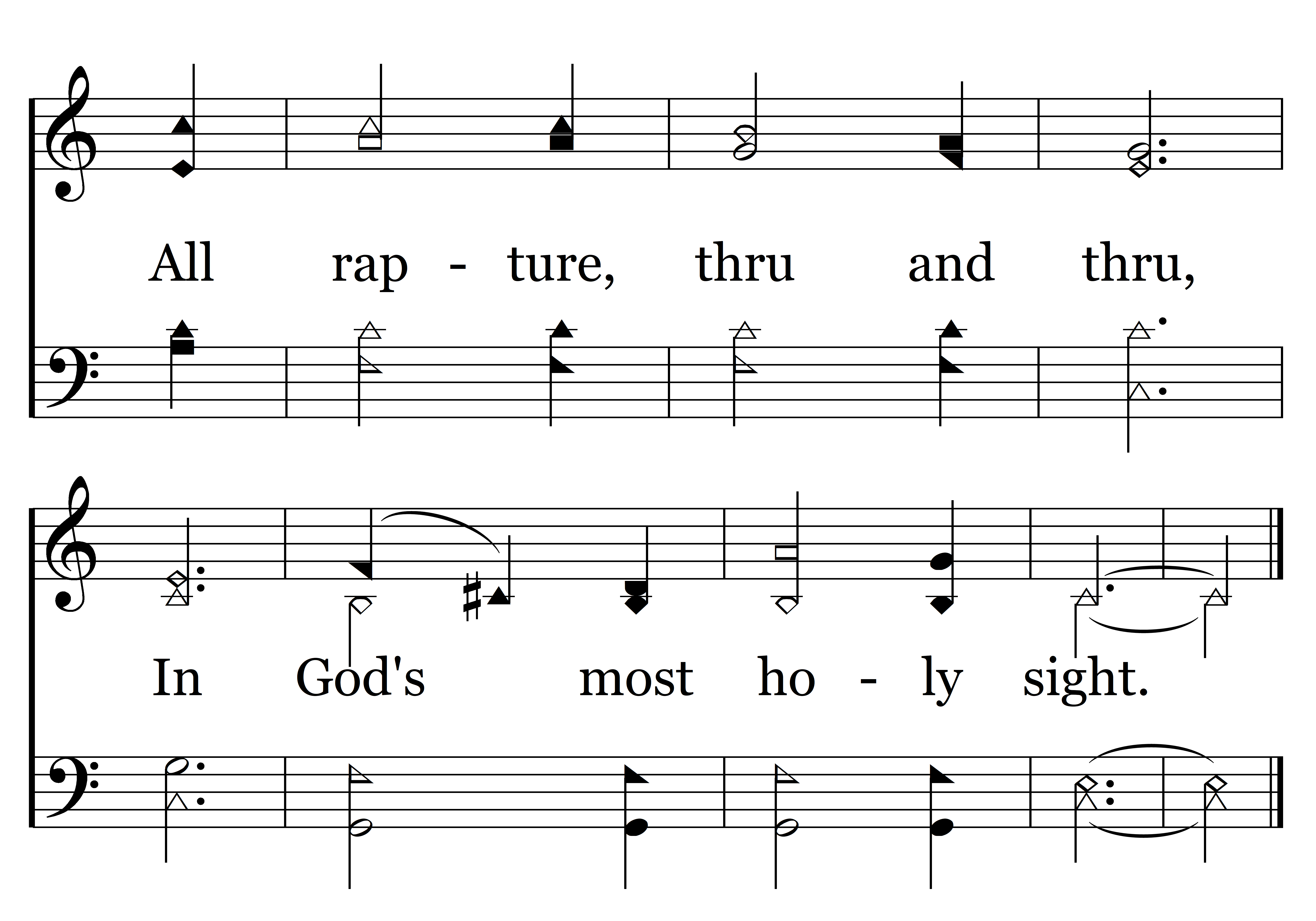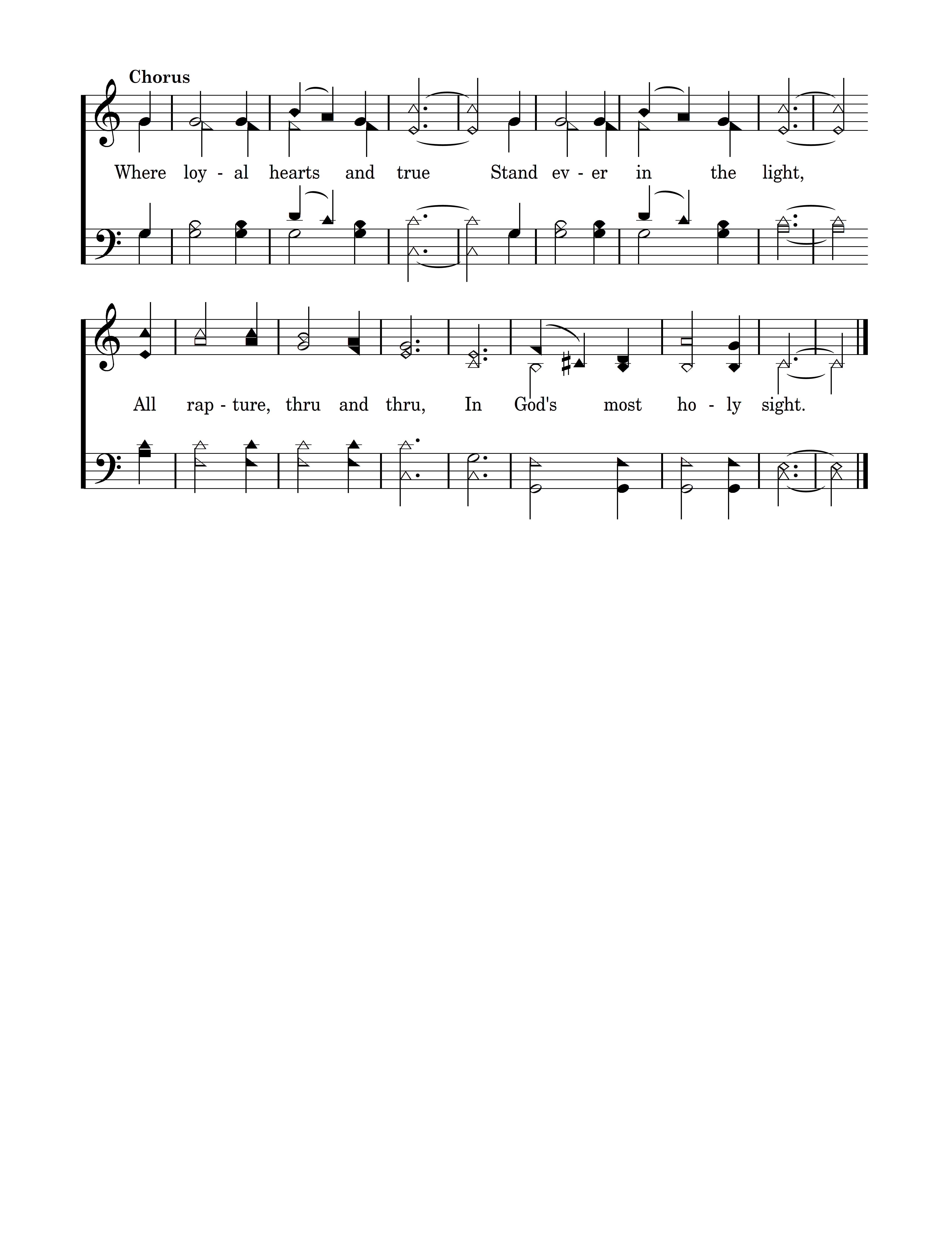 Where loyal hearts and true Stand ever in the light, All rapture, through and through, In God's most holy sight.