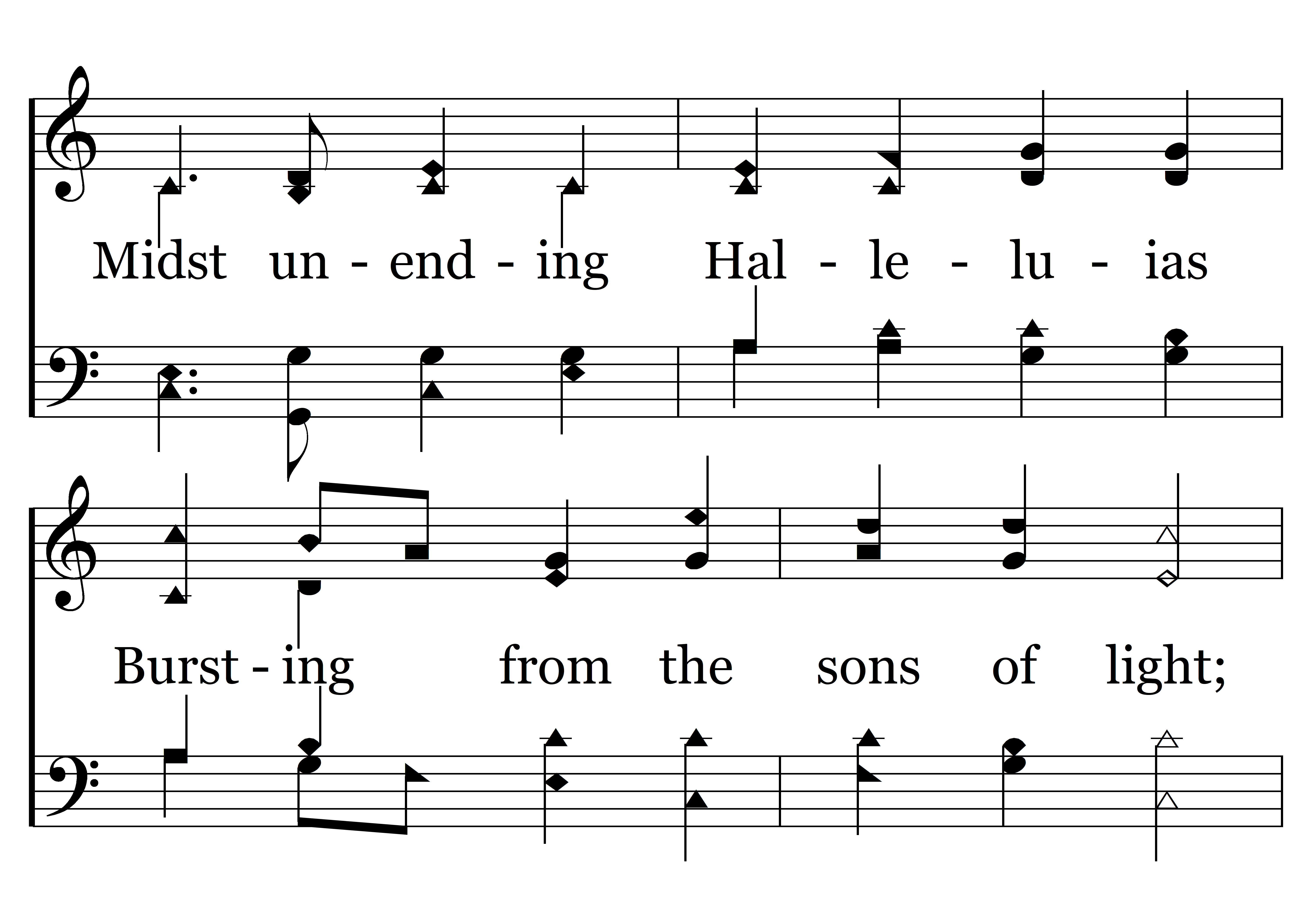 Bursting from the sons of light; Zion's people tell His praises, Victor after hard-won fight.