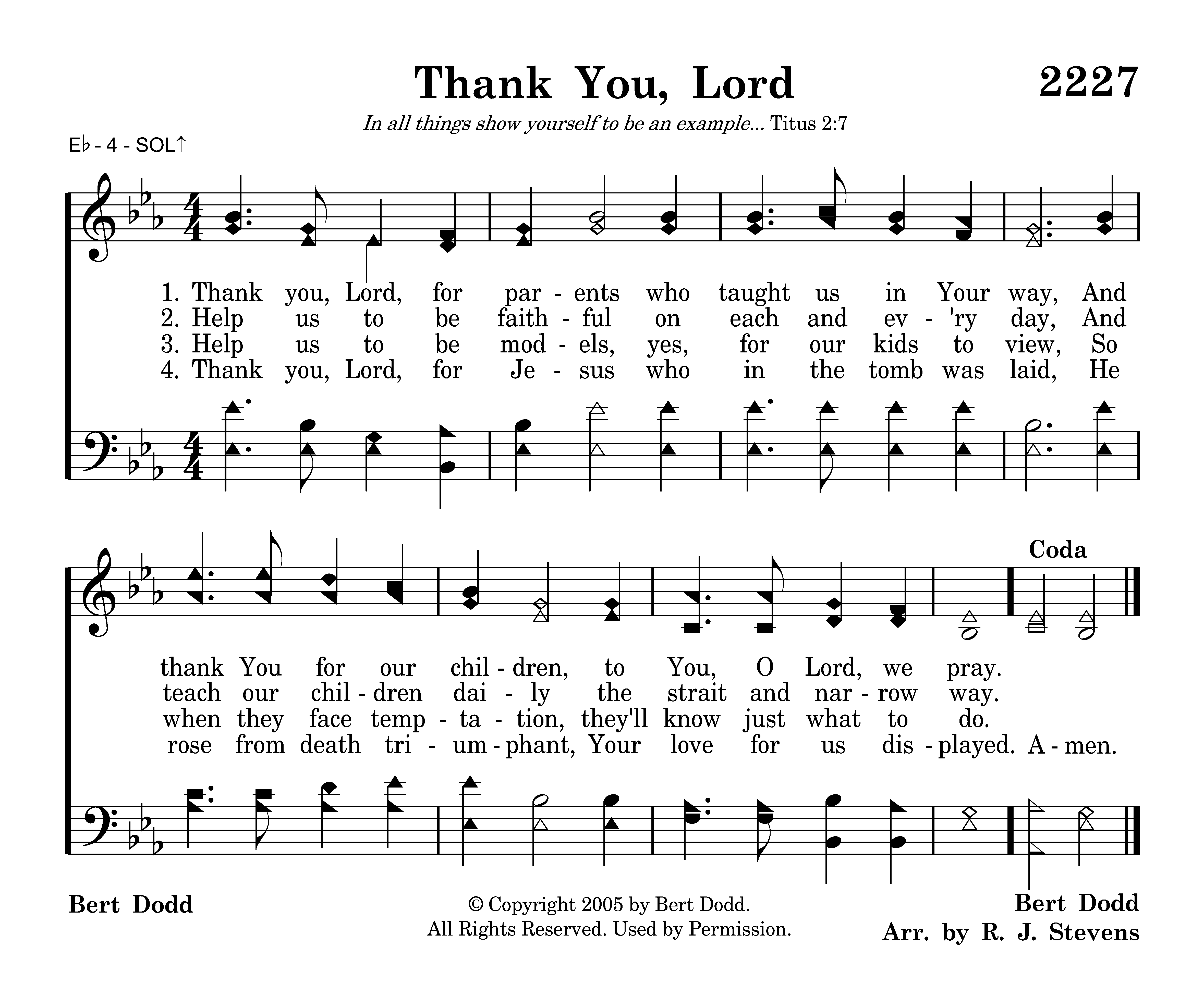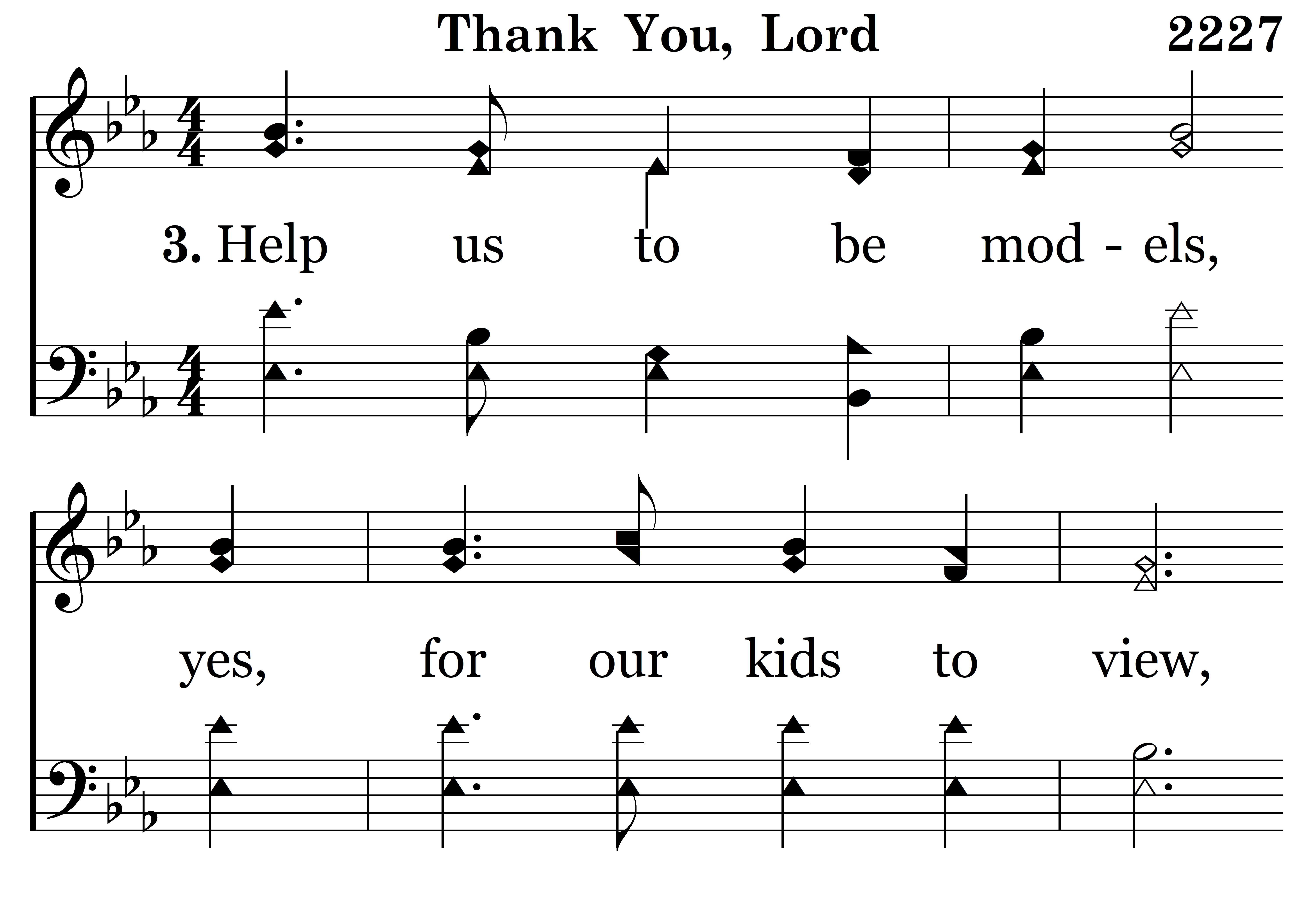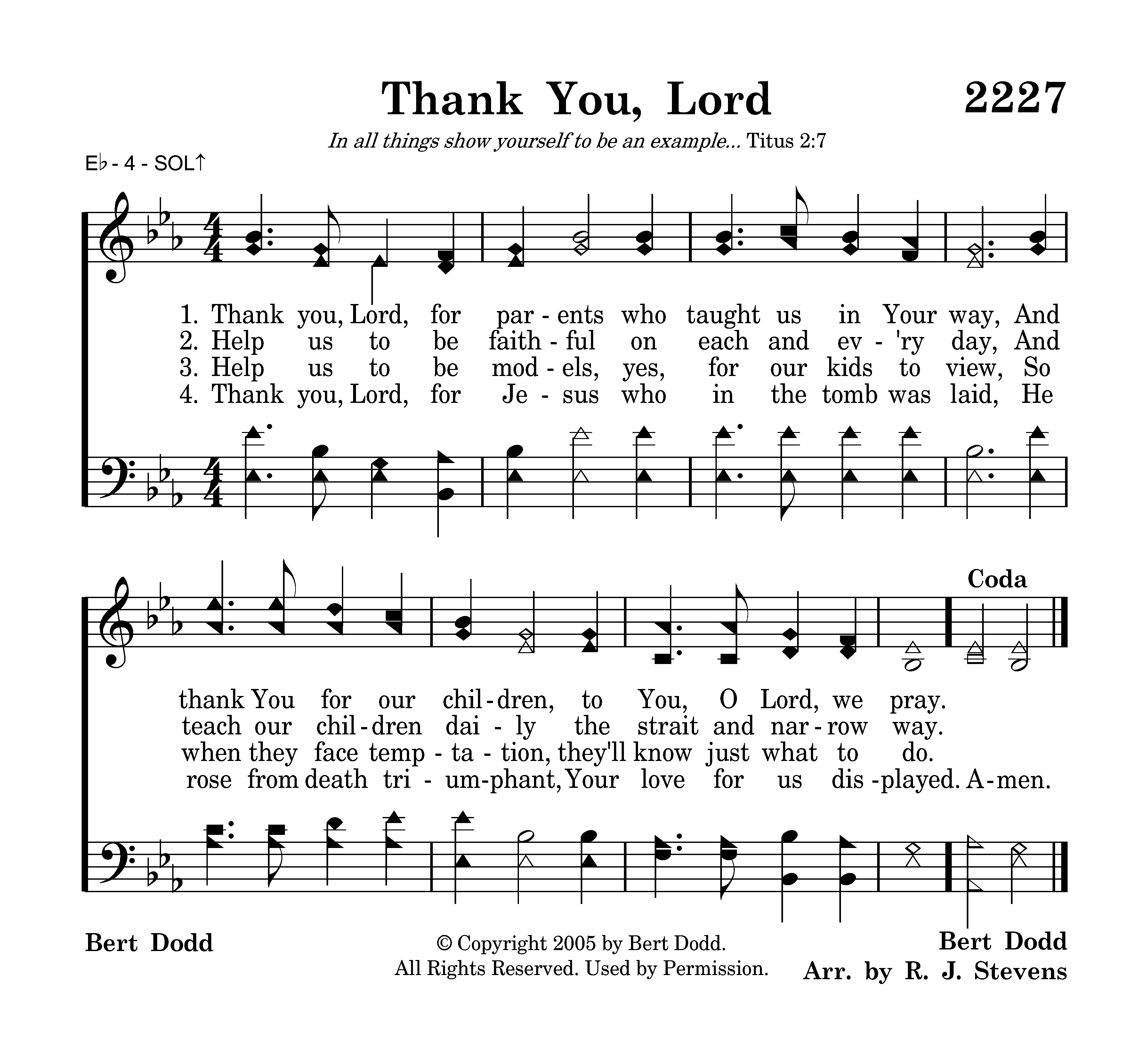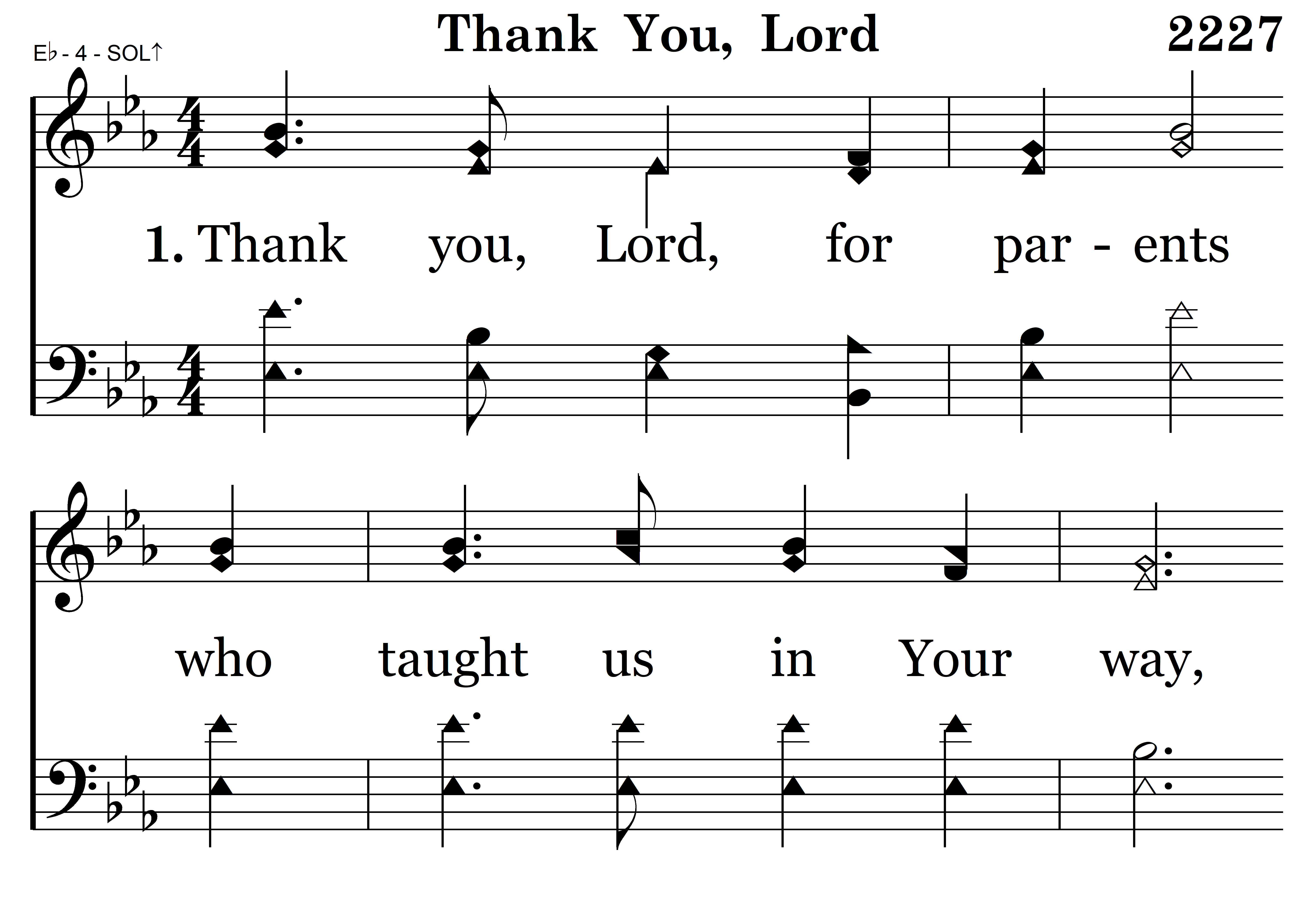 Thank you, Lord for par-ents who taught us in Your way, And thank You for our children, to You, O Lord, we pray.