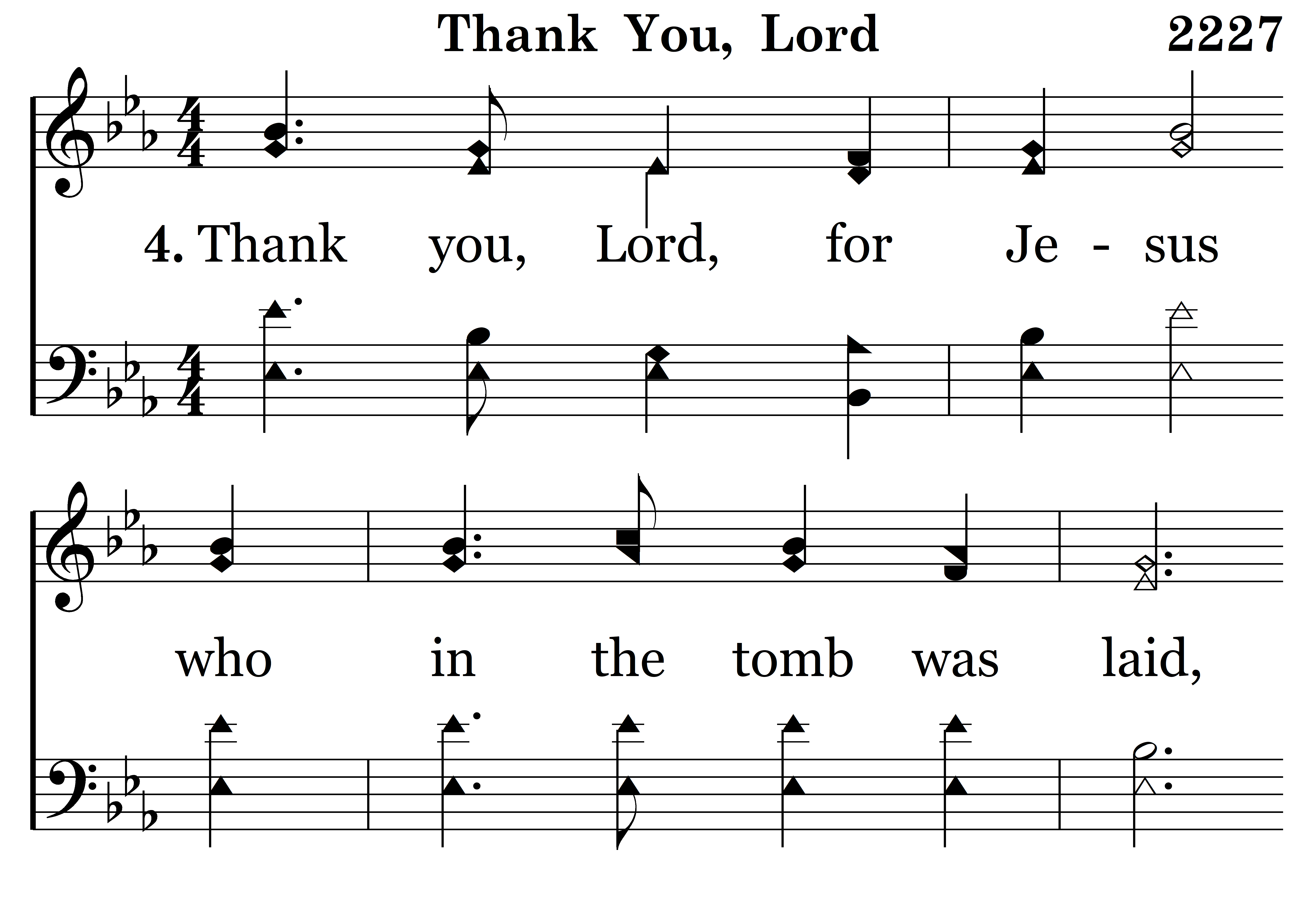 Thank you, Lord, for Jesus who in the tomb was laid, He rose from death triumphant, Your love for us displayed.