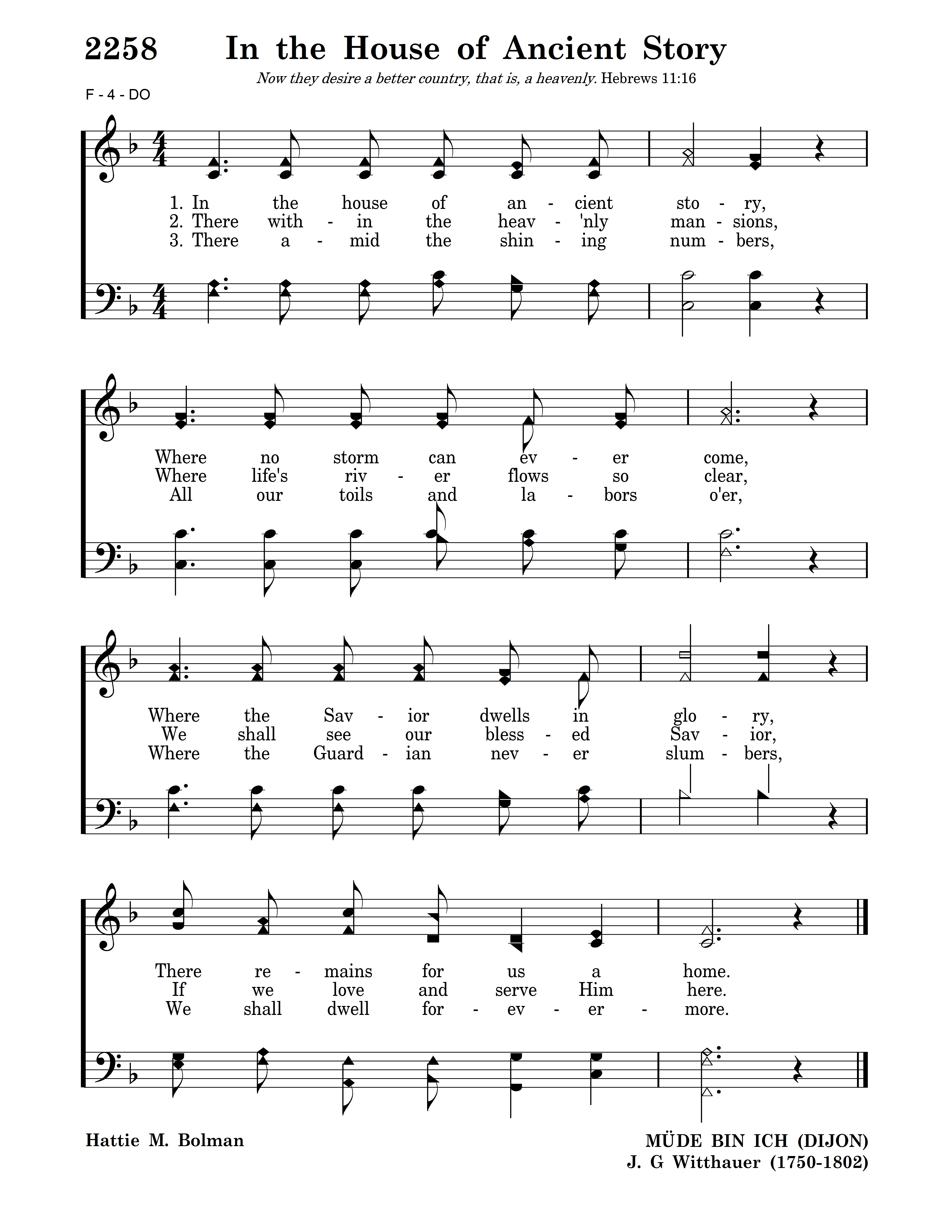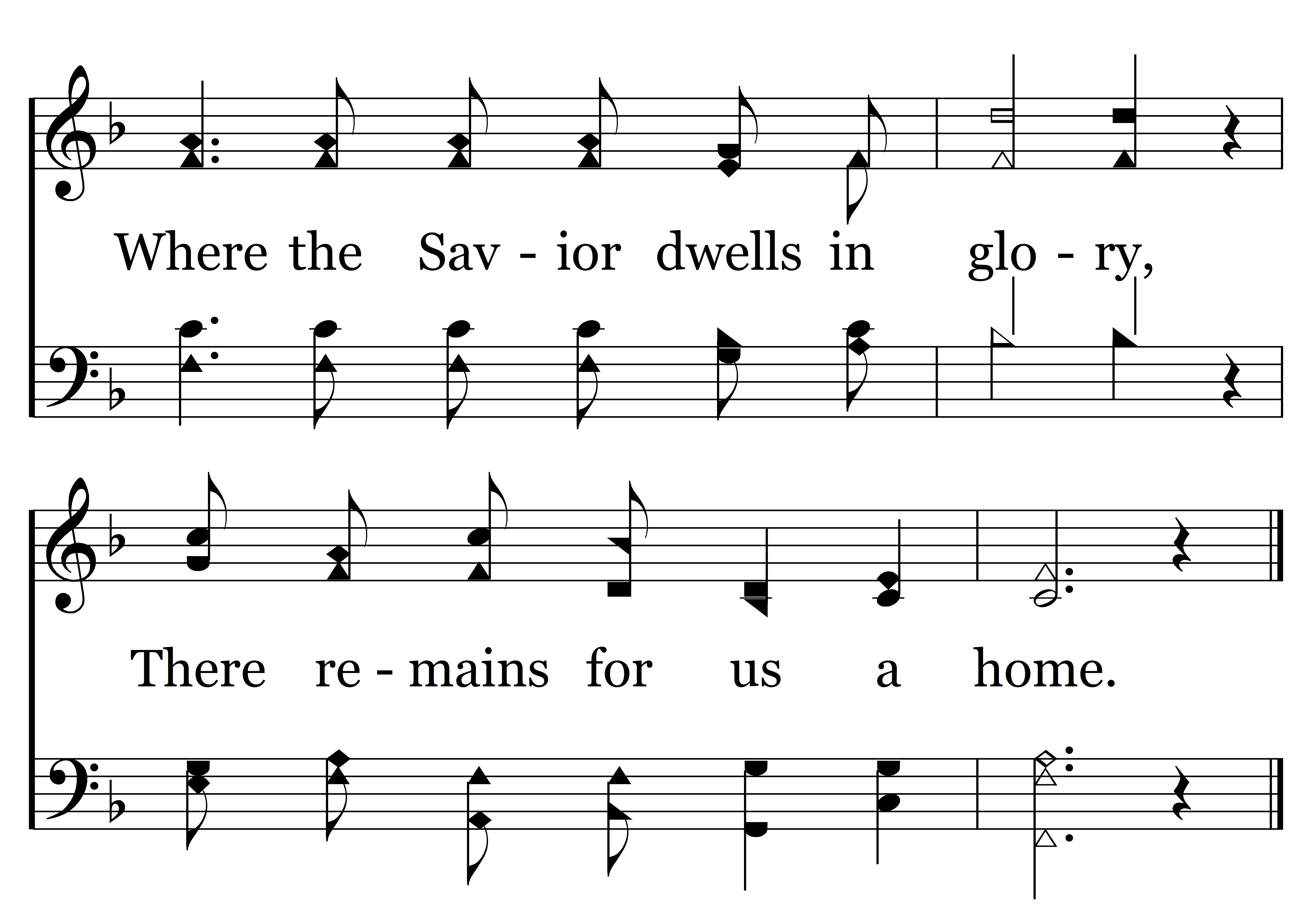 In the house of ancient story, Where no storm can ever come, Where the Savior dwells in glory, There remains for us a home.