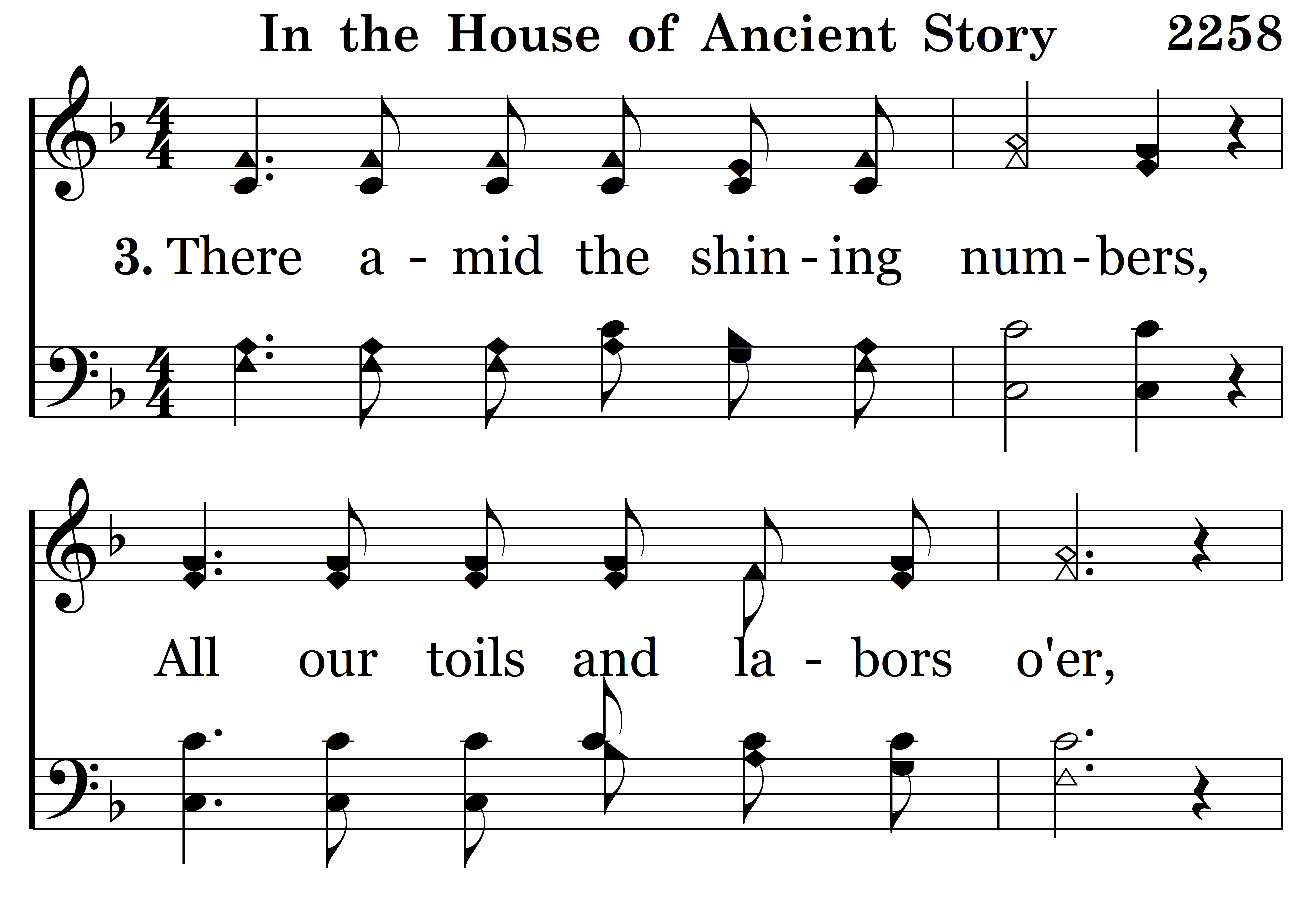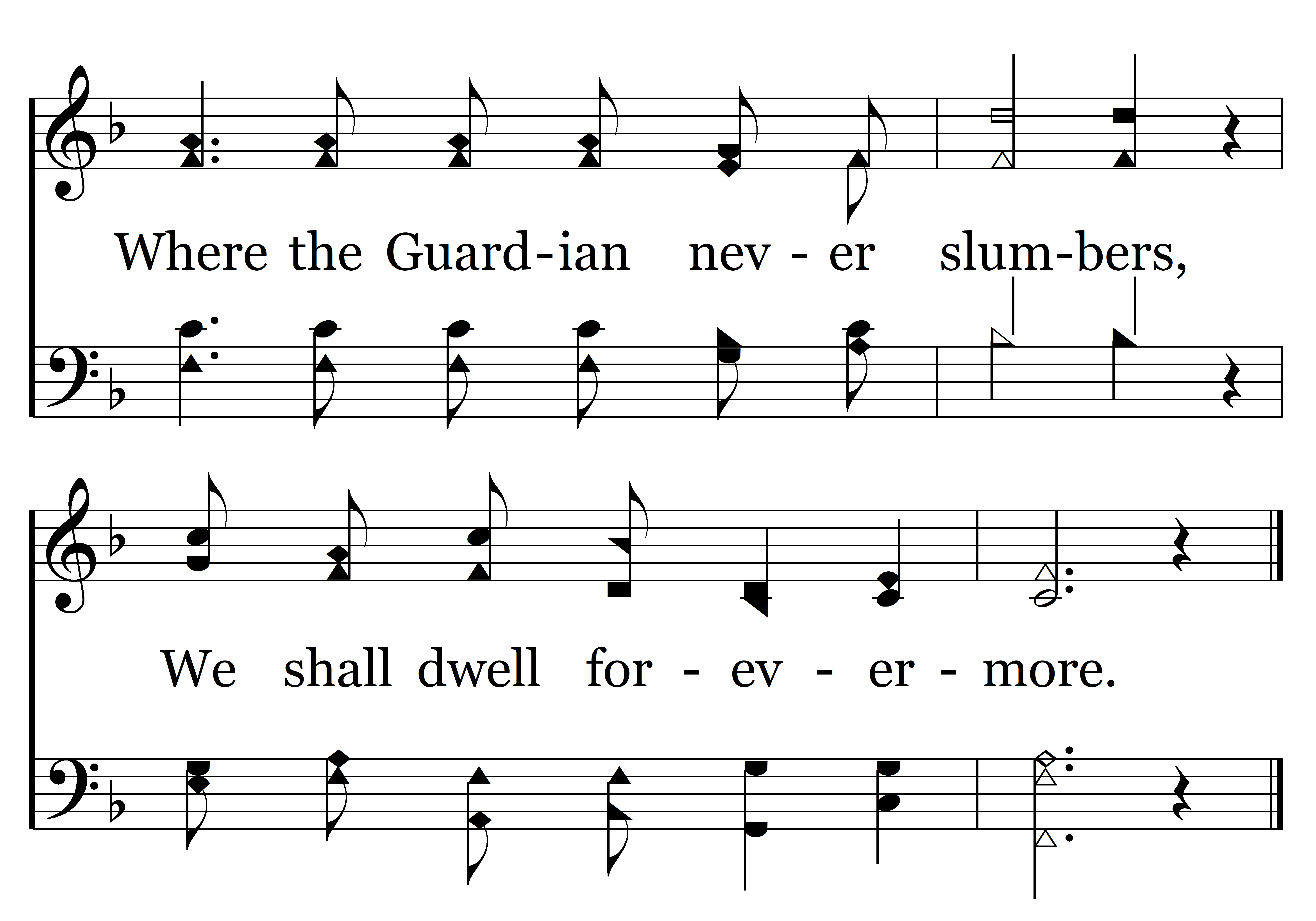 There amid the shining numbers, All our toils and labors o'er, Where the Guardian never slumbers, We shall dwell forevermore.