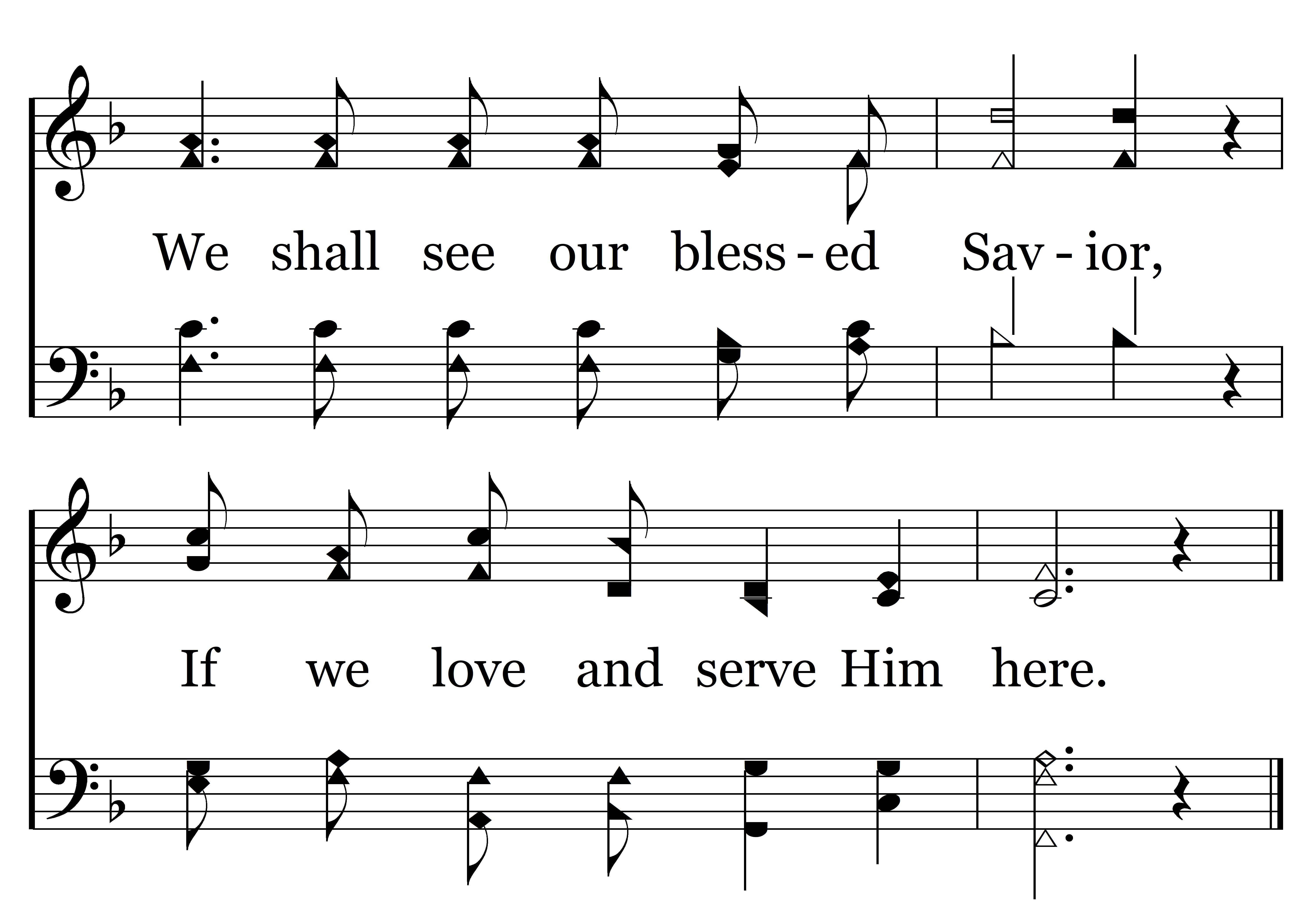 There within the heav'nly mansions, Where life's river flows so clear, We shall see our blessed Savior, If we love and serve Him here.