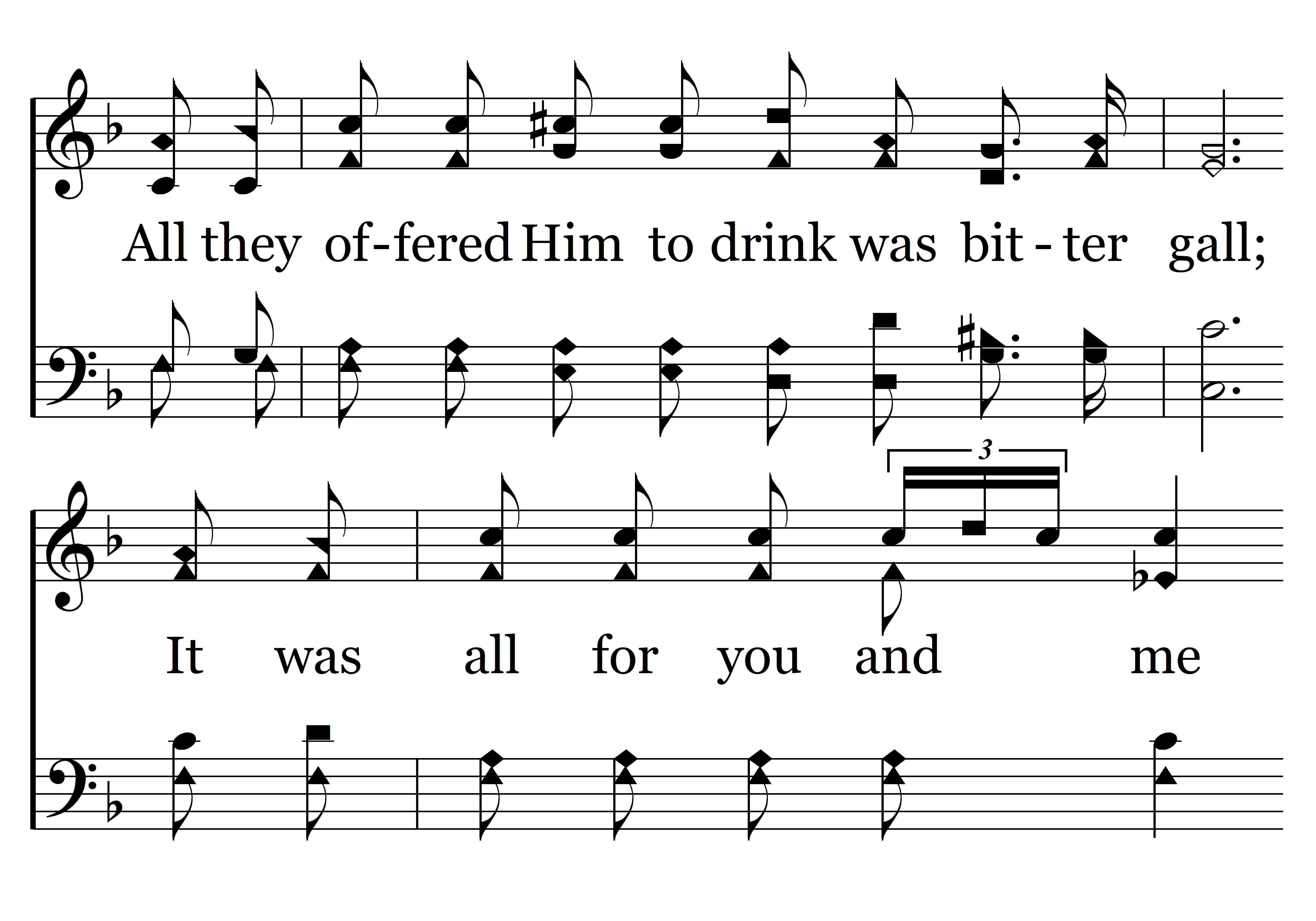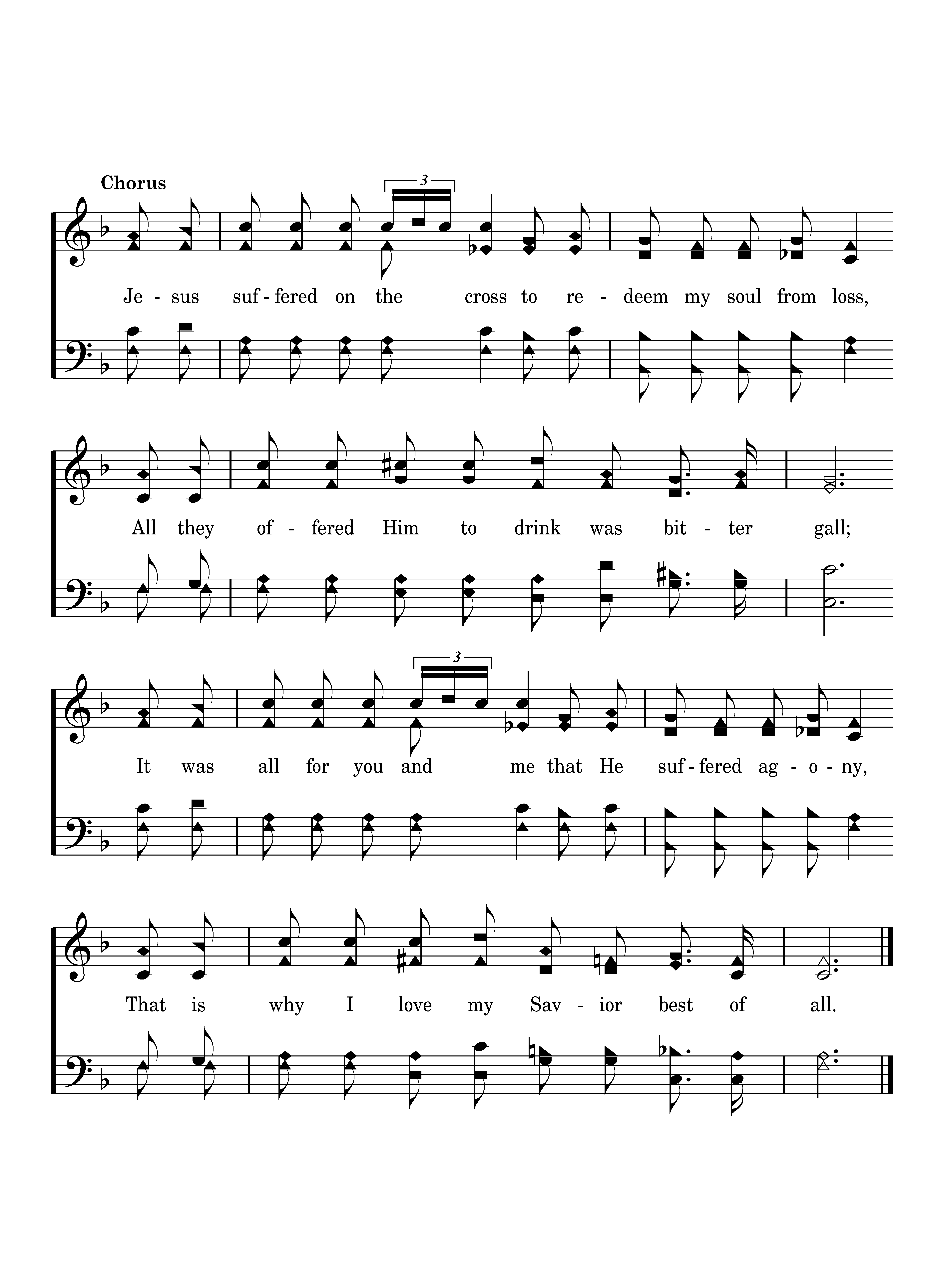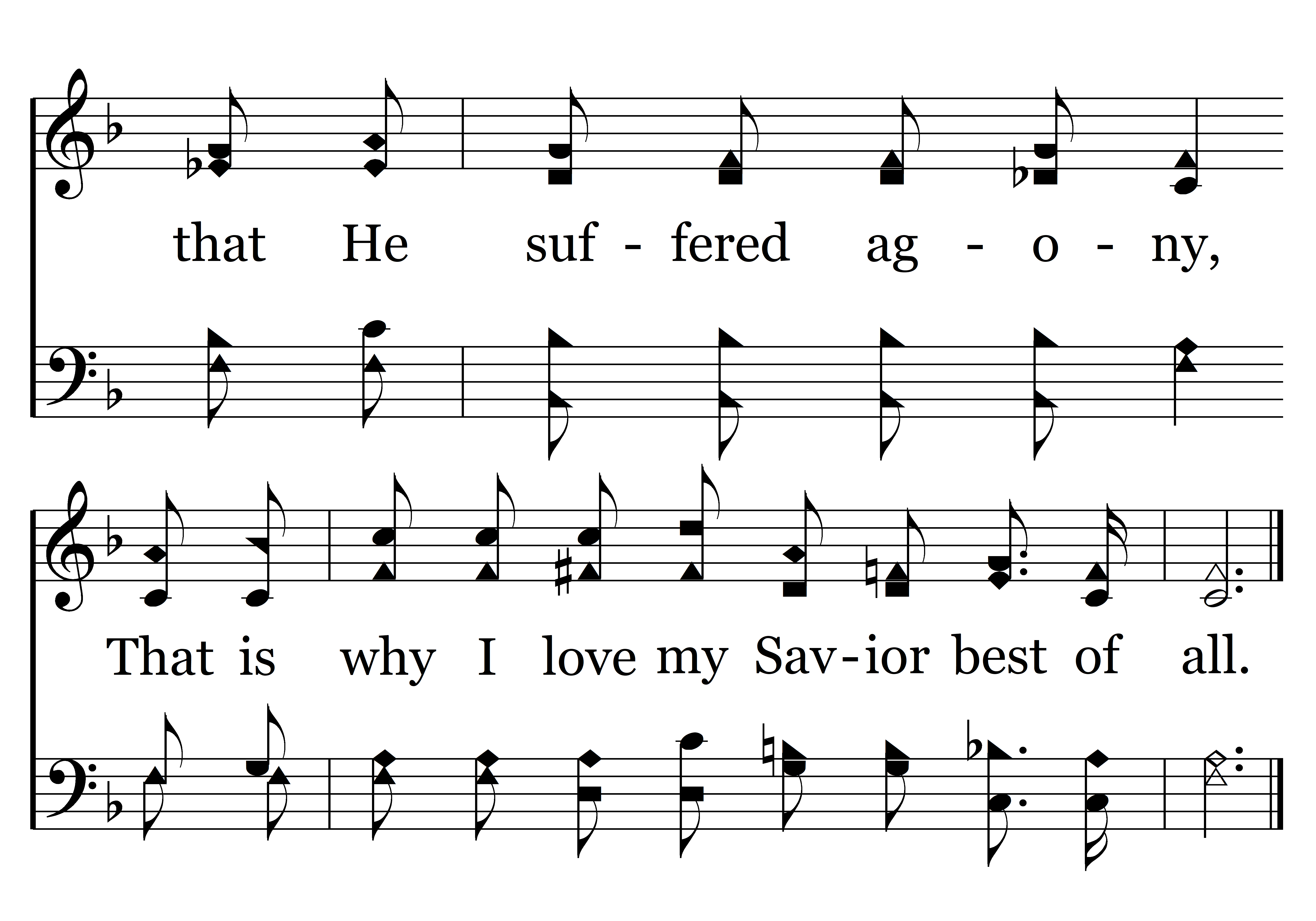 Jesus suffered on the cross to redeem my soul from loss, All they offered Him to drink was bitter gall; It was all for you and me that He suffered agony, That is why I love my Savior best of all.