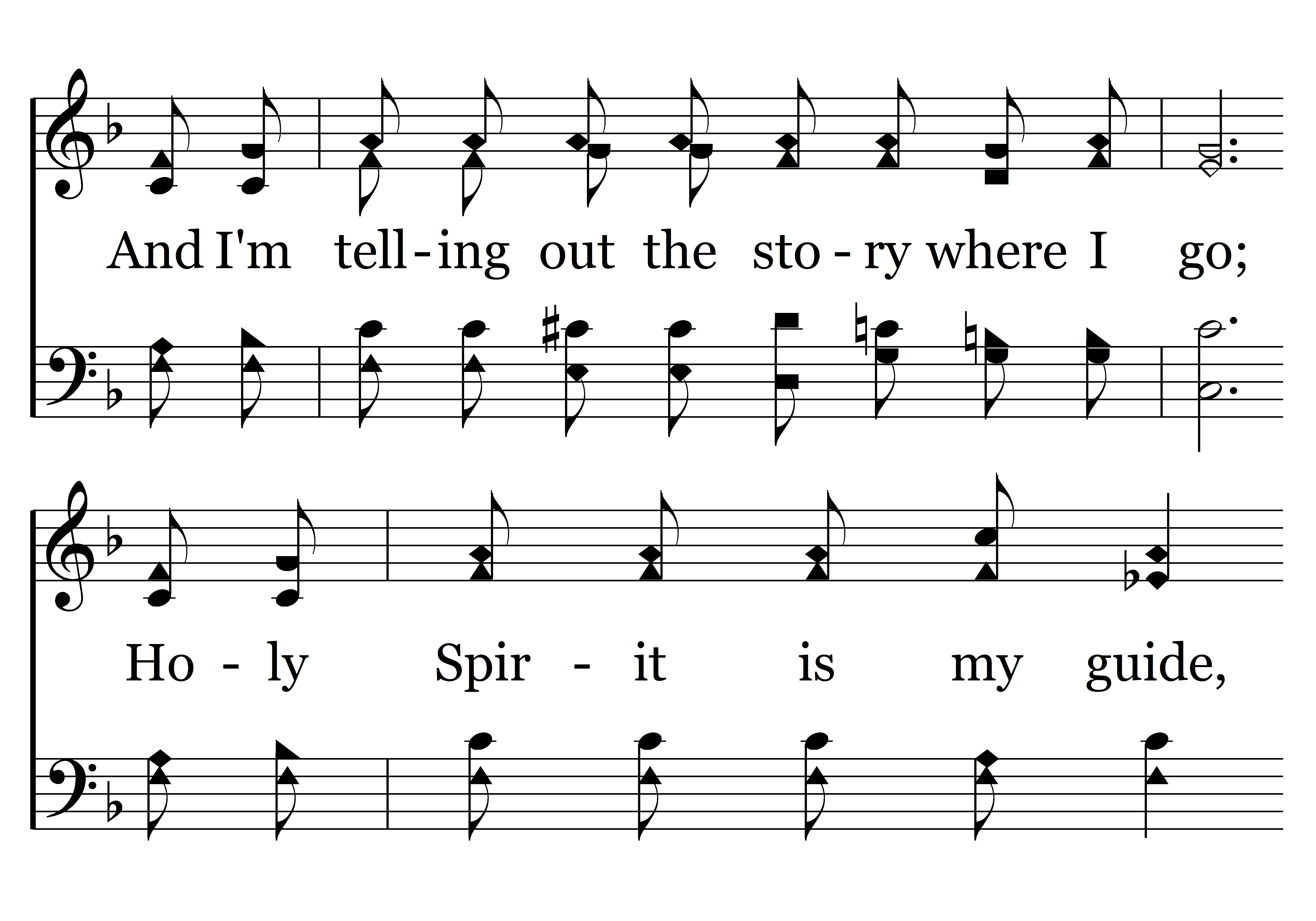 I am happy in His love, on my way to heav'n above, And I'm telling out the story where I go; Holy Spirit is my guide, ever with me to abide, And the blood of Jesus cleanses white as snow.