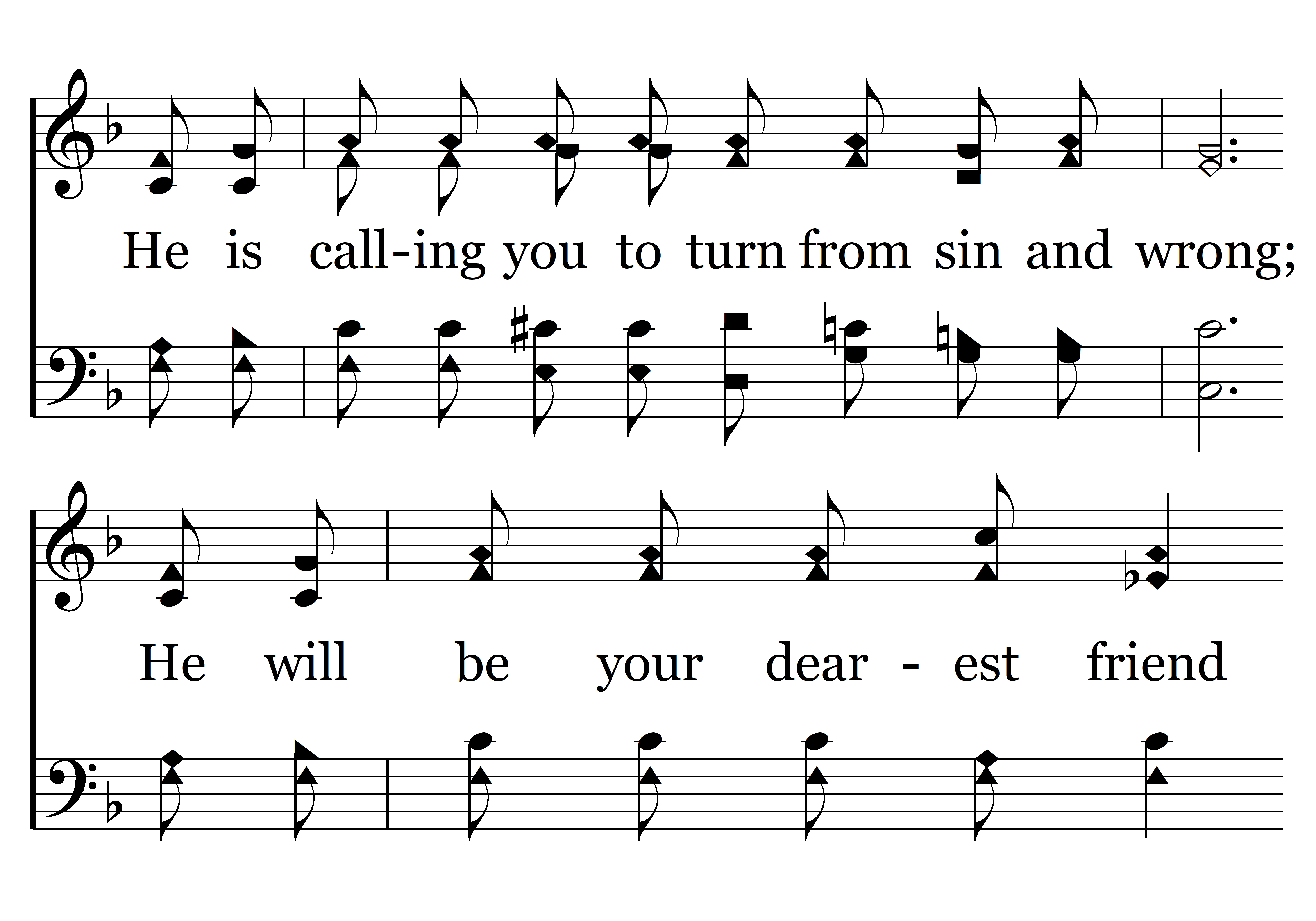 Sinner, listen to the call of the One who gave His all, He is calling you to turn from sin and wrong; He will be your dearest friend and go with you to the end, You will then begin to sing the vict'ry song.
