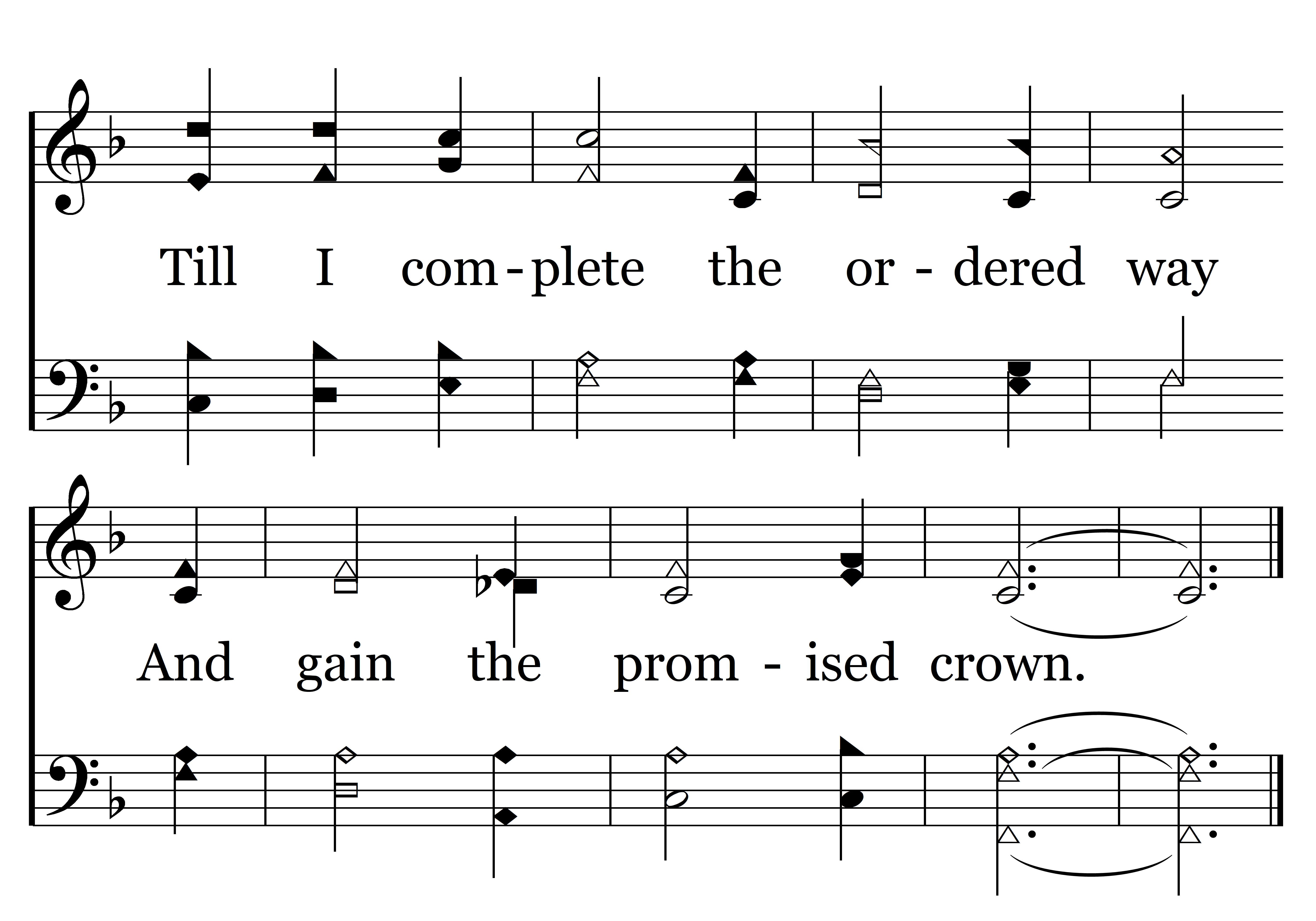 So, let me live, and day by day In righteousness abound, Till I complete the ordered way And gain the promised crown.