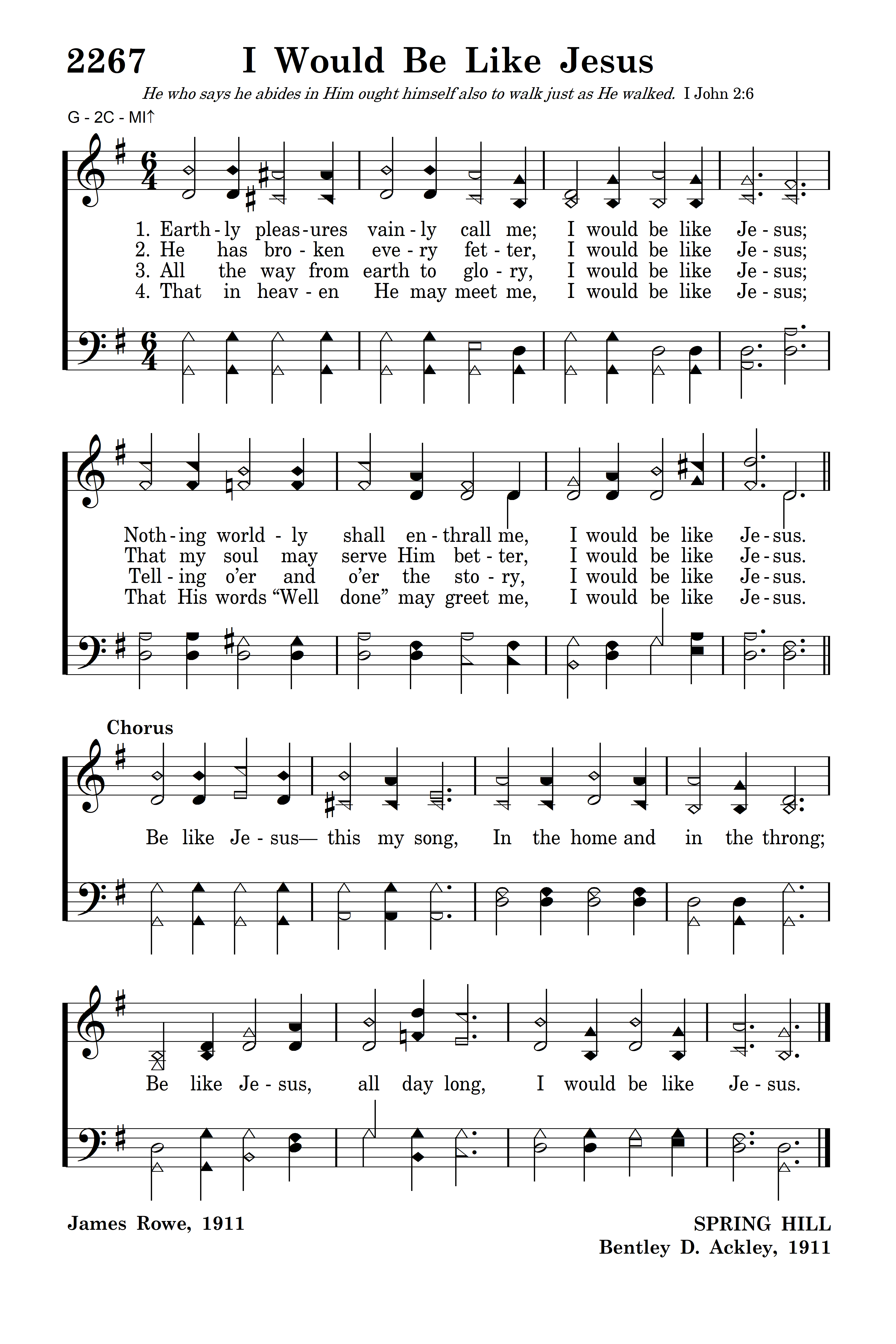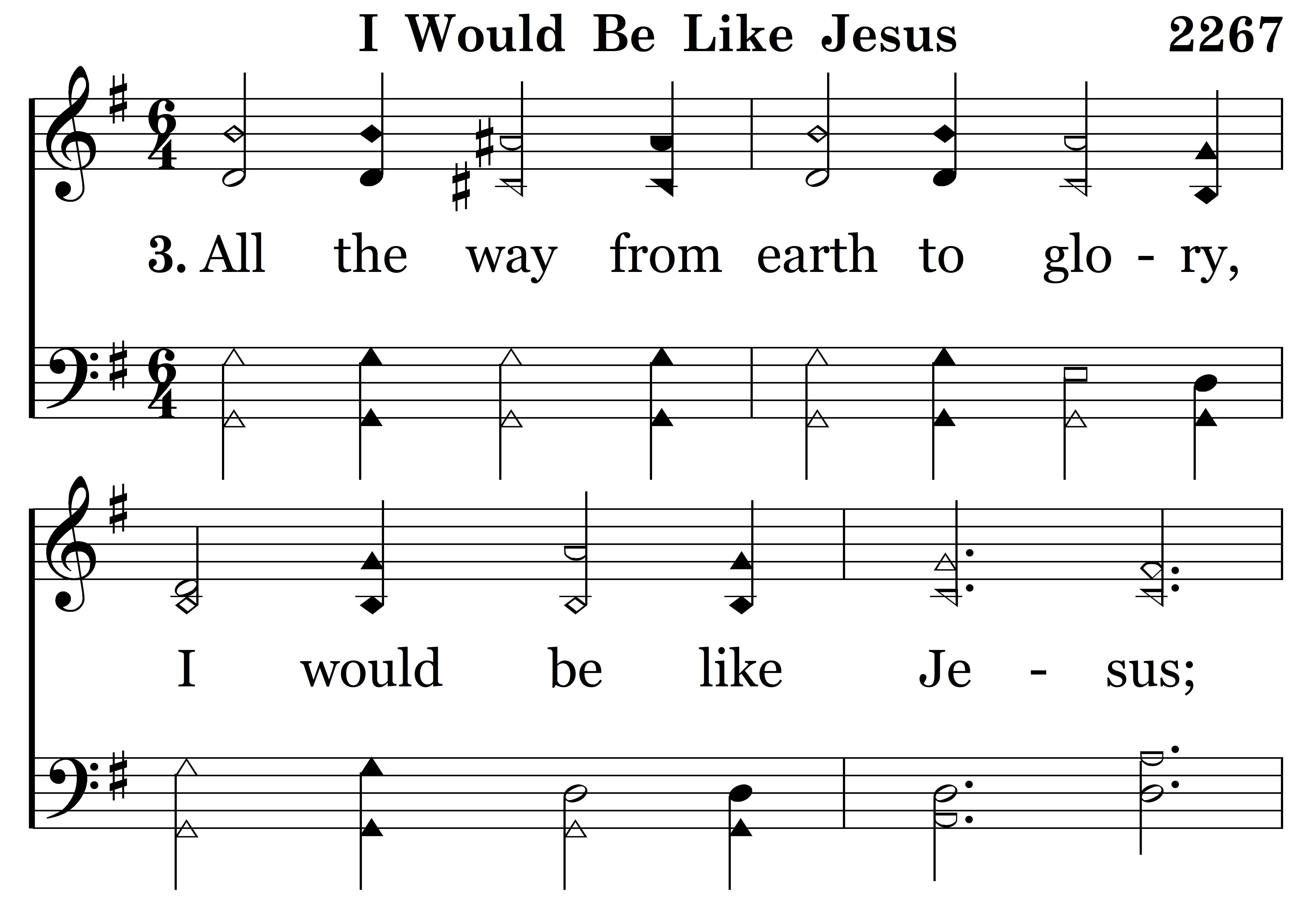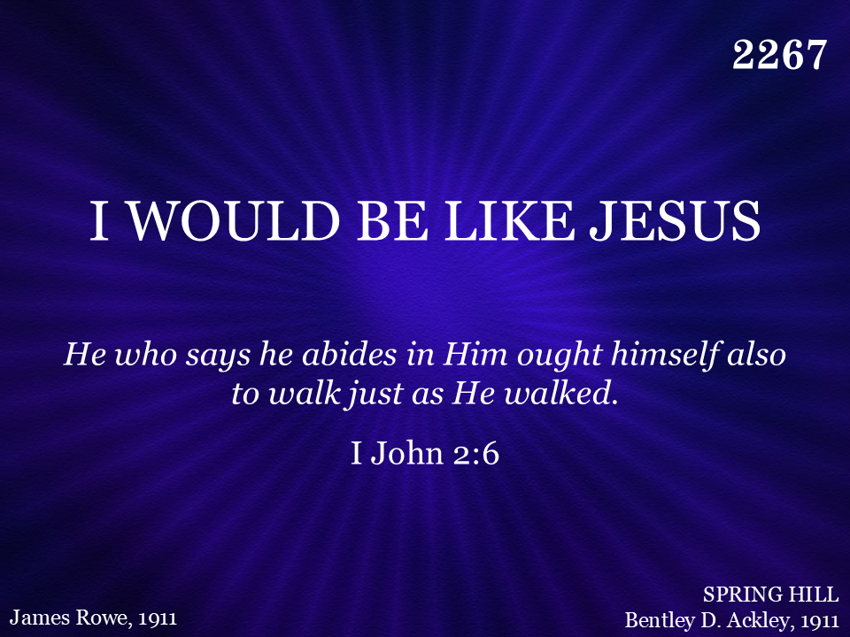 All the way from earth to glory, I would be like Jesus; Telling o’er and o’er the story, I would be like Jesus.
