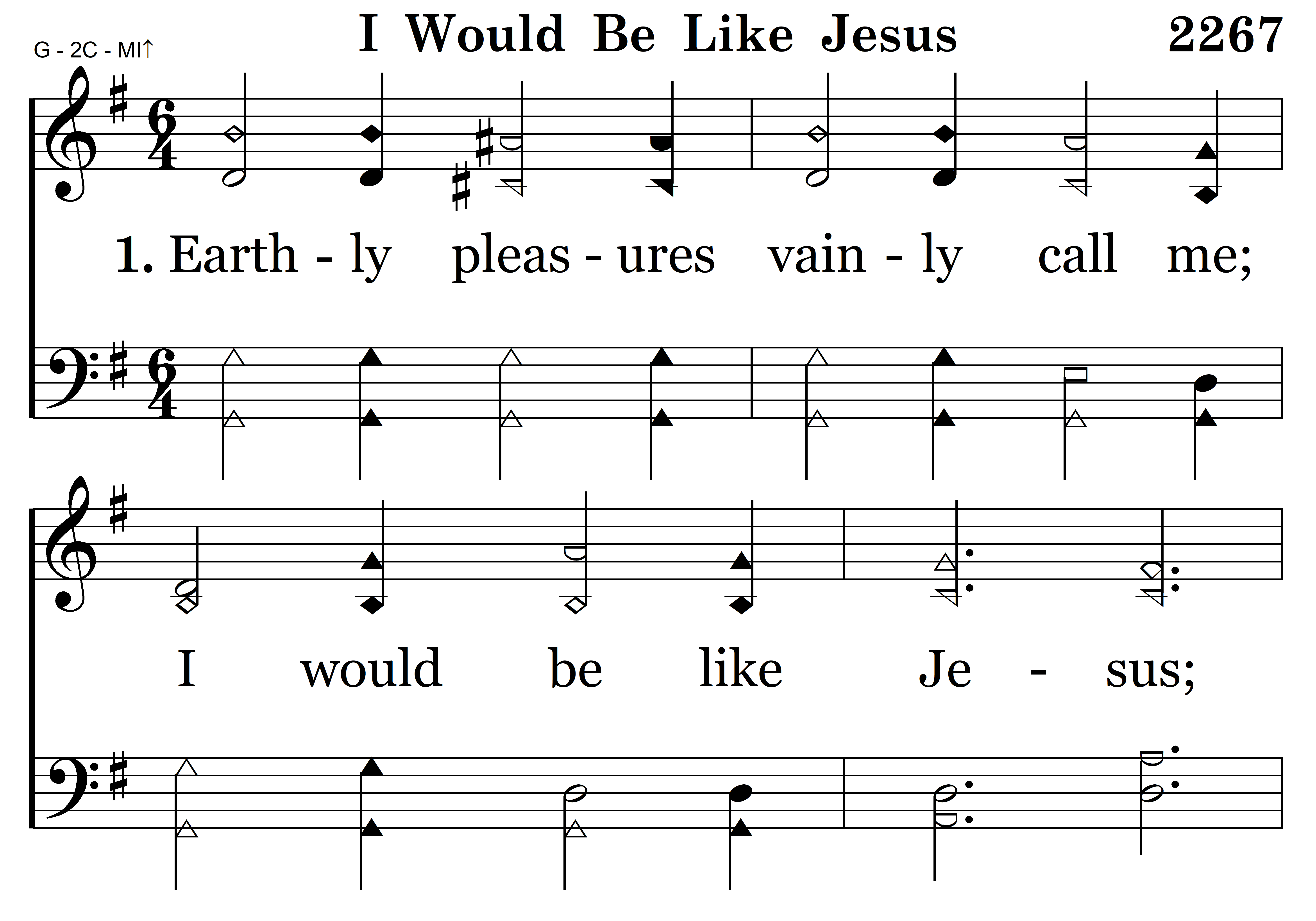 Earthly pleasures vainly call me; I would be like Jesus; Nothing worldly shall enthrall me, I would be like Jesus.