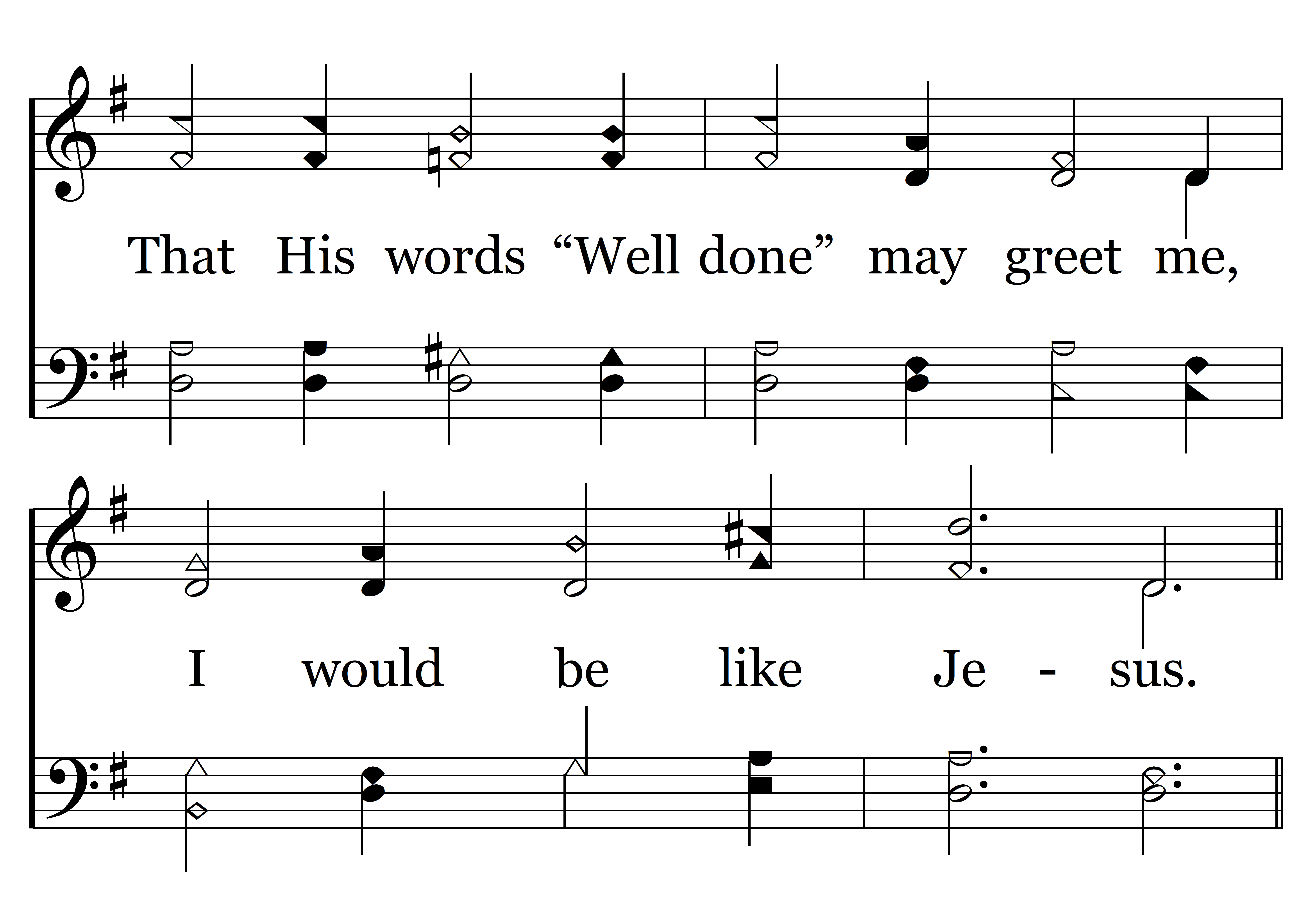 That in heaven He may meet me, I would be like Jesus; That His words “Well done” may greet me,