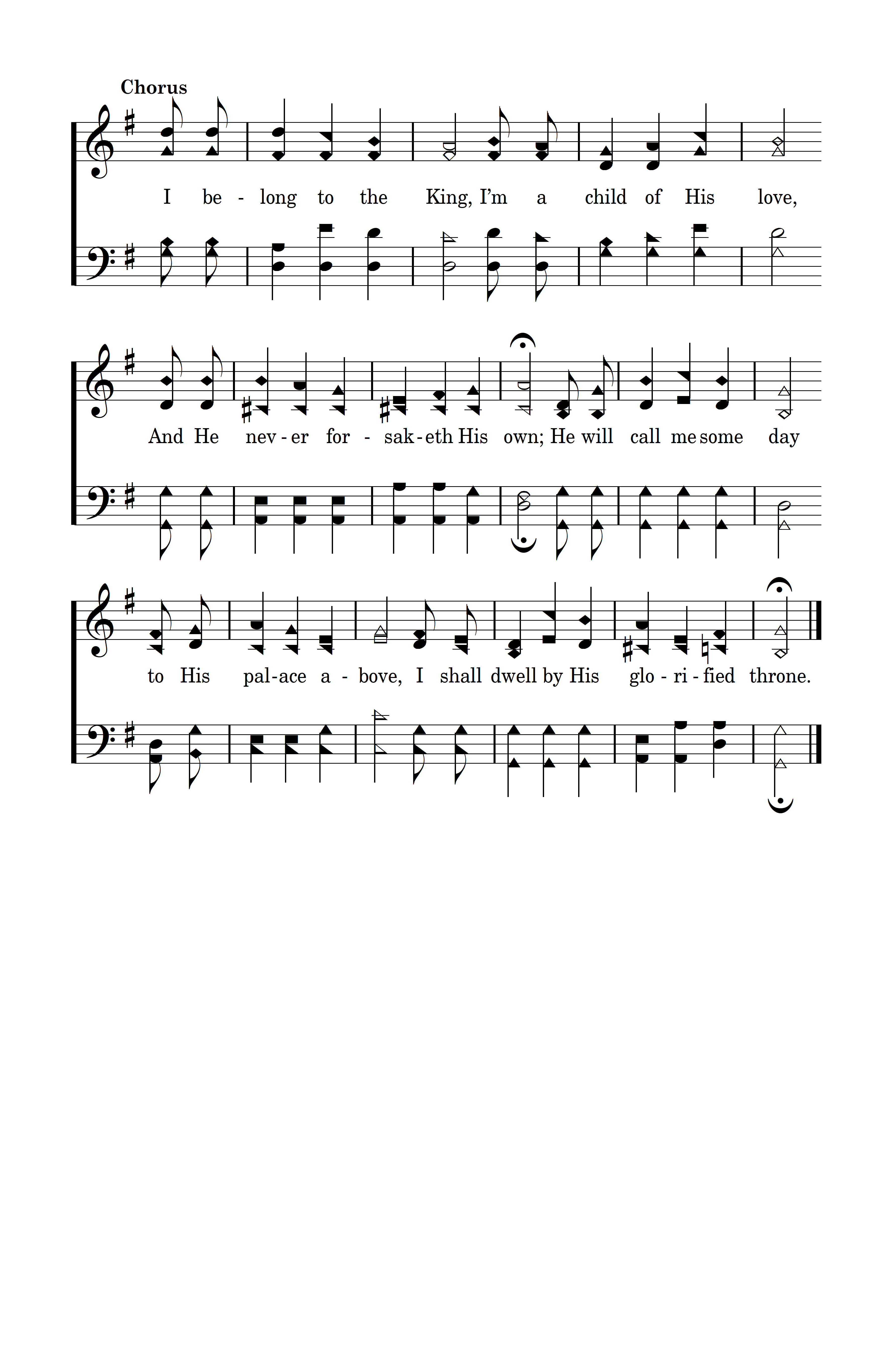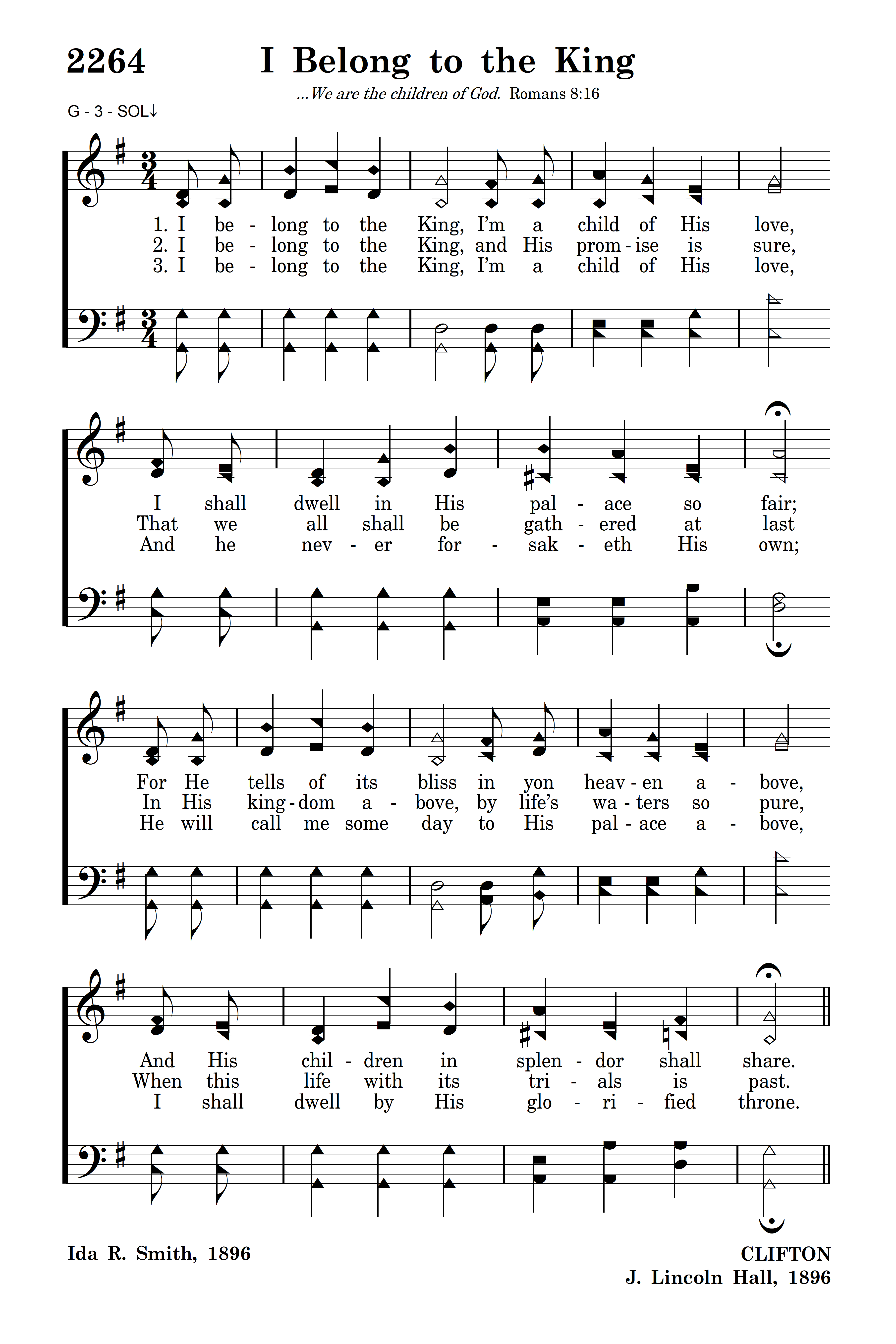 I belong to the King, I’m a child of His love, I shall dwell in His palace so fair; For He tells of its bliss in yon heaven above, And His children in splendor shall share.
