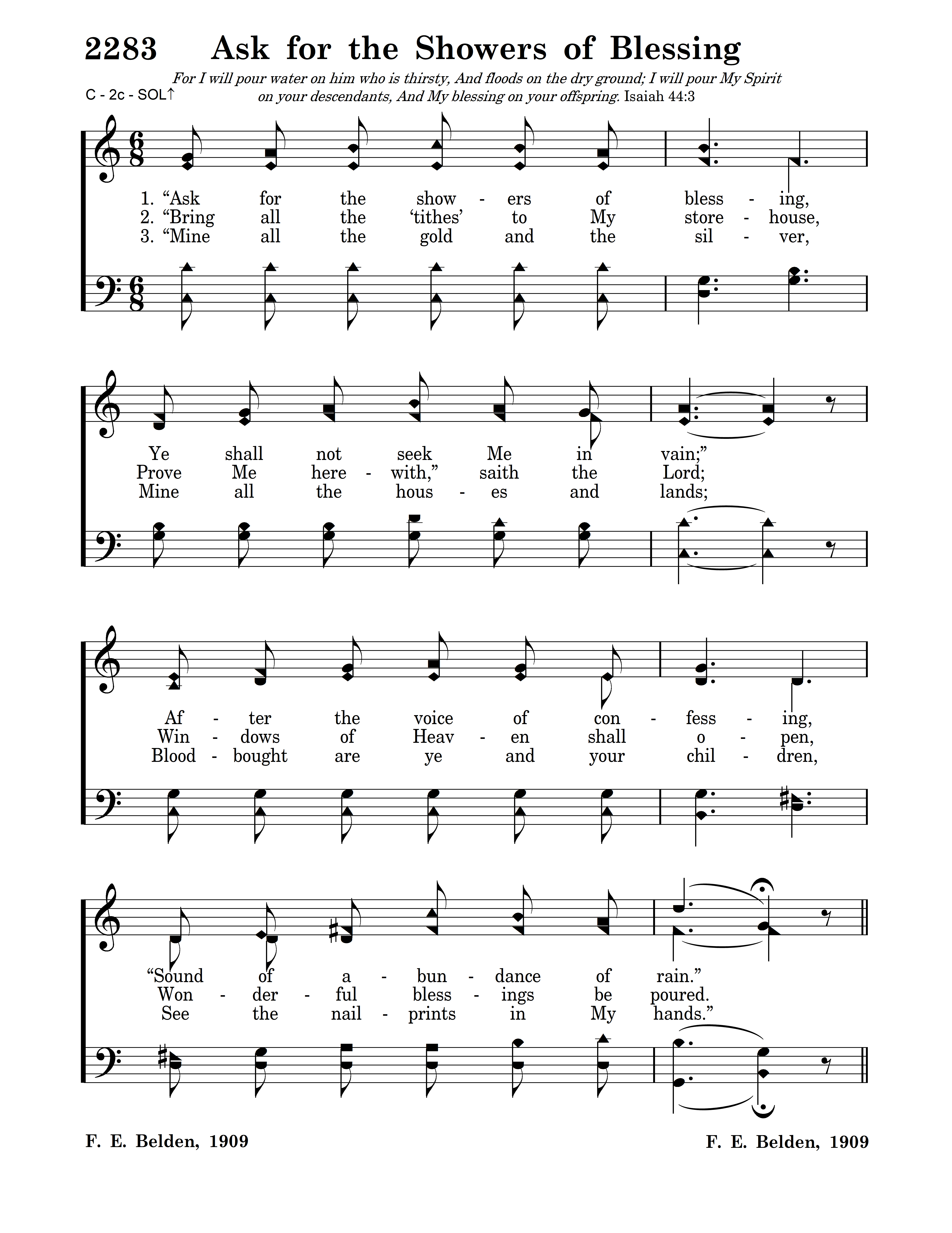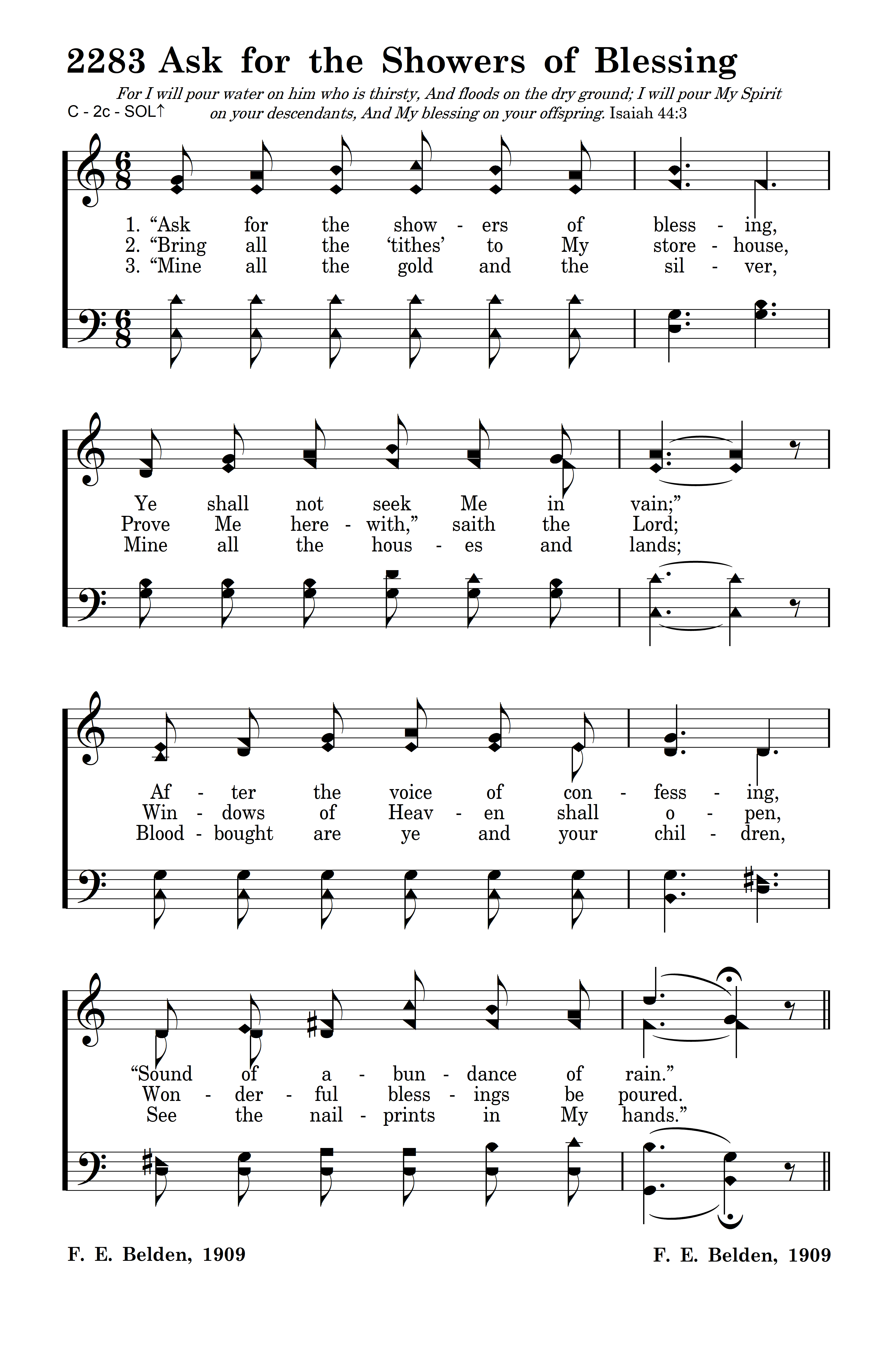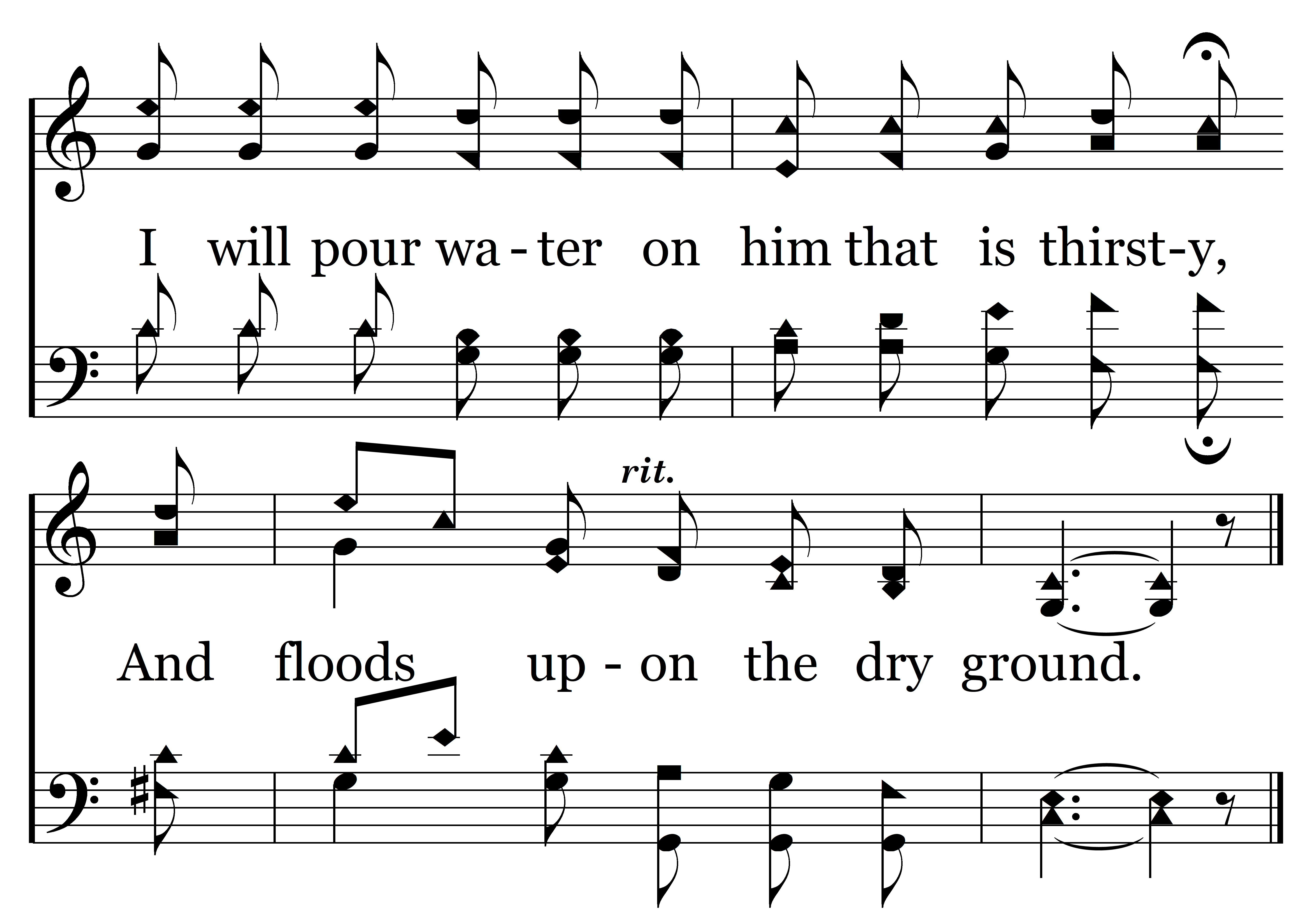 Ask for the rain, (Ask for the rain, life-giving rain,) ask not in vain; (Look for the show’r, wait for the pow’r;) “I will pour water on him that is thirsty, And floods upon the dry ground.”