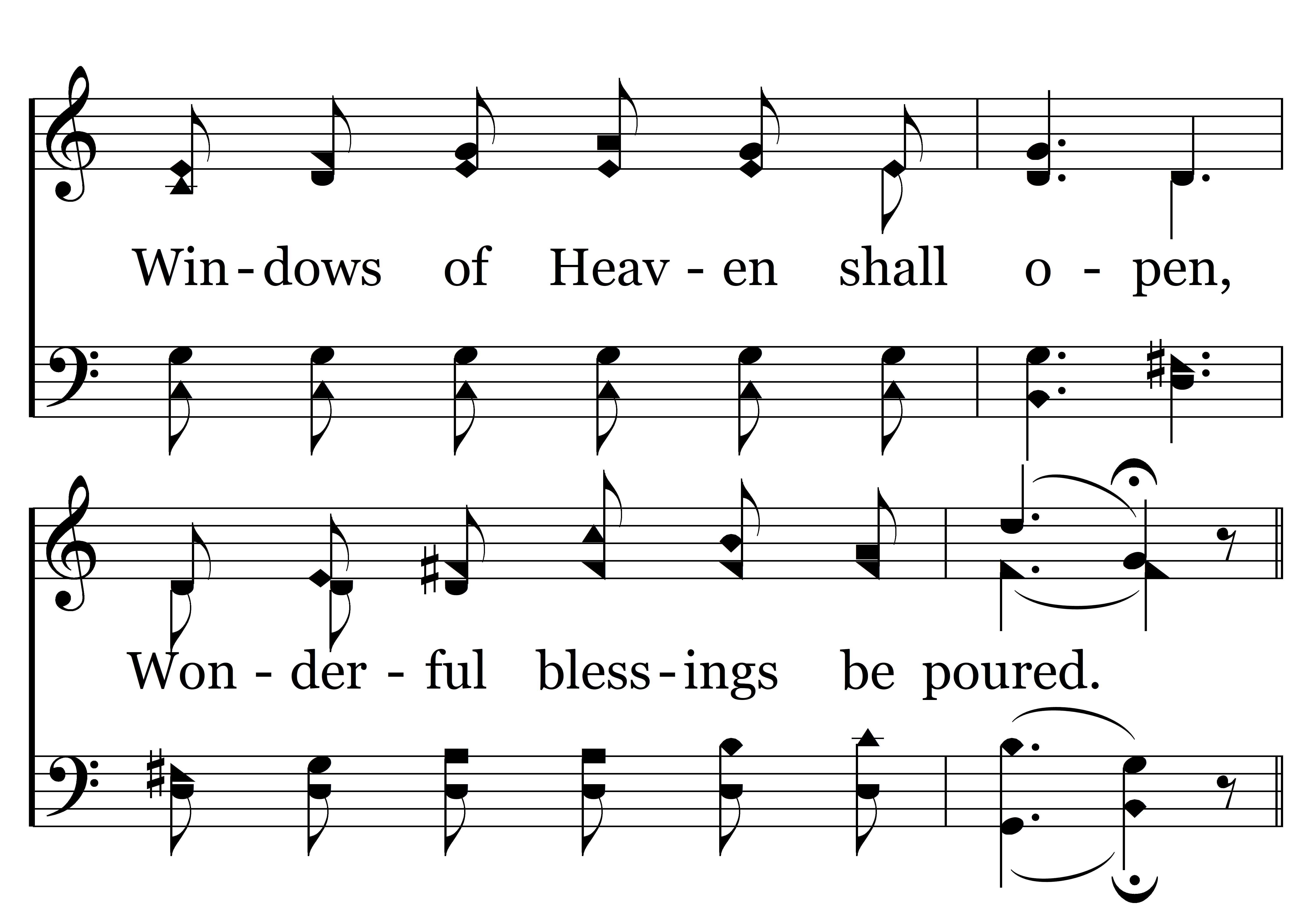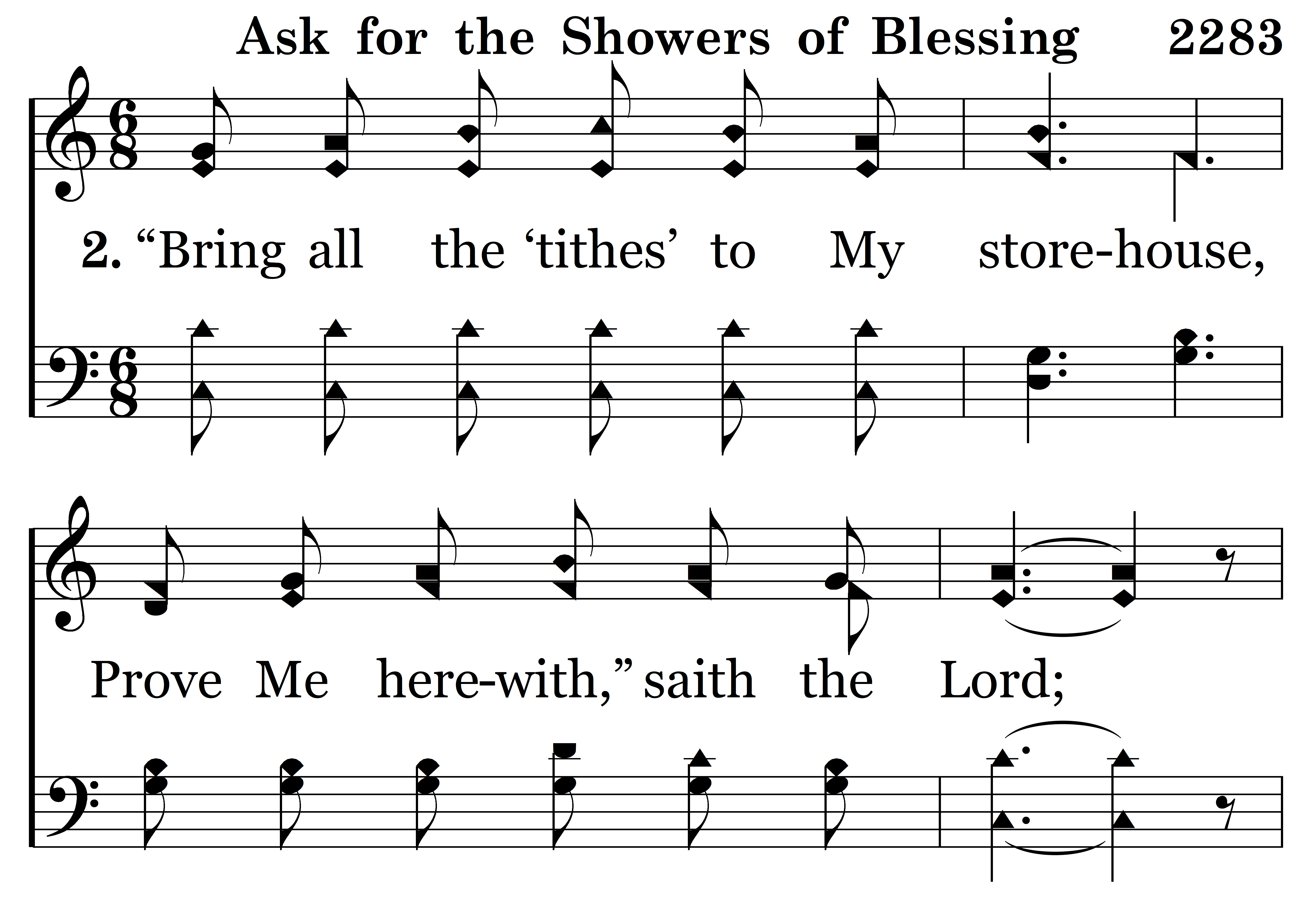 “Bring all the ‘tithes’ to My storehouse, Prove Me herewith,” saith the Lord; Windows of Heaven shall open, Wonderful blessings be poured.